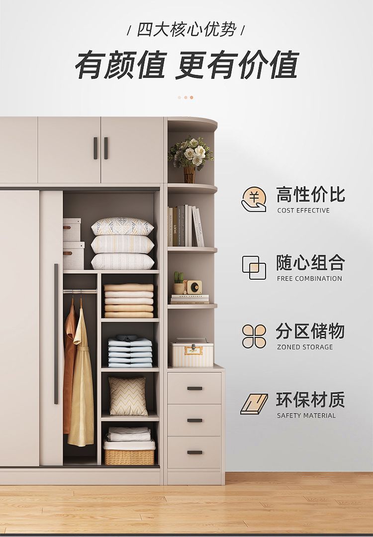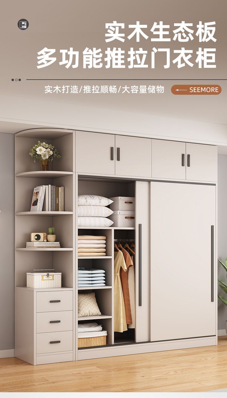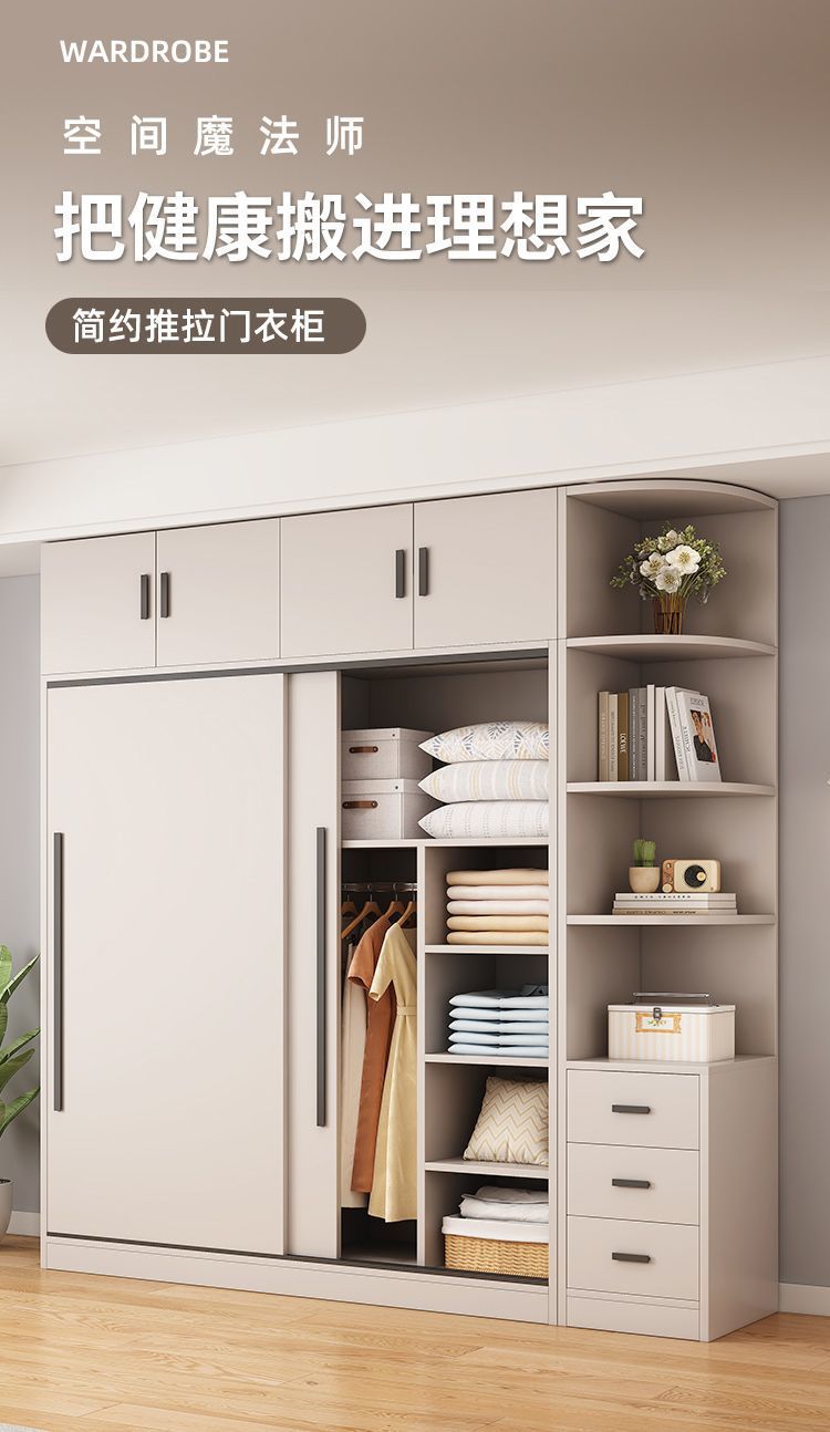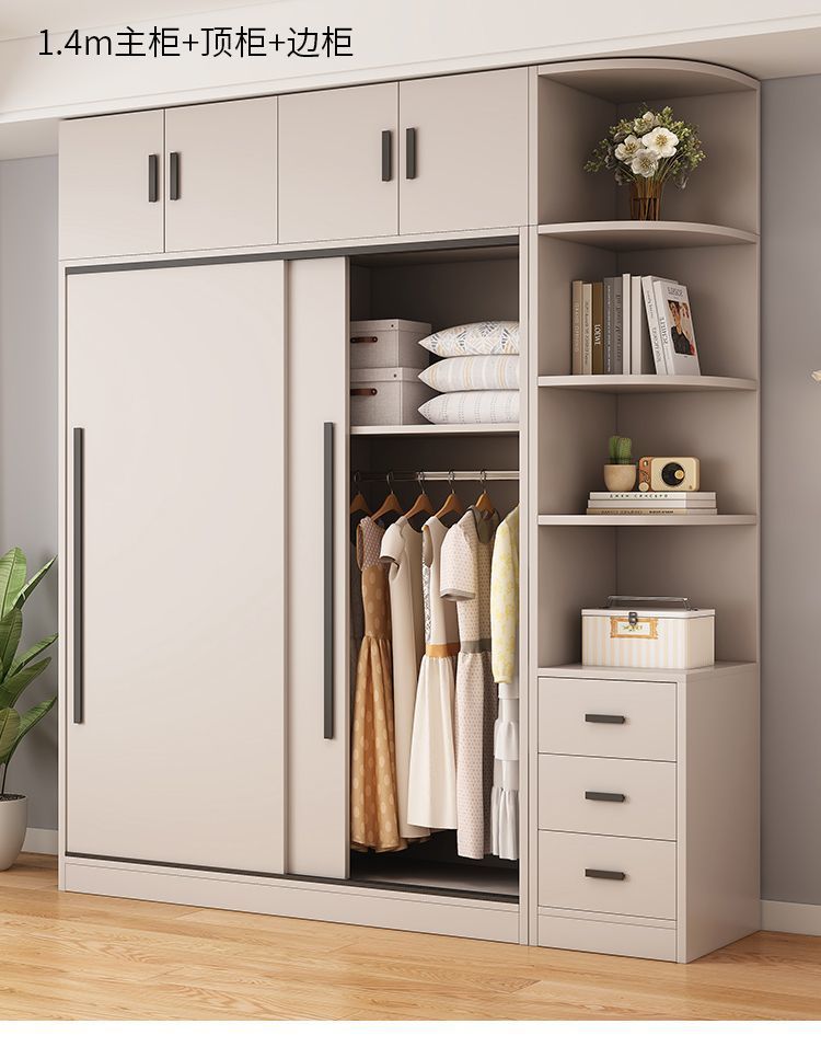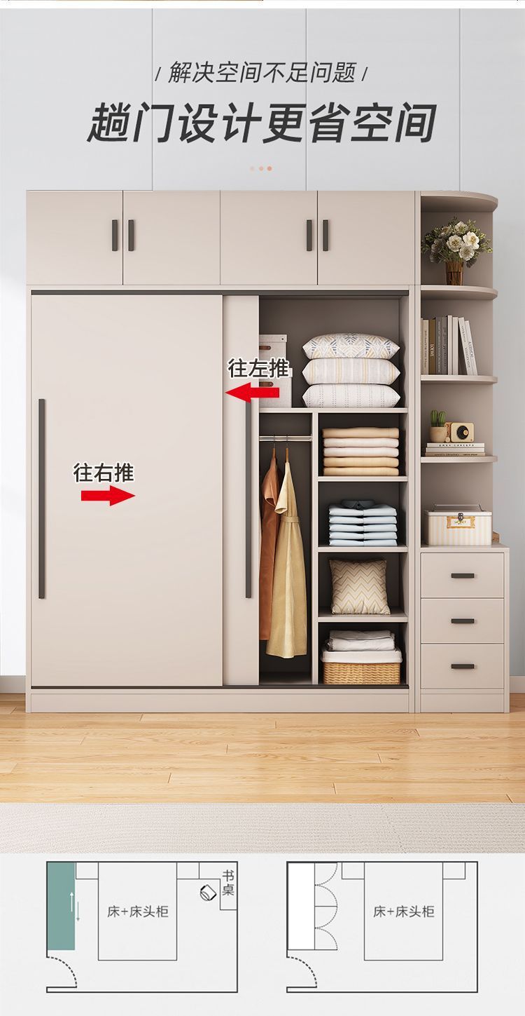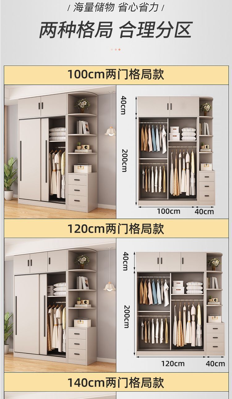 옷장 홈 침실 임대 룸 간단한 현대 슬라이딩 도어 옷장 단단한 나무 저장 캐비닛 간단한 작은 아파트 새로운 스타일스토어 가기