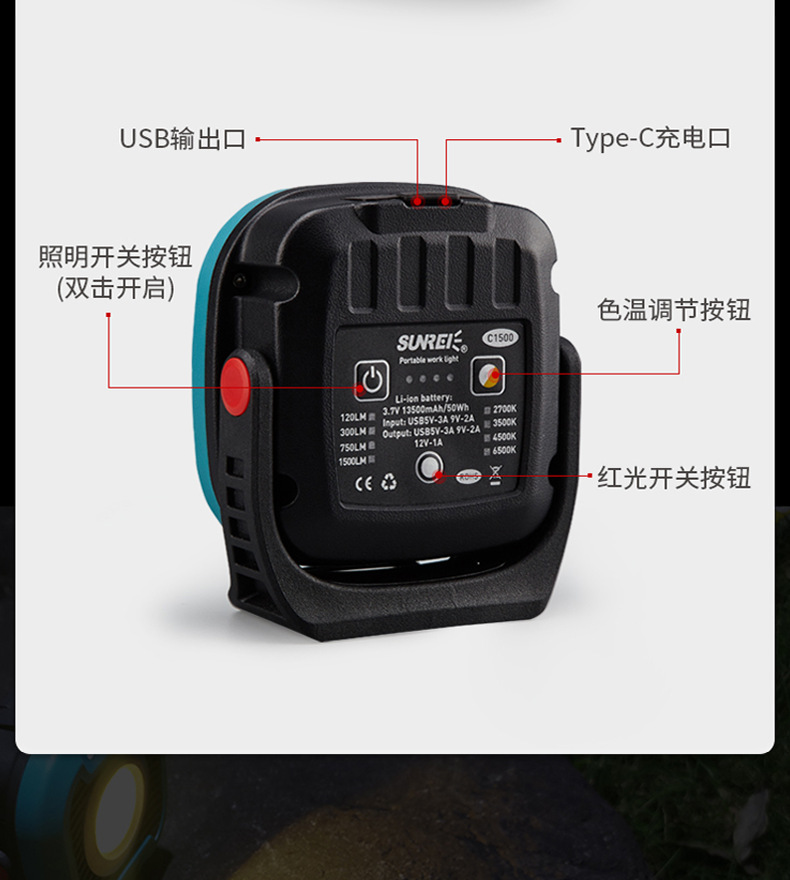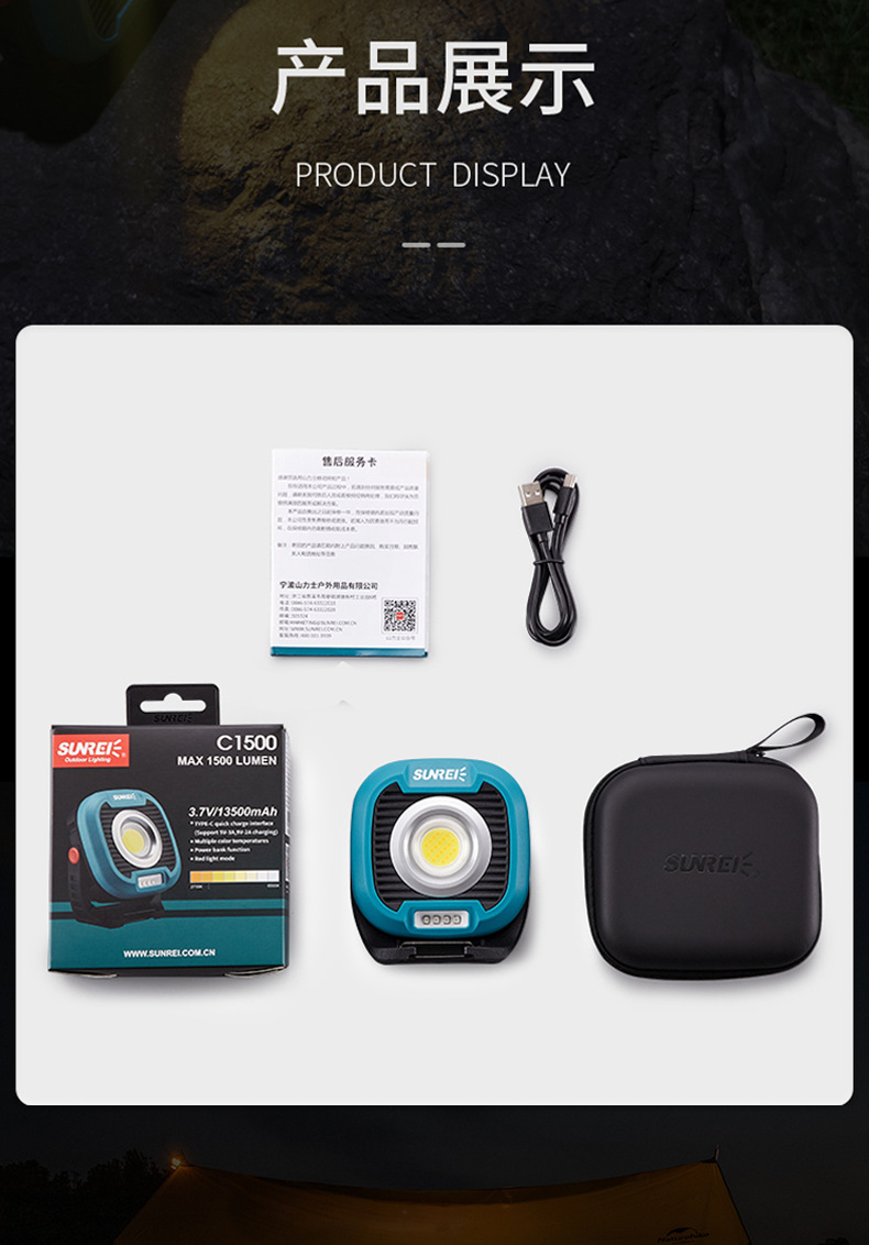 SUNREI Shanlix C1500 캠핑 라이트 충전식 야외 텐트 조명 캠핑 슈퍼 밝은 홈 캠프 라이트