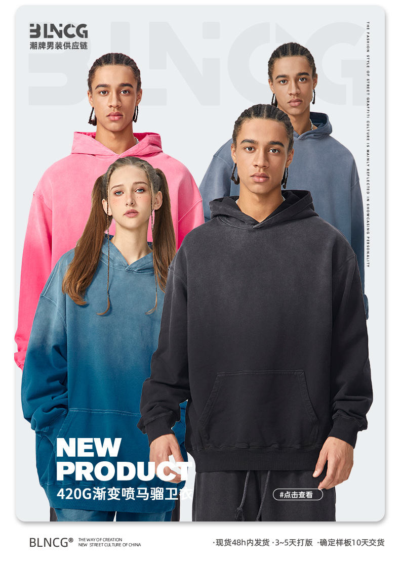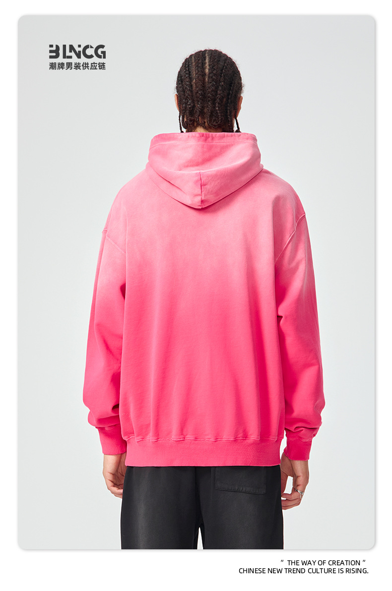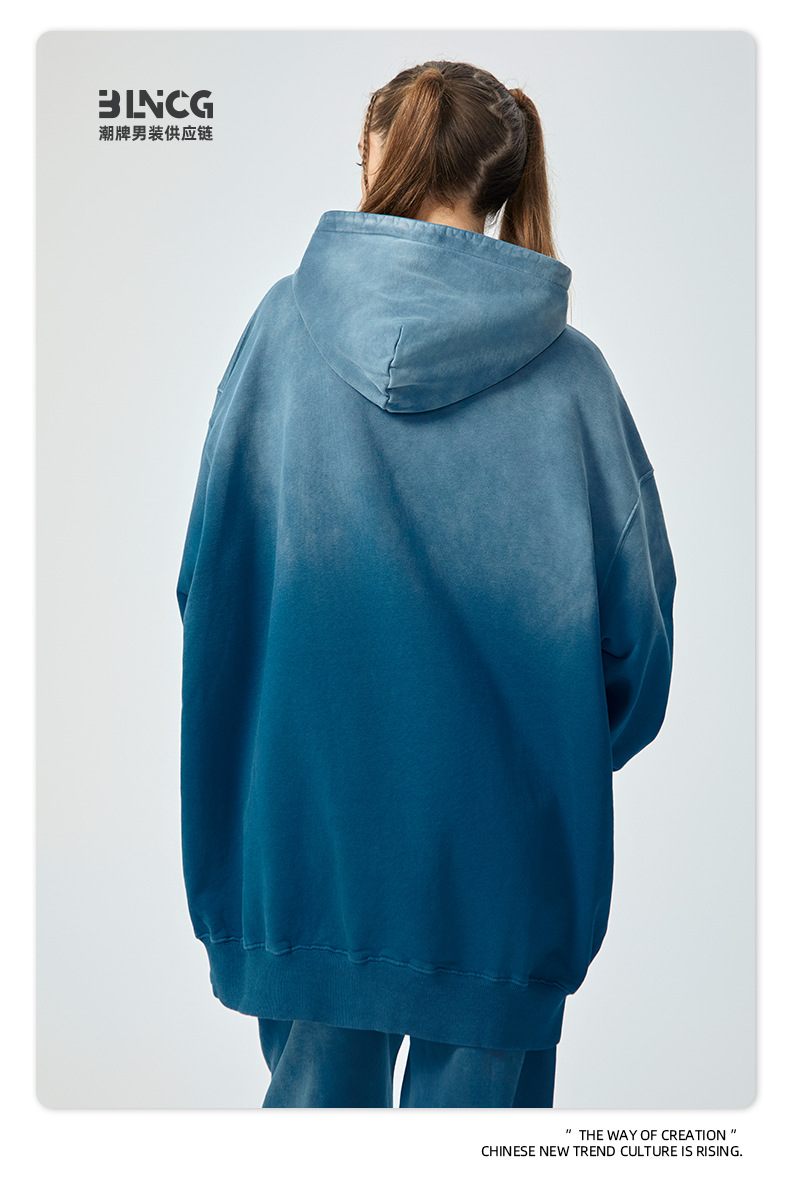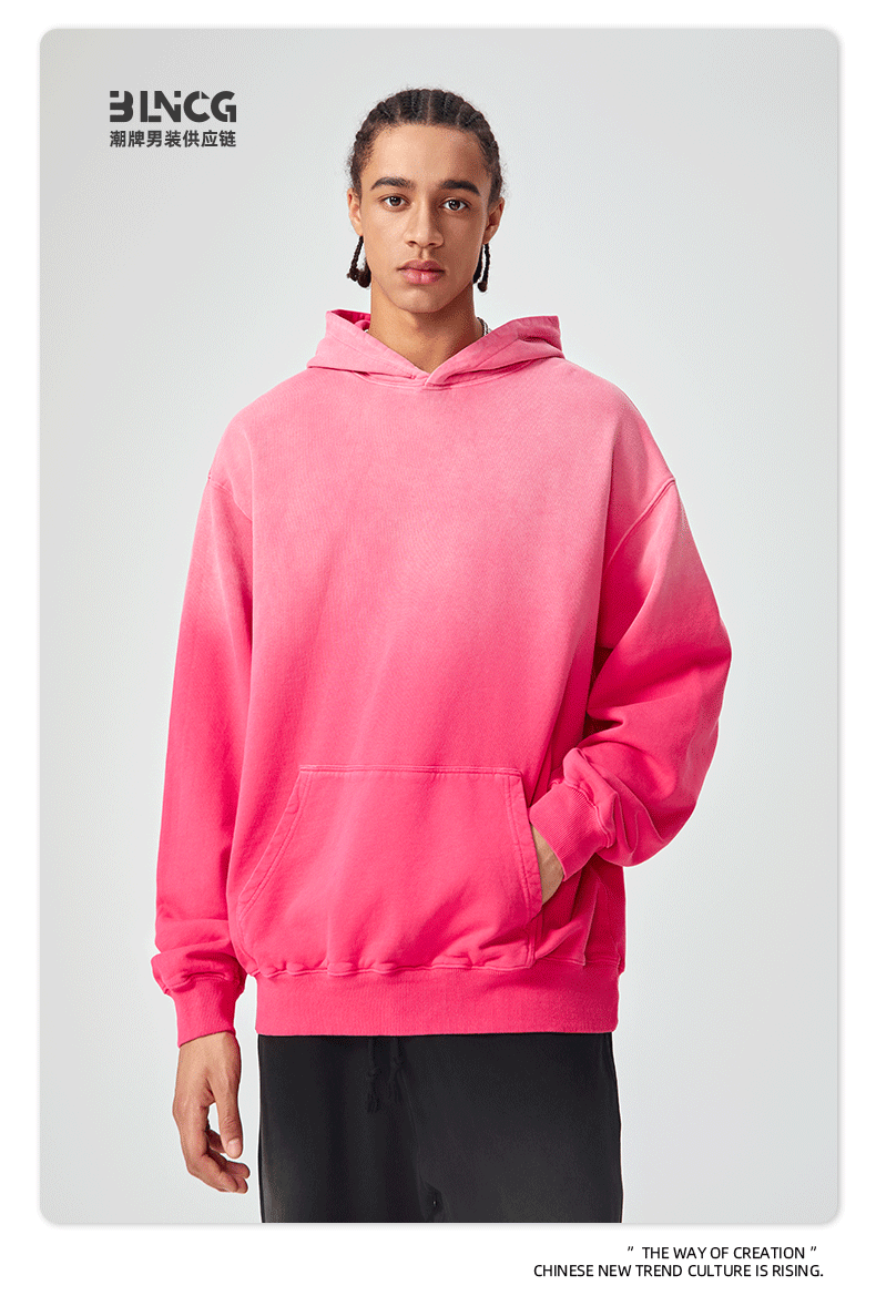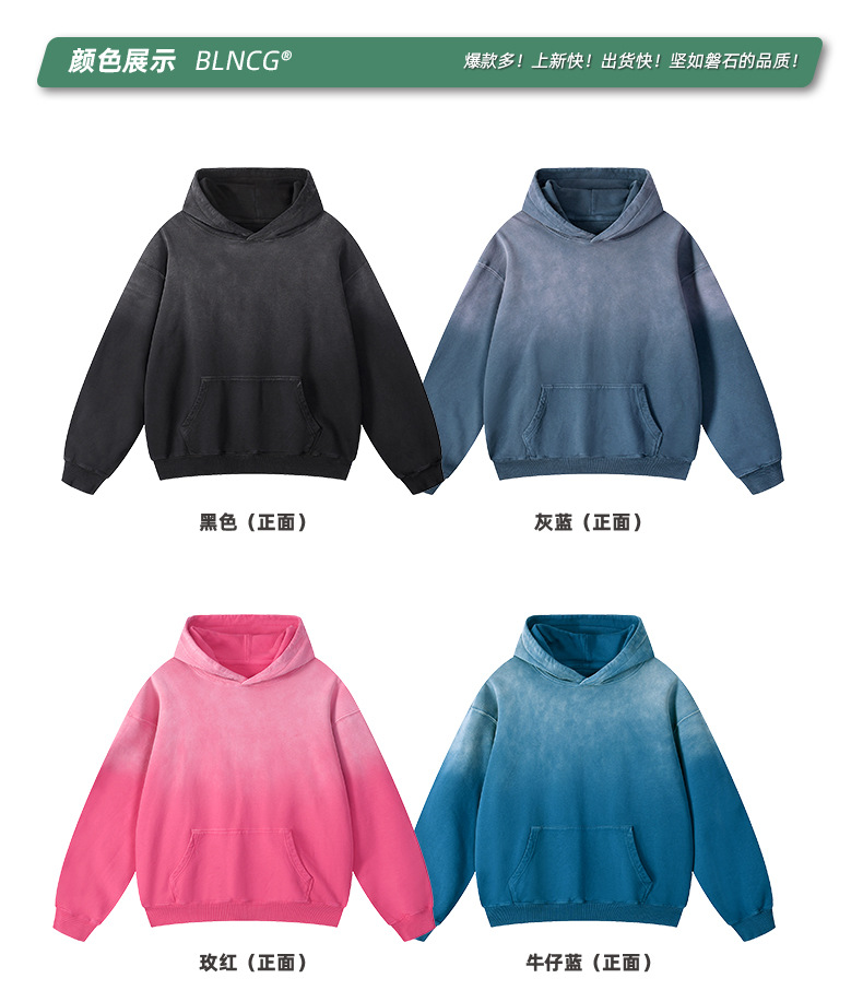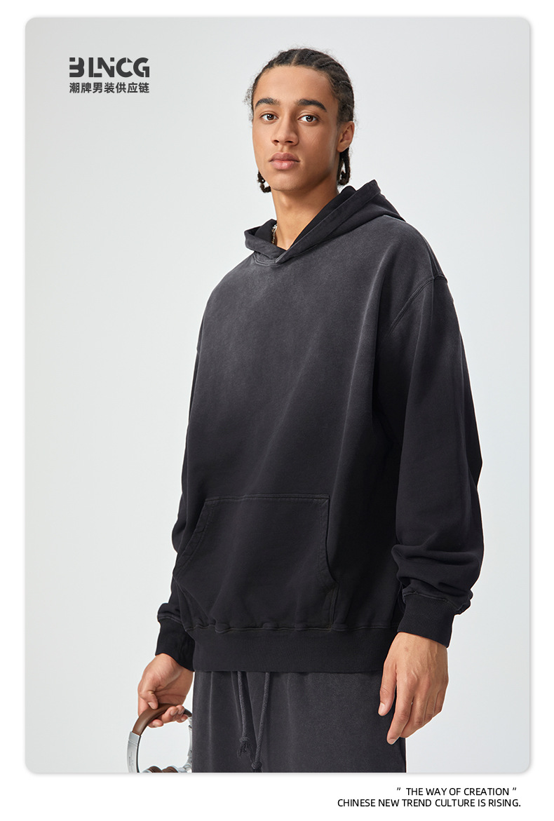 BG 트렌디 브랜드 아메리칸 스타일 420g 순면 헤비 워시 후드 티셔츠 레트로 그라데이션 스프레이 말 조각 염색 재킷