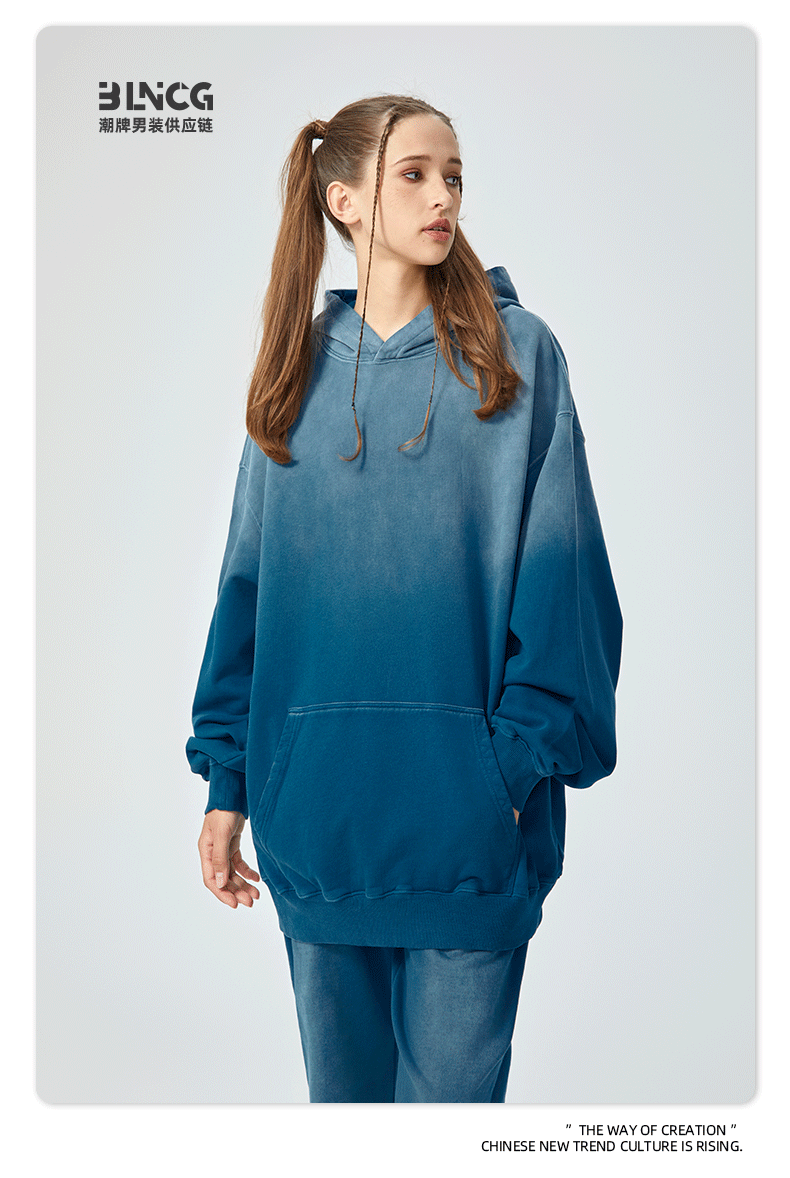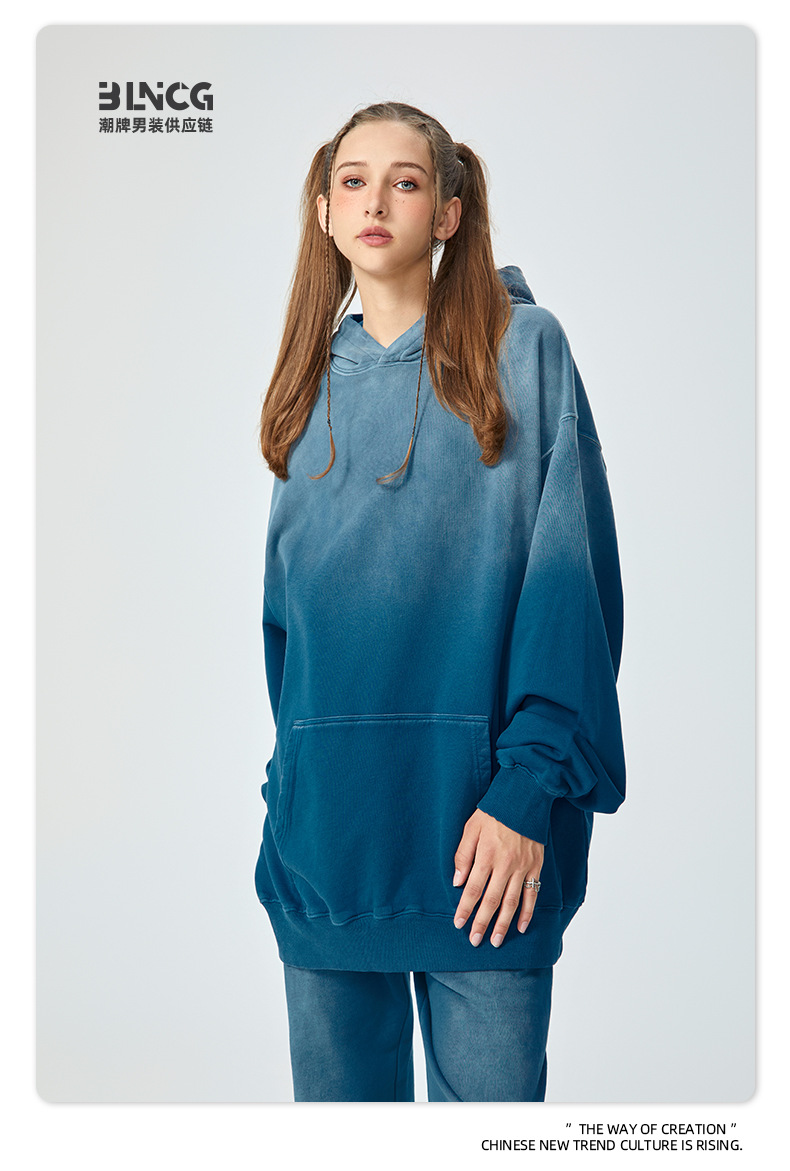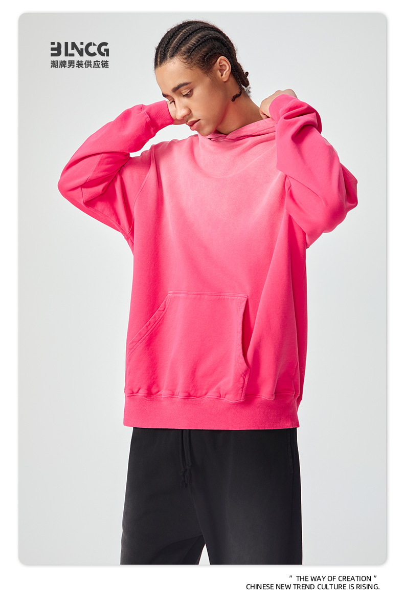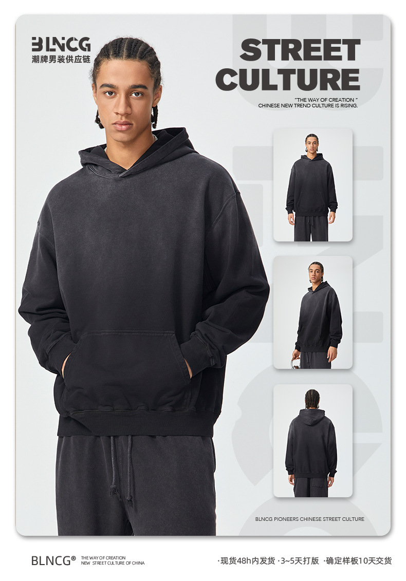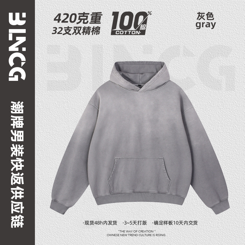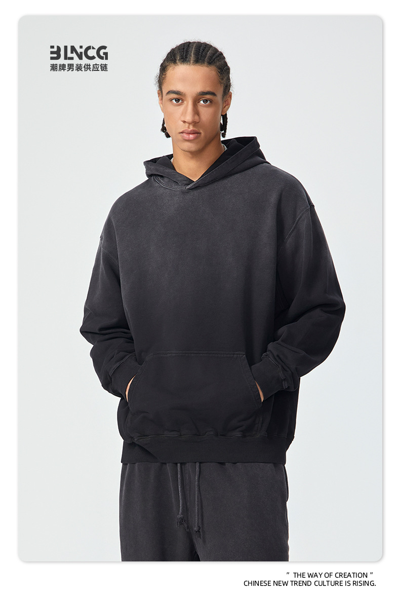BG 트렌디 브랜드 아메리칸 스타일 420g 순면 헤비 워시 후드 티셔츠 레트로 그라데이션 스프레이 말 조각 염색 재킷