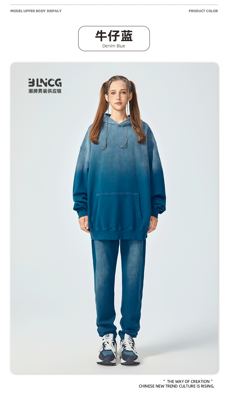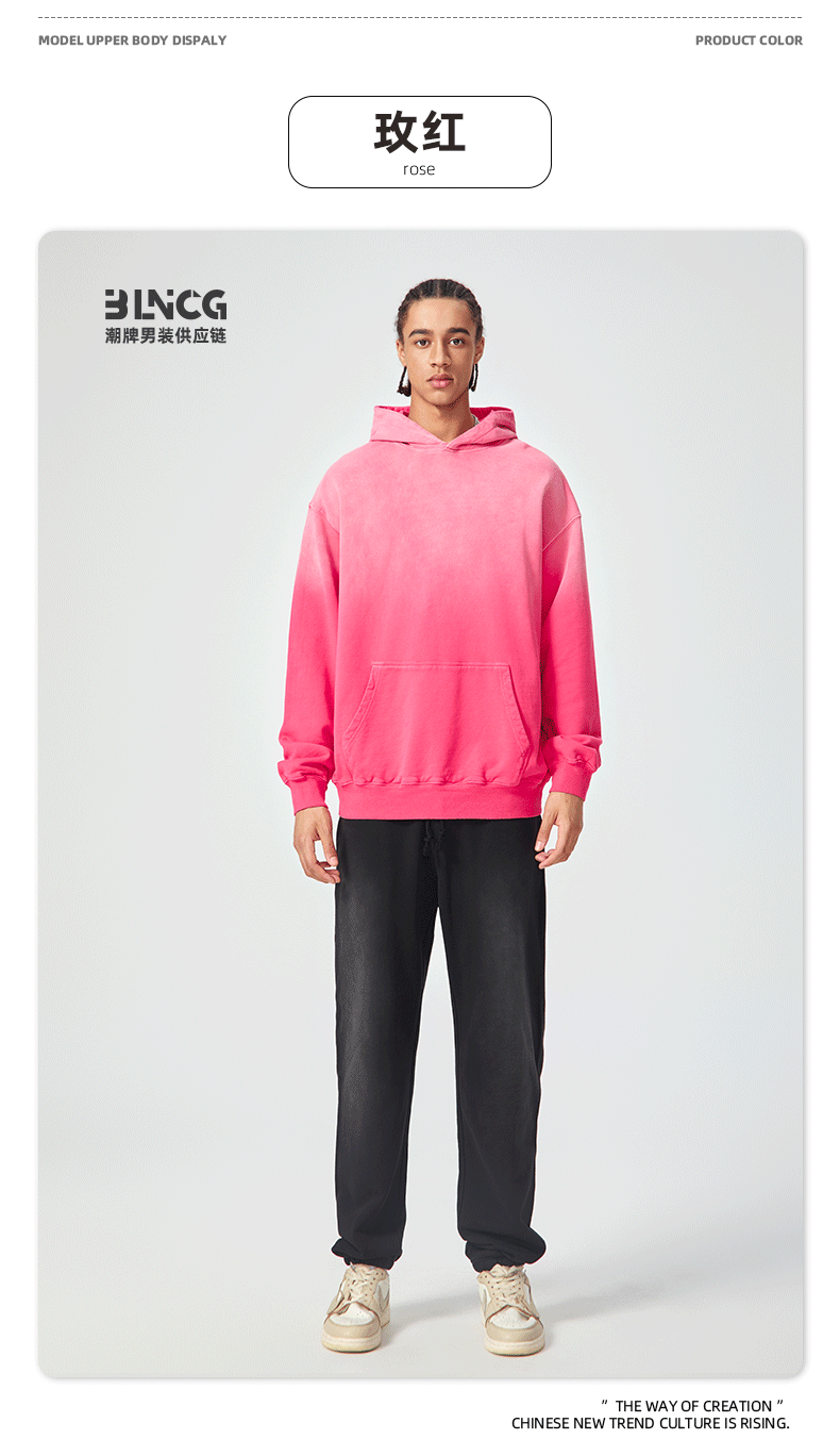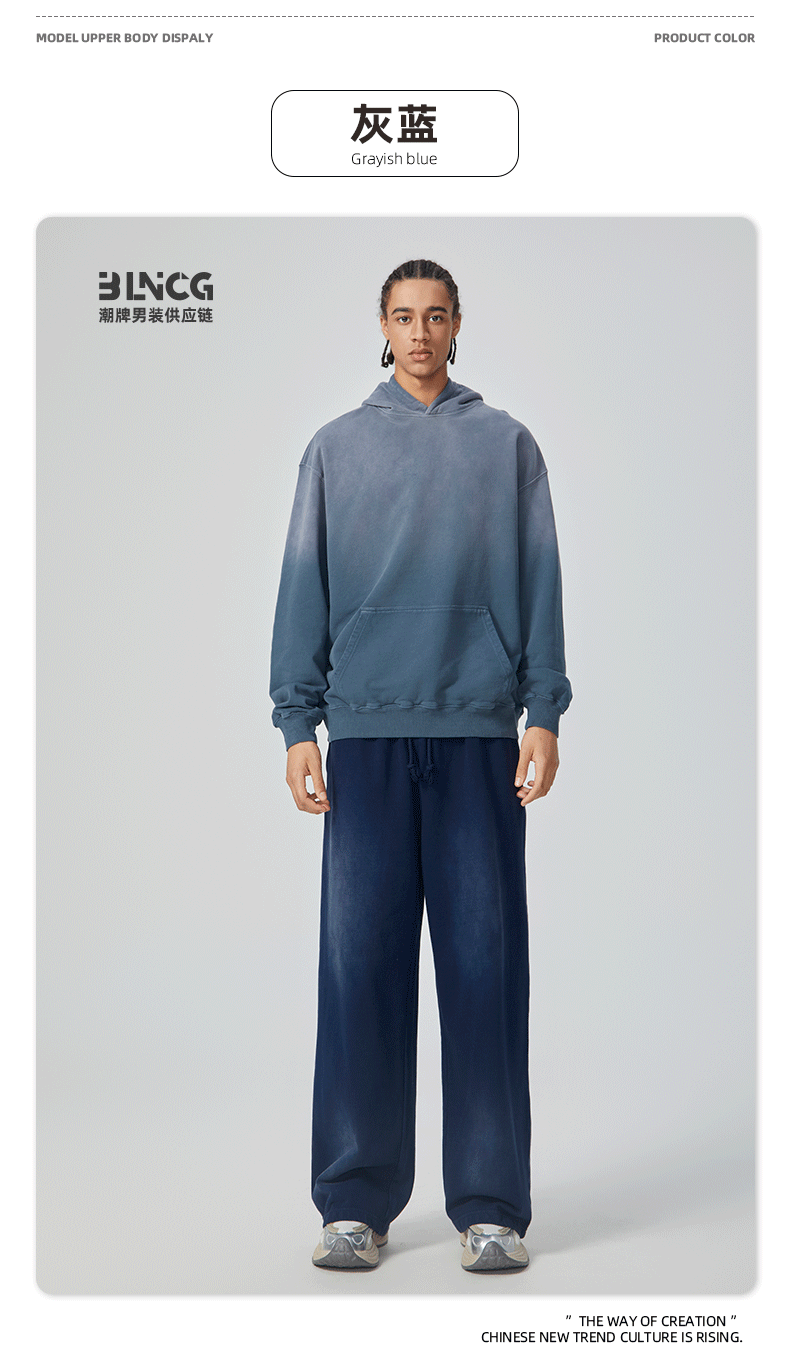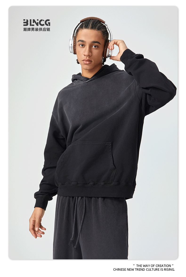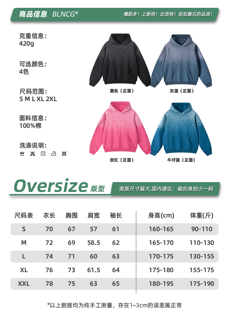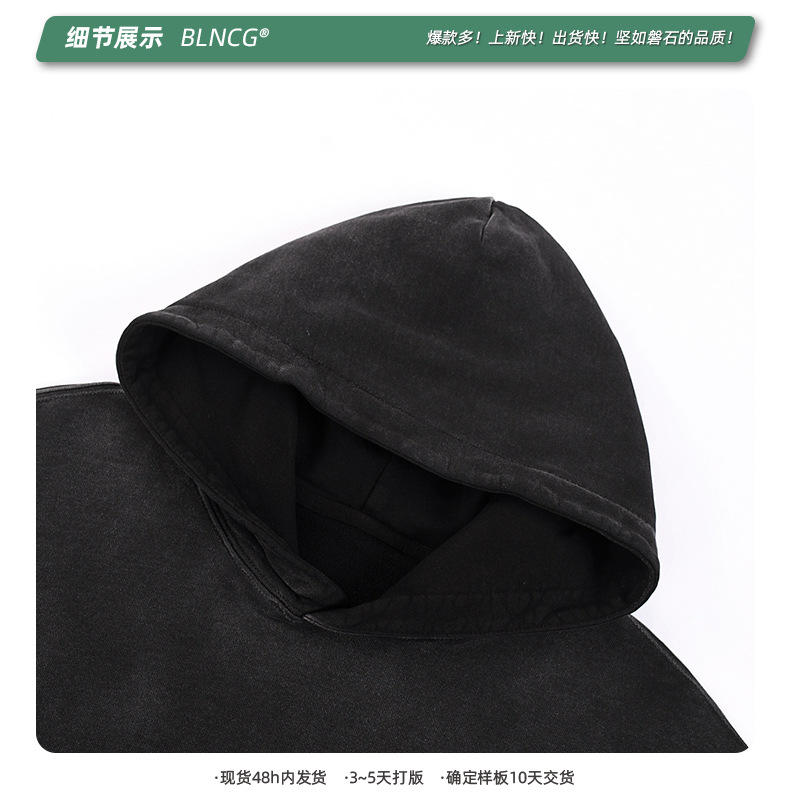 BG 트렌디 브랜드 아메리칸 스타일 420g 순면 헤비 워시 후드 티셔츠 레트로 그라데이션 스프레이 말 조각 염색 재킷