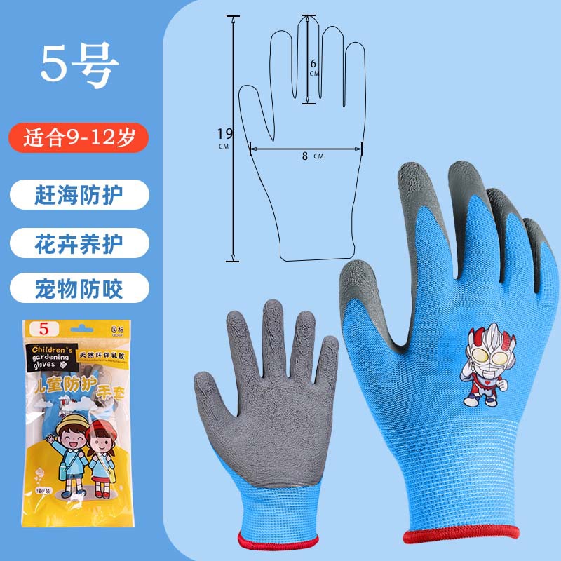 儿童防咬防护手套学生露营防刺丁腈手套园艺拔草采摘赶海浸胶手套
