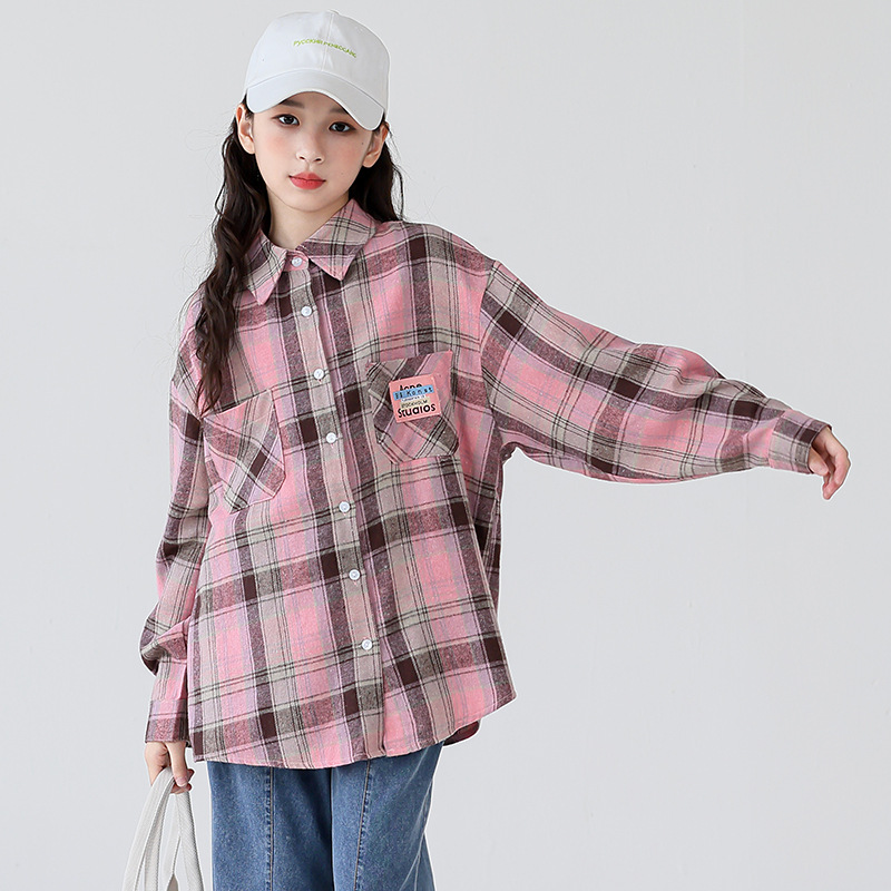 어린이 격자 무늬 긴팔 셔츠 봄, 가을 2022 느슨한 소녀 큰 어린이 대학 스타일 다목적 캐주얼 고품질 겉옷