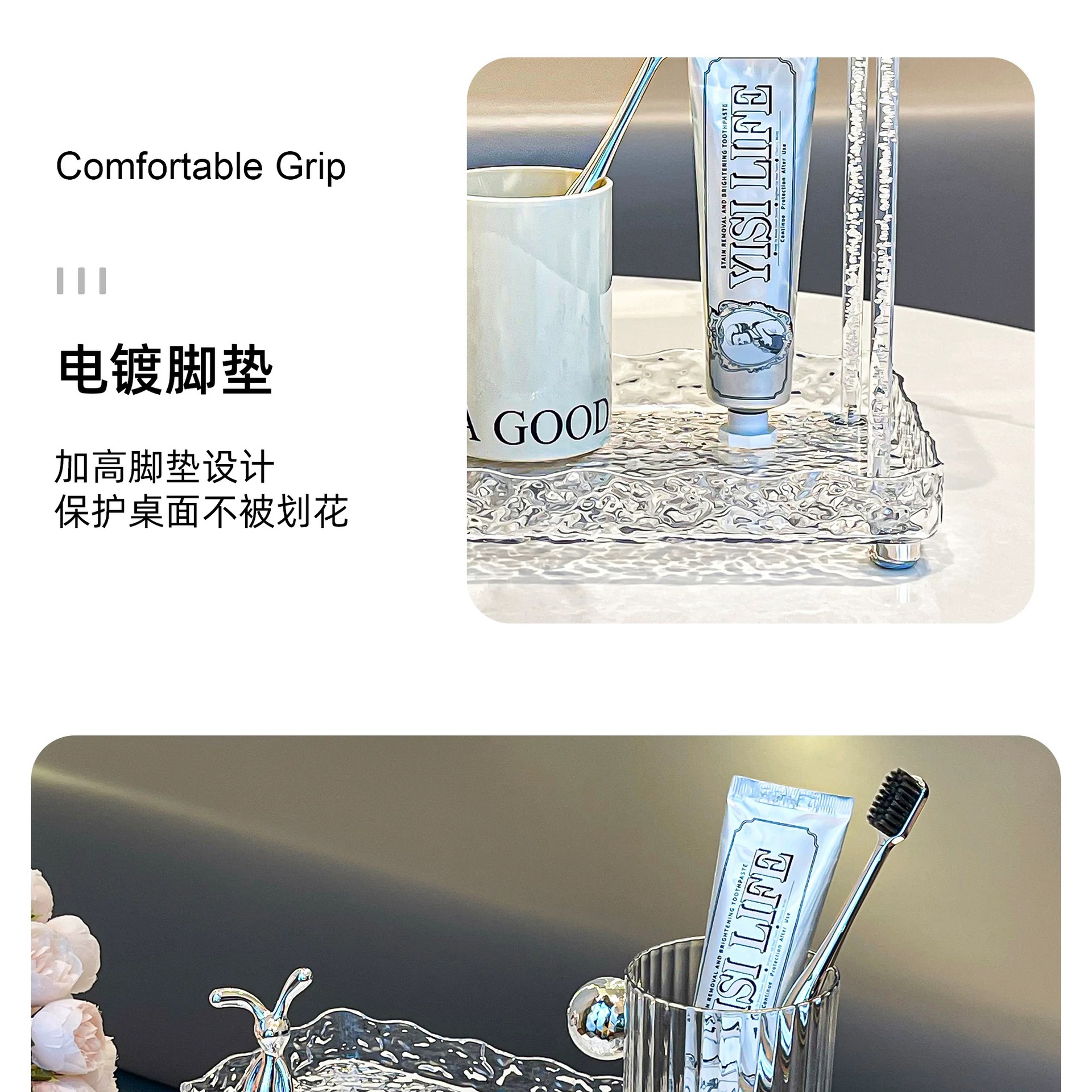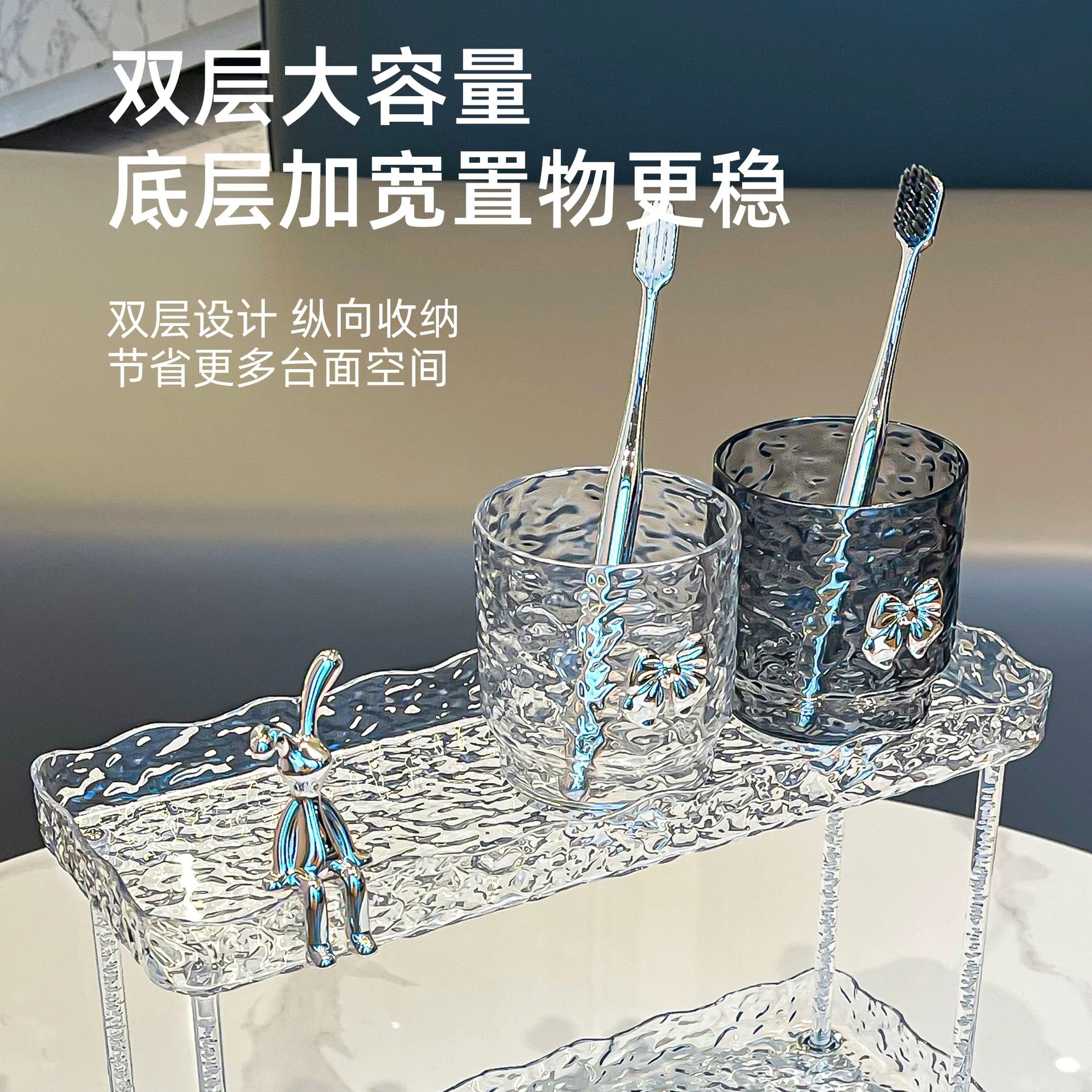 도파민 저장 랙 더블 레이어 아크릴 문자 투명 드레싱 테이블 마무리 빙하 패턴 욕실 저장 랙