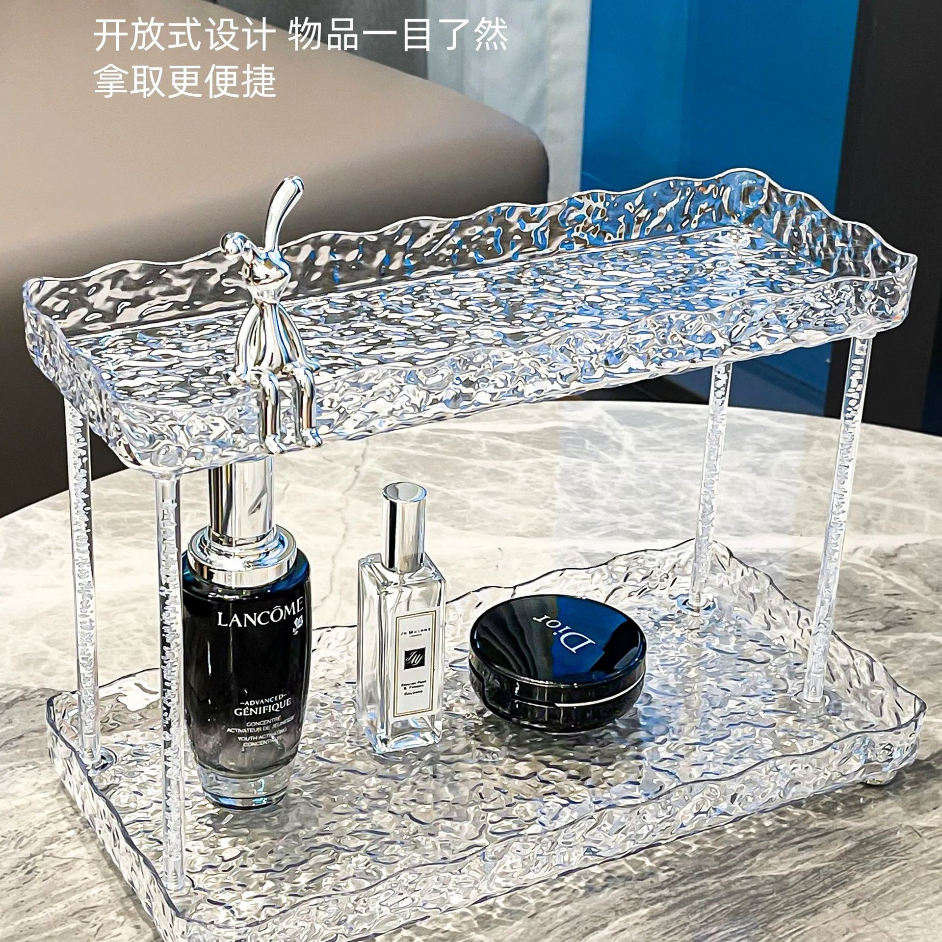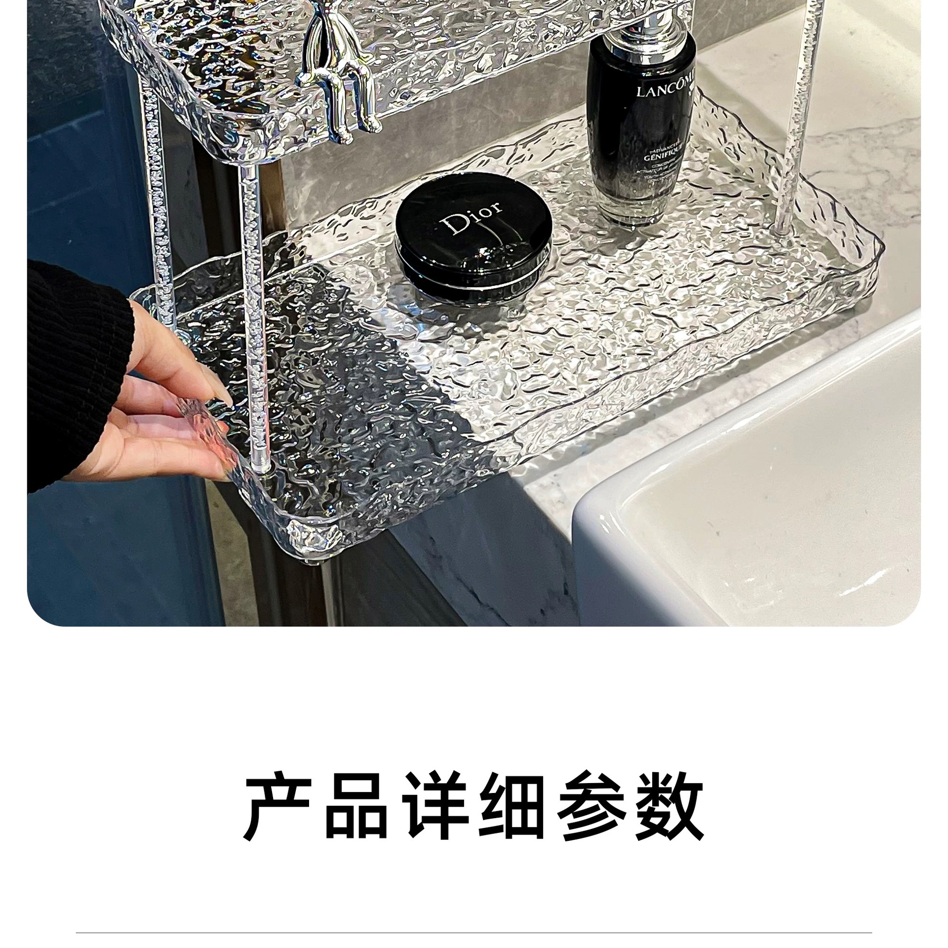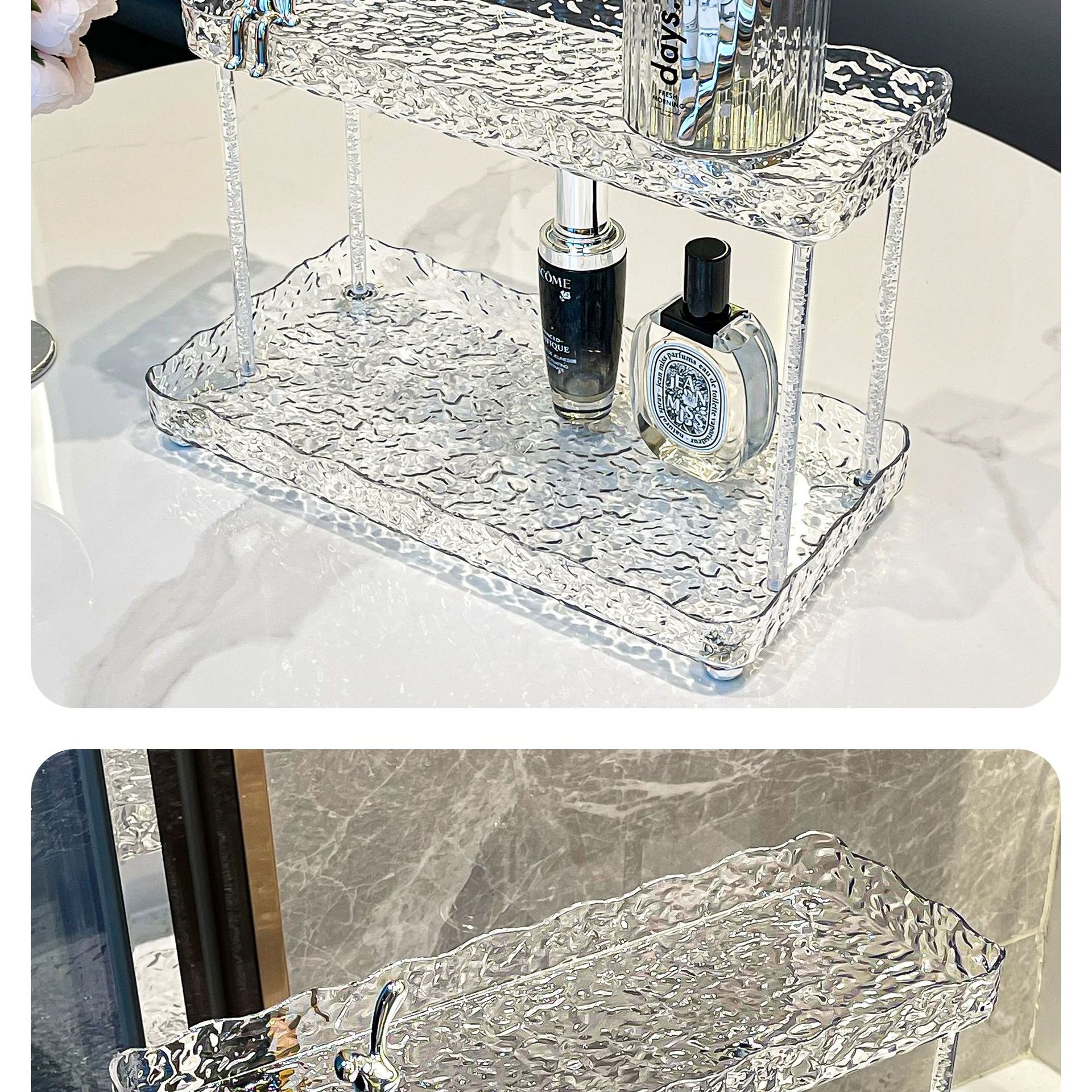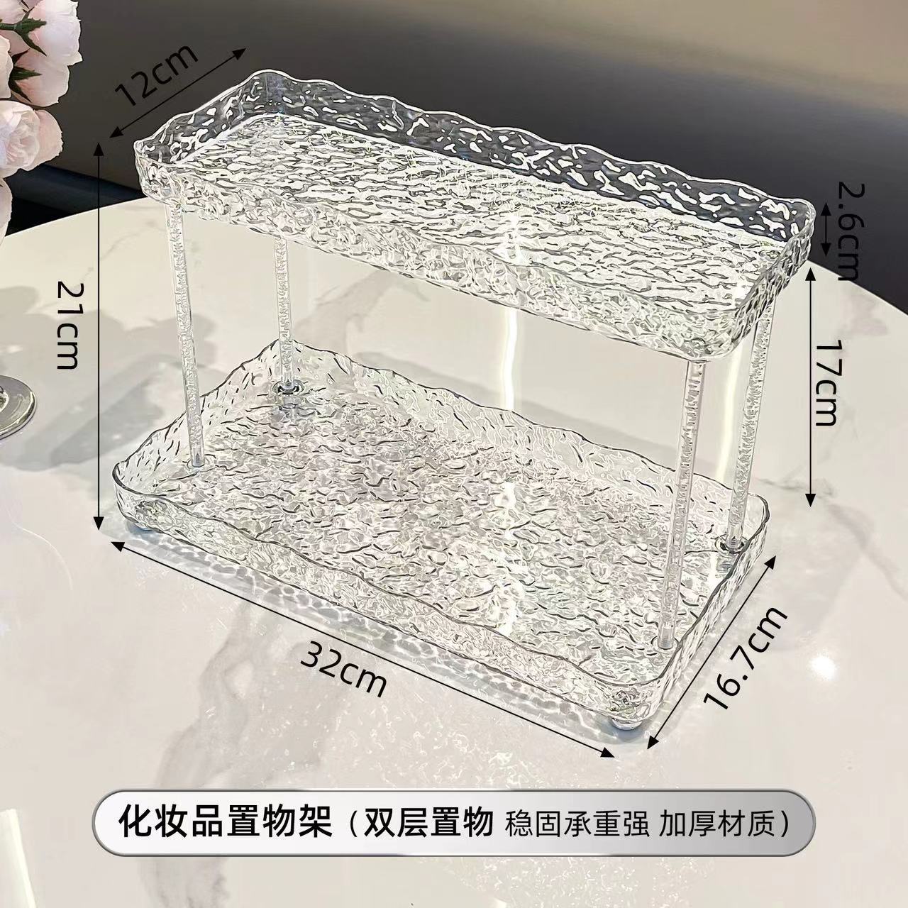 도파민 저장 랙 더블 레이어 아크릴 문자 투명 드레싱 테이블 마무리 빙하 패턴 욕실 저장 랙스토어 가기