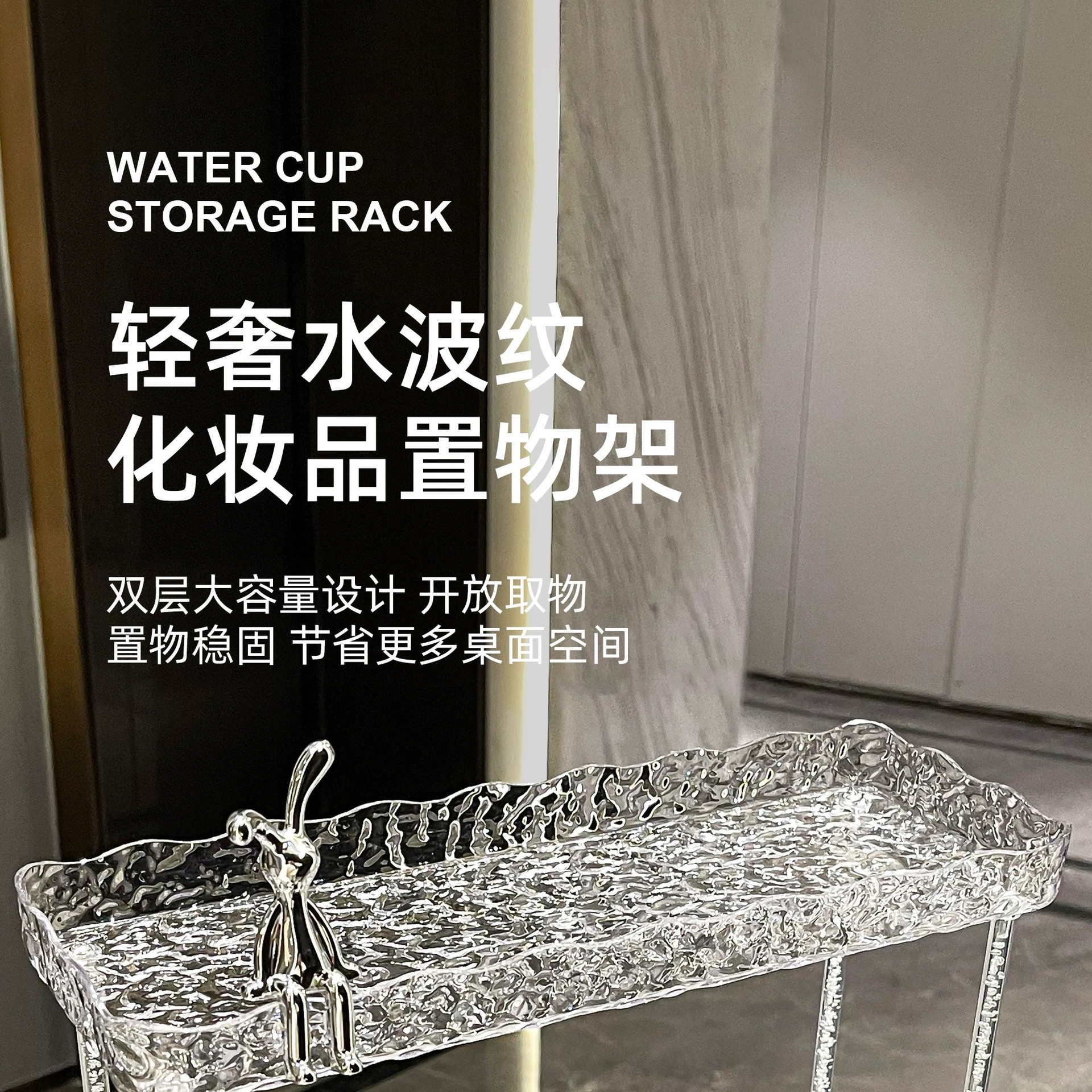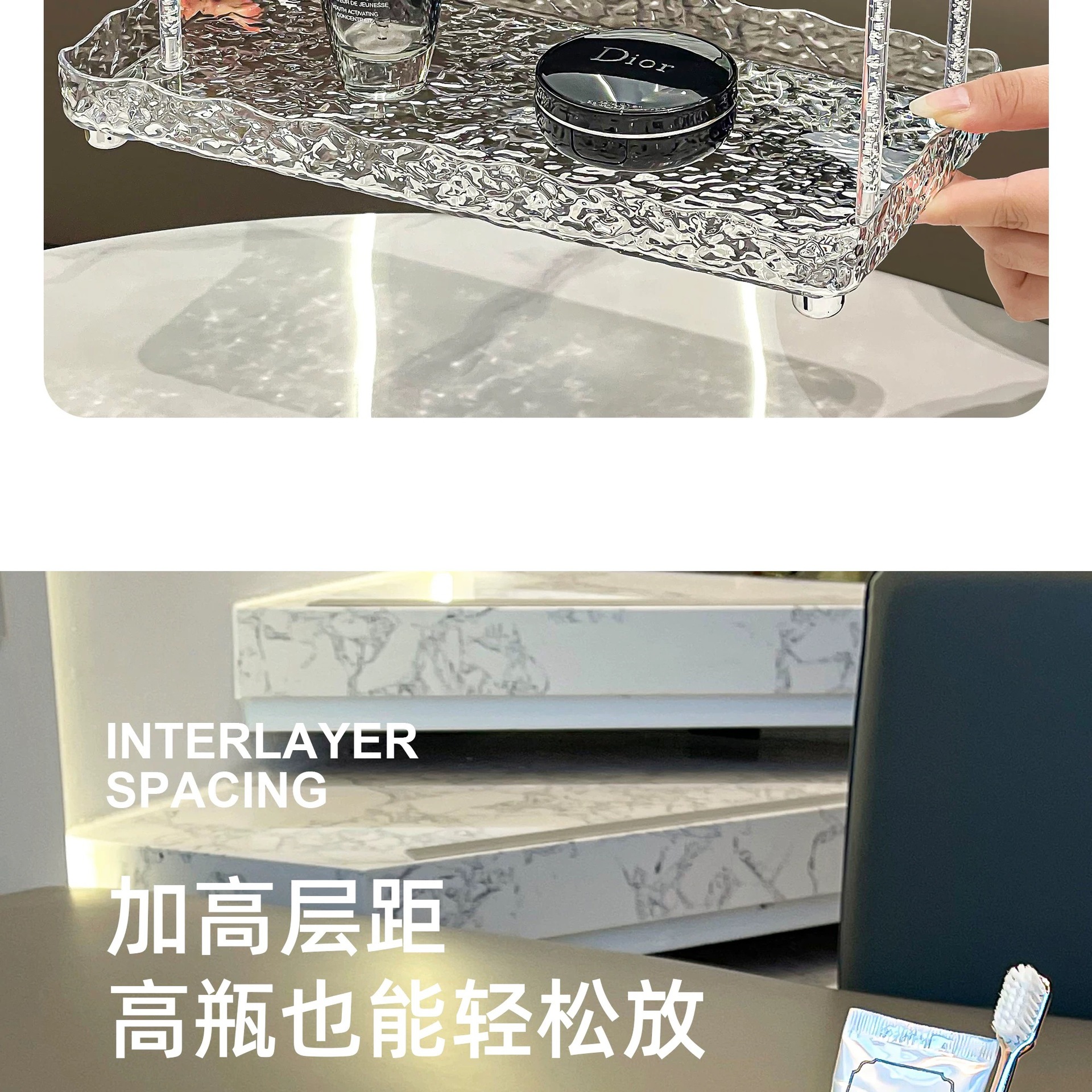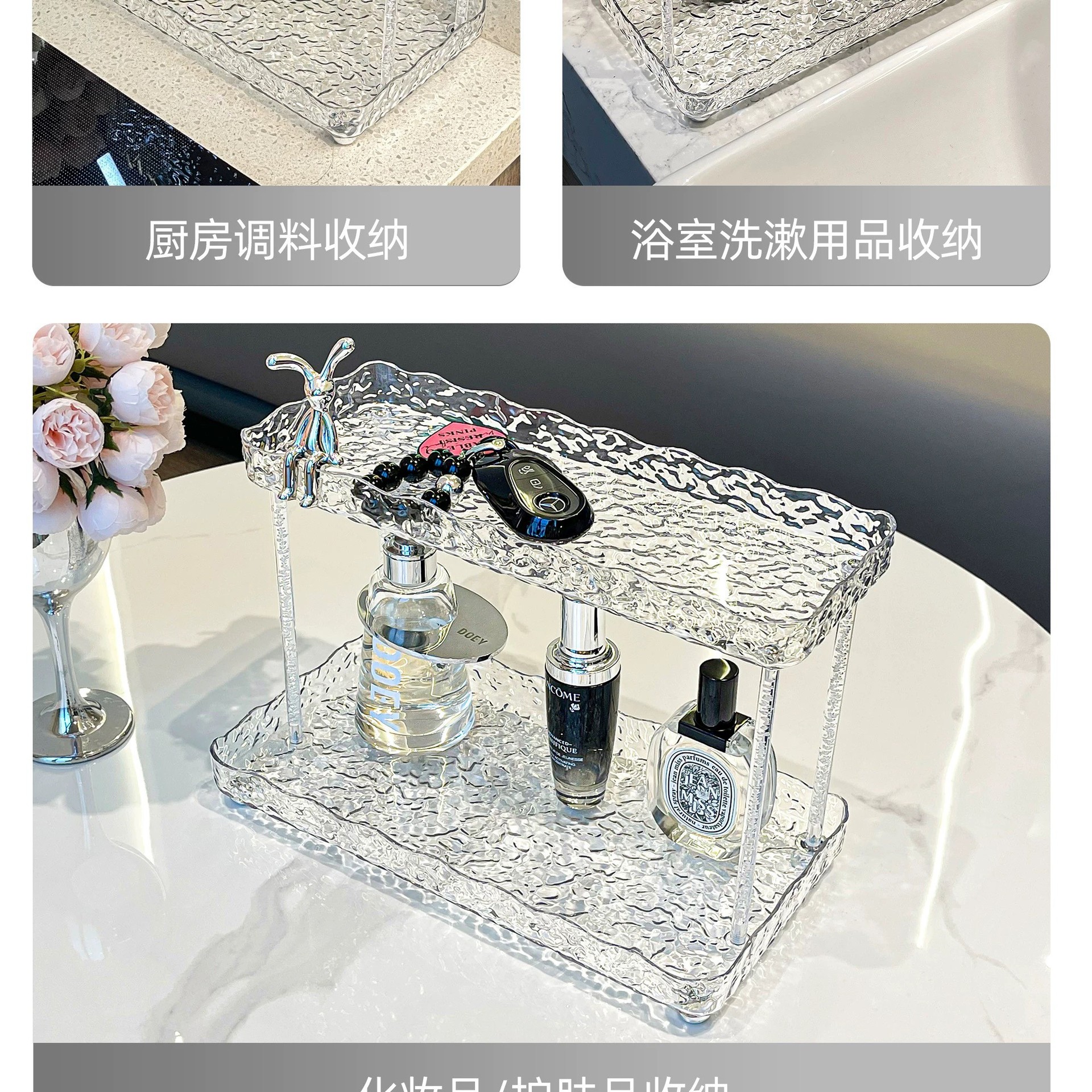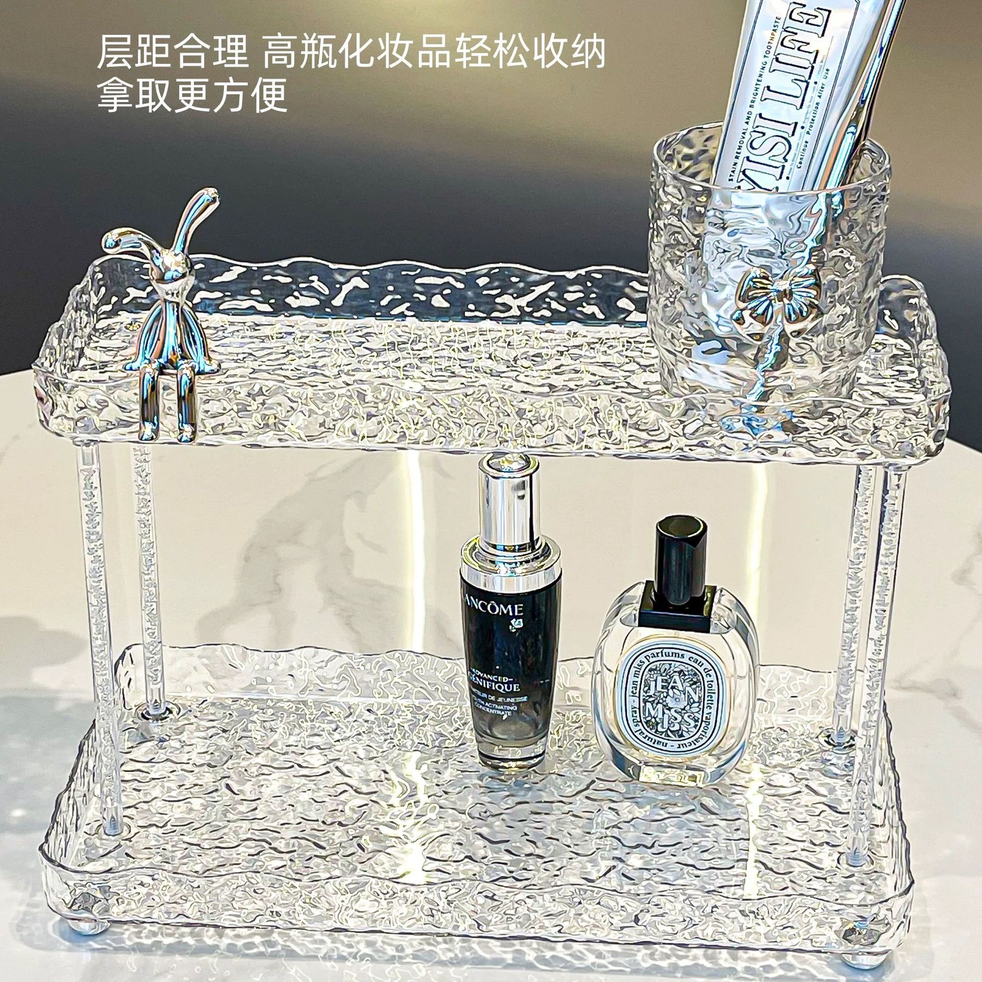 도파민 저장 랙 더블 레이어 아크릴 문자 투명 드레싱 테이블 마무리 빙하 패턴 욕실 저장 랙스토어 가기