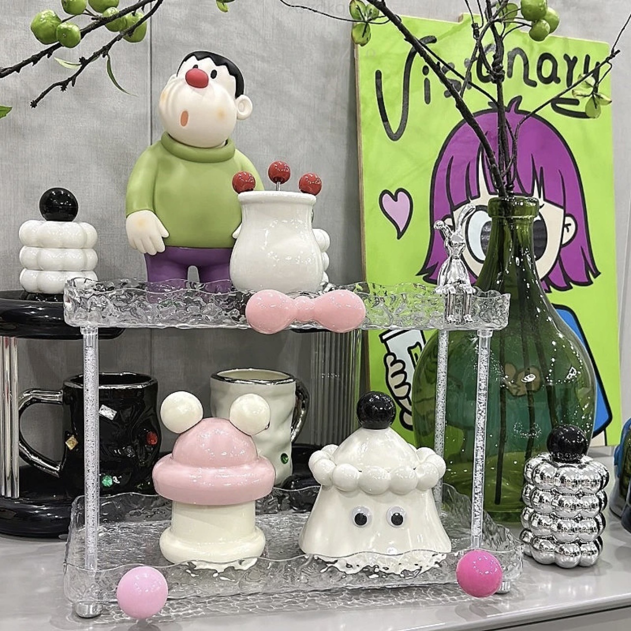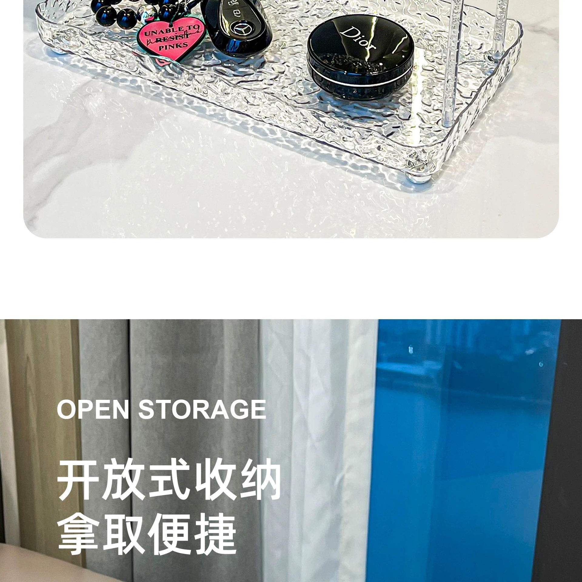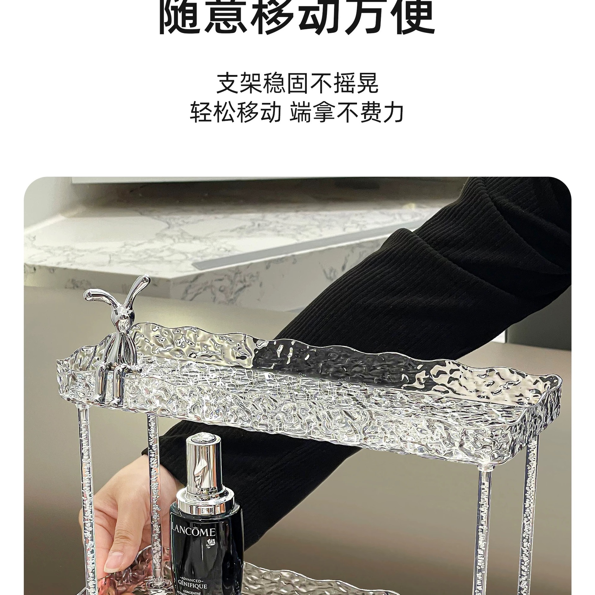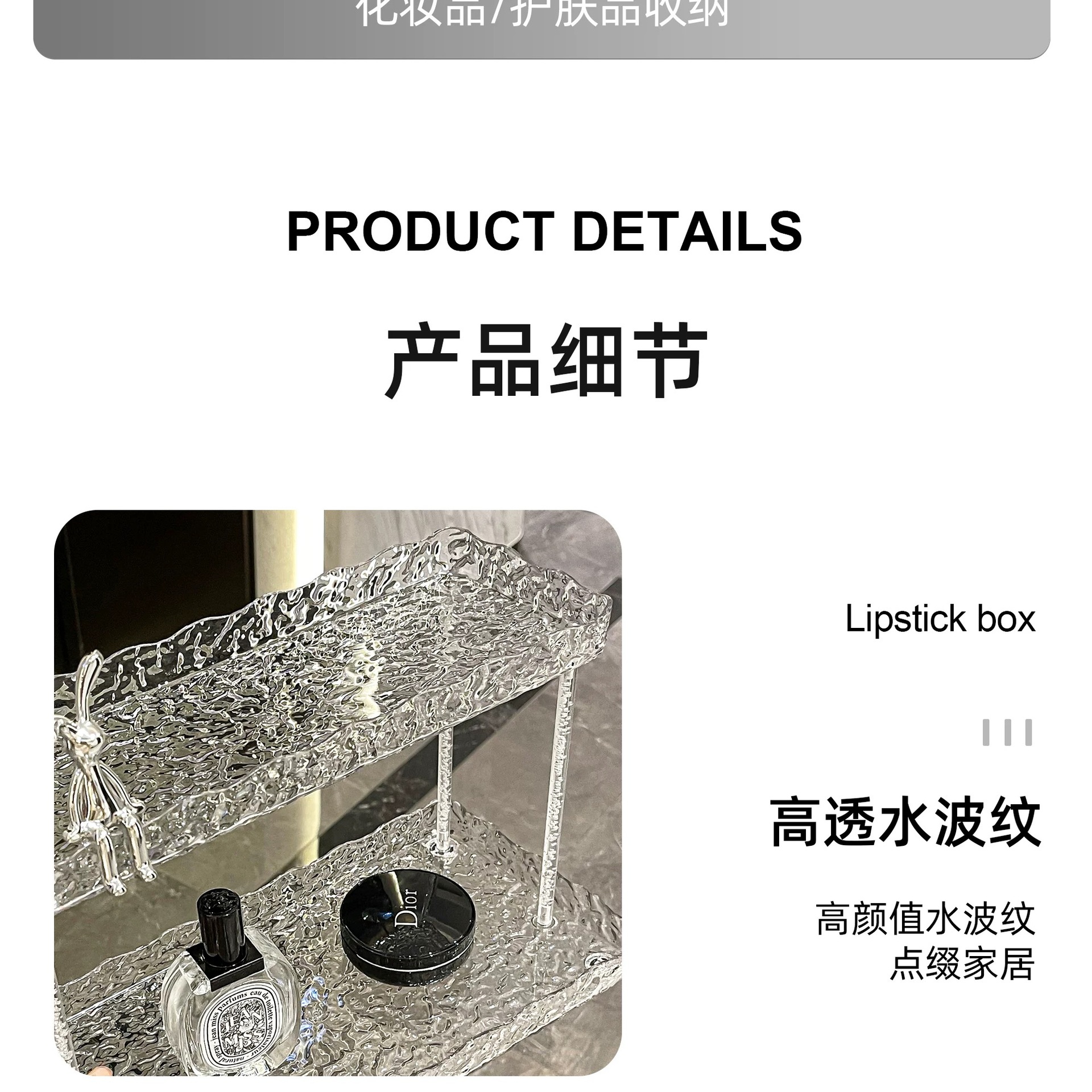 도파민 저장 랙 더블 레이어 아크릴 문자 투명 드레싱 테이블 마무리 빙하 패턴 욕실 저장 랙스토어 가기