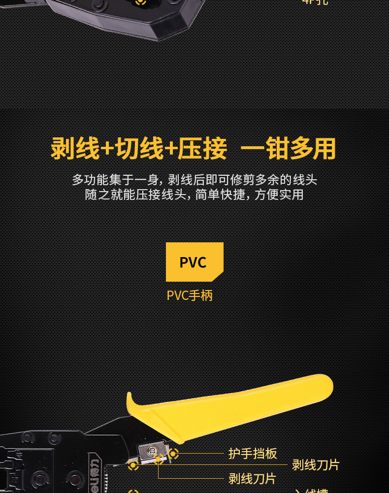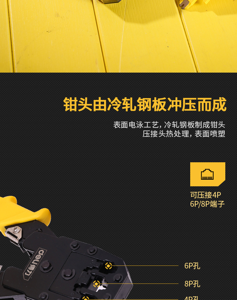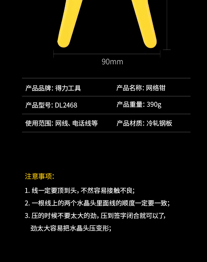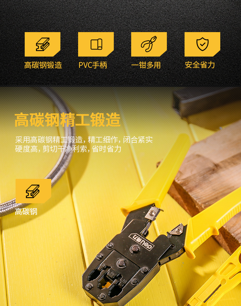 델리 (델리) 4/6/8P 3 사용 네트워크 펜치 크리스탈 세그먼트 압착 펜치 와이어 압착 펜치 와이어 스트립 펜치