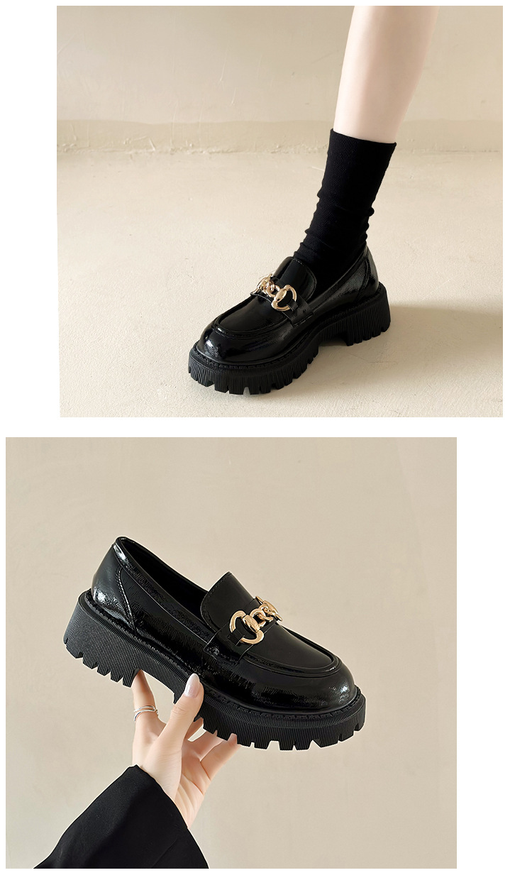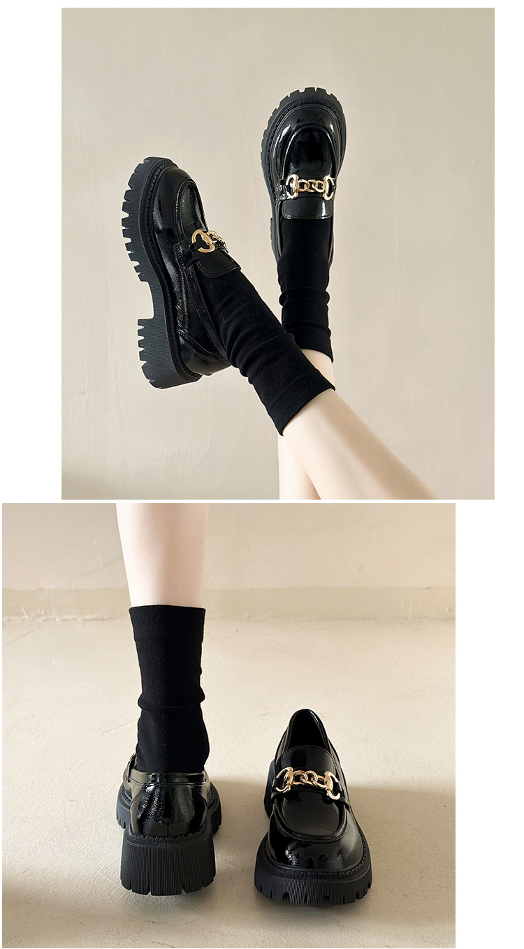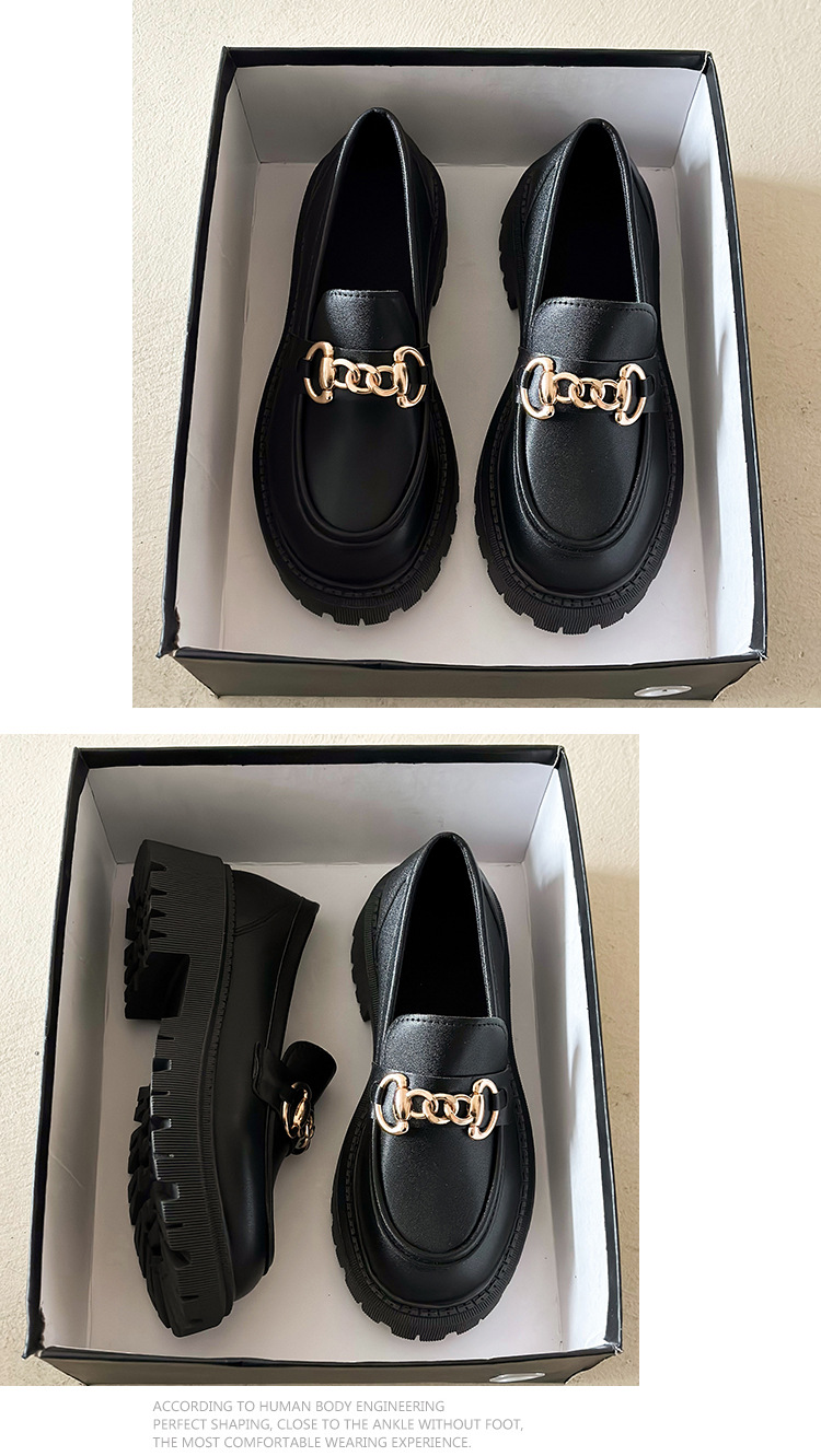 영국 스타일 가죽 신발 여성 2024 년 두꺼운 단독 슬립 온 국경 간 플러스 사이즈 로퍼 플랫폼 Mary Jane 신발스토어 가기
