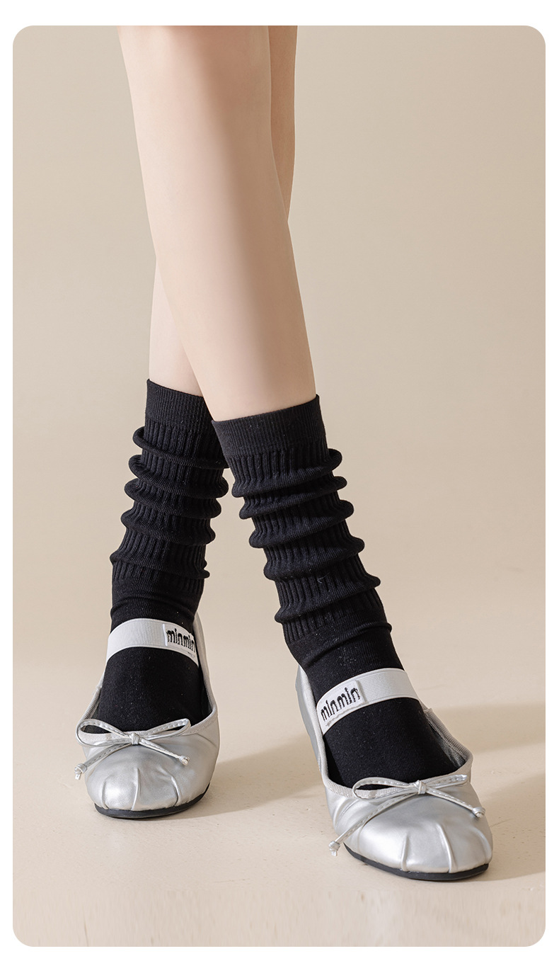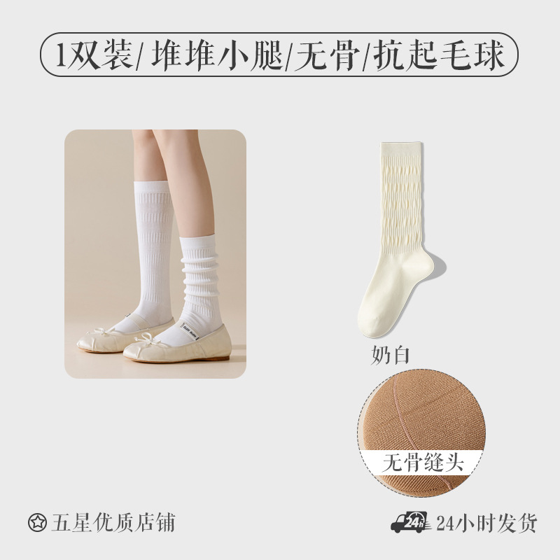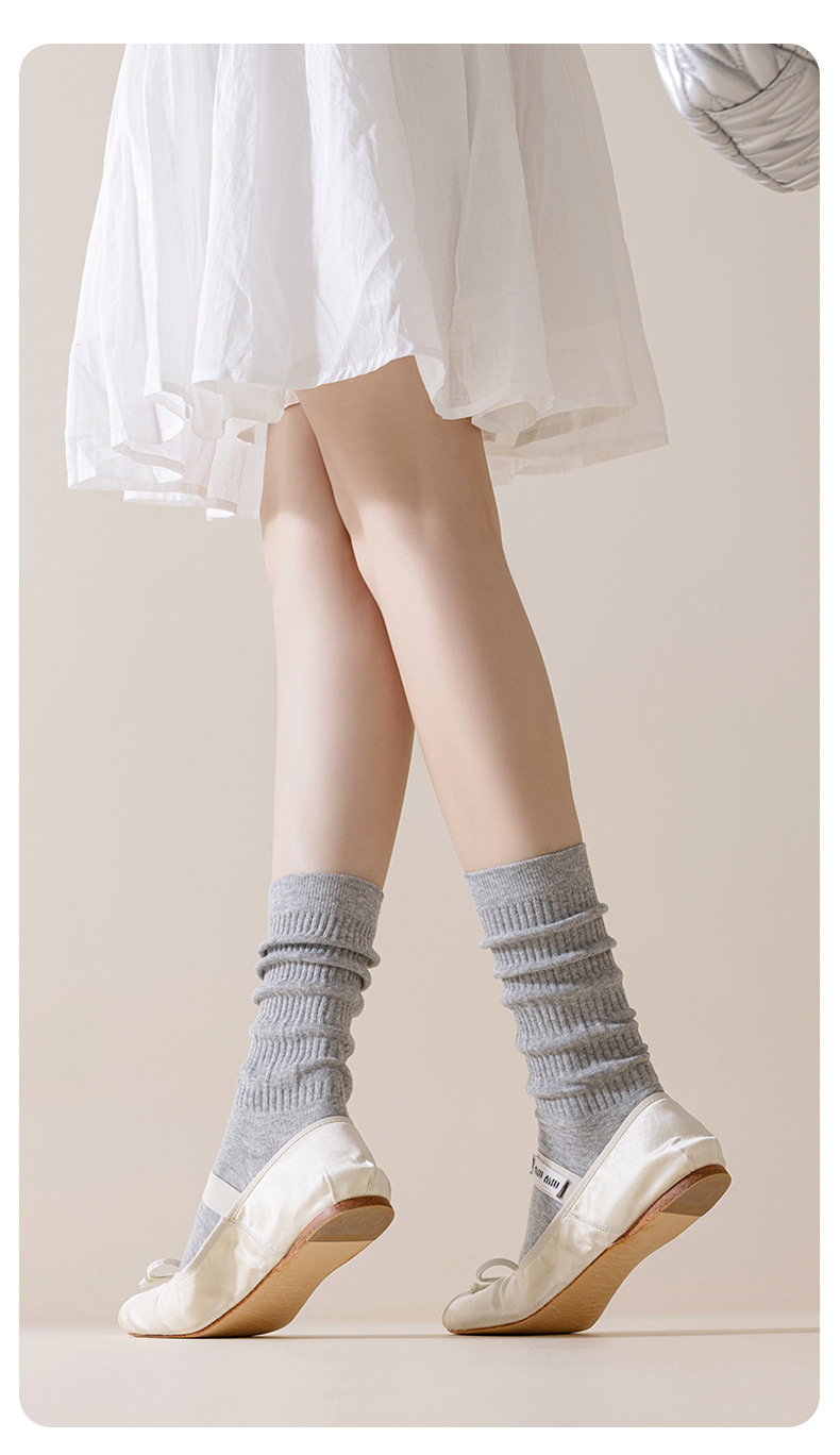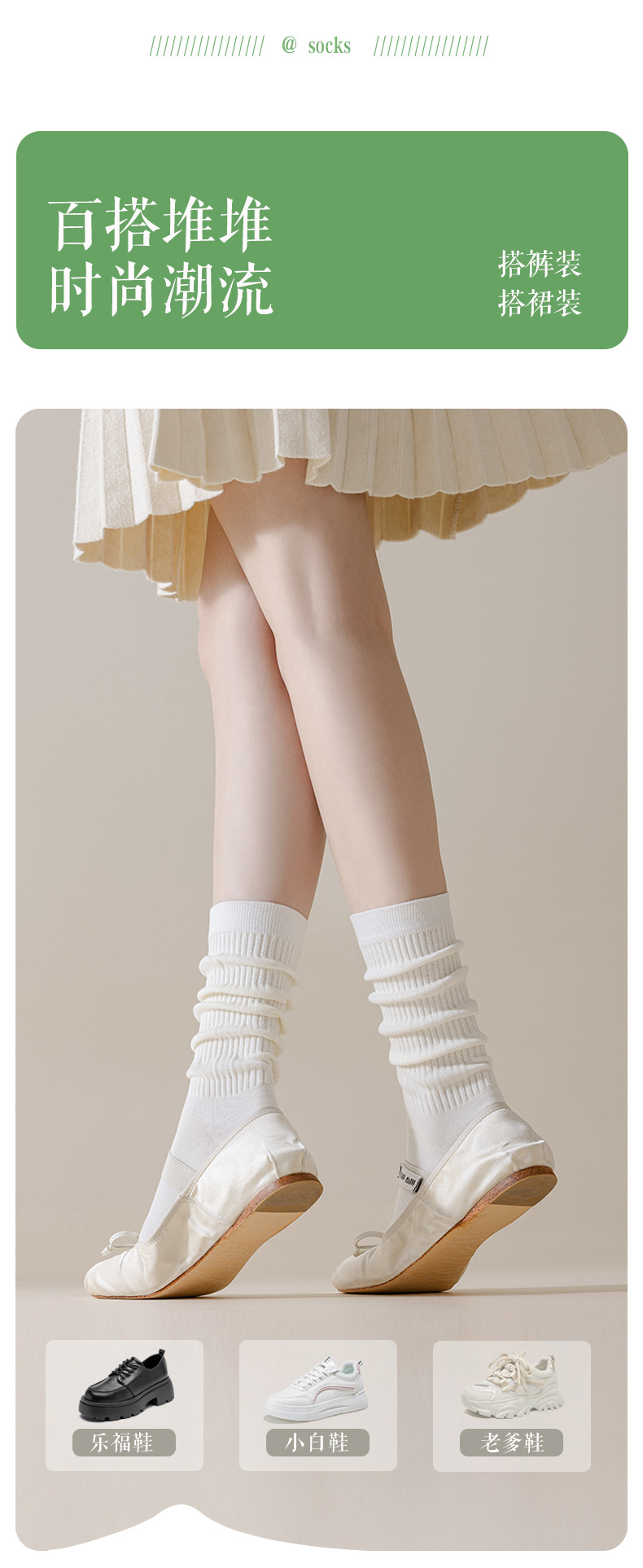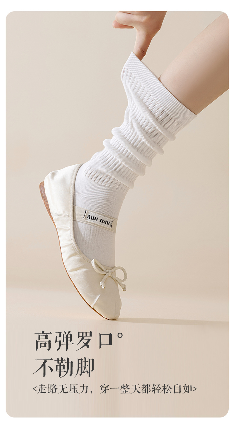 여성용 봄가을 하프삭스, 일본식 무봉제 양말, 화이트 여성 발레 스타일 롱삭스, 가죽신과 함께 착용스토어 가기