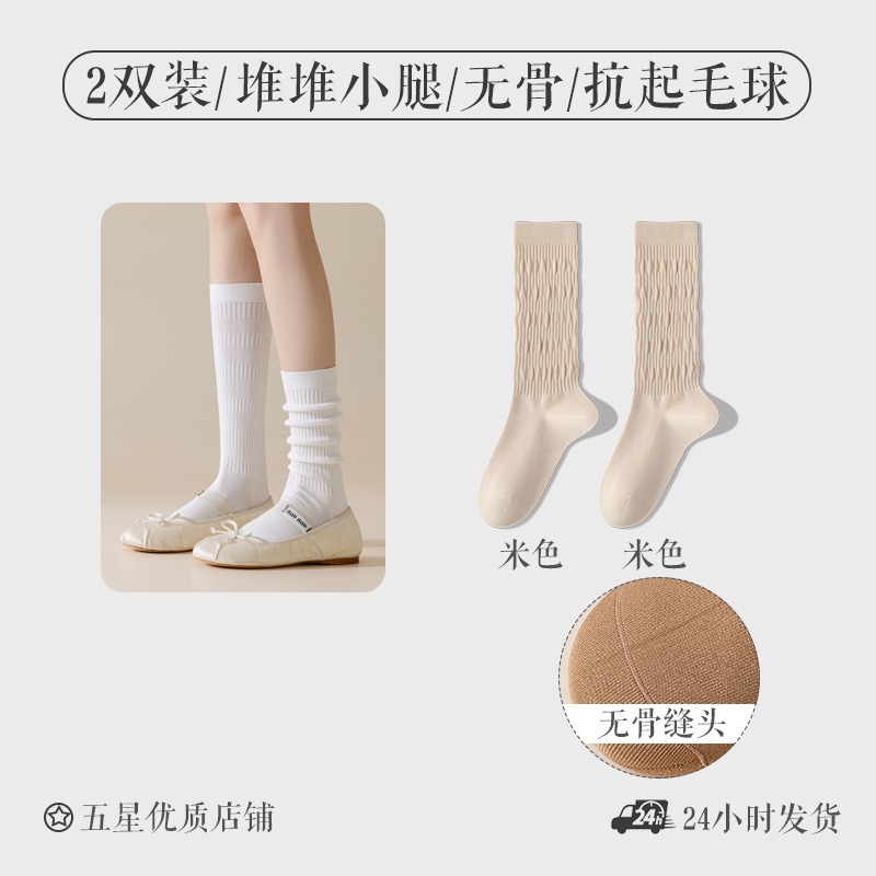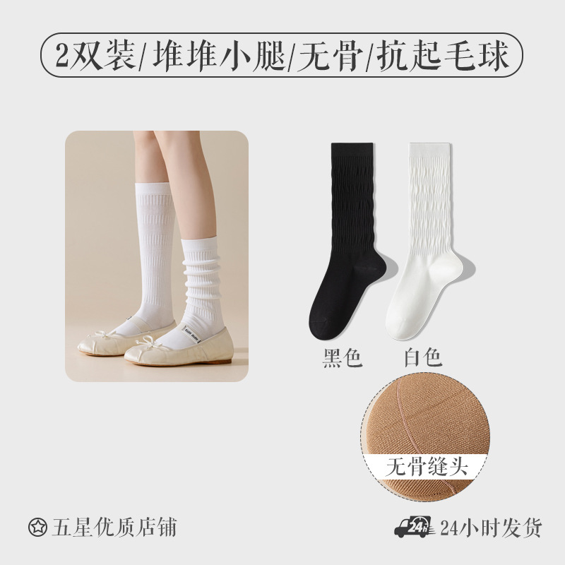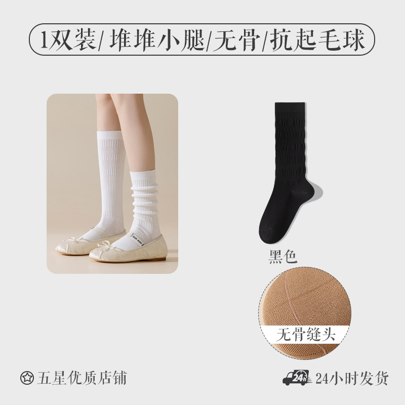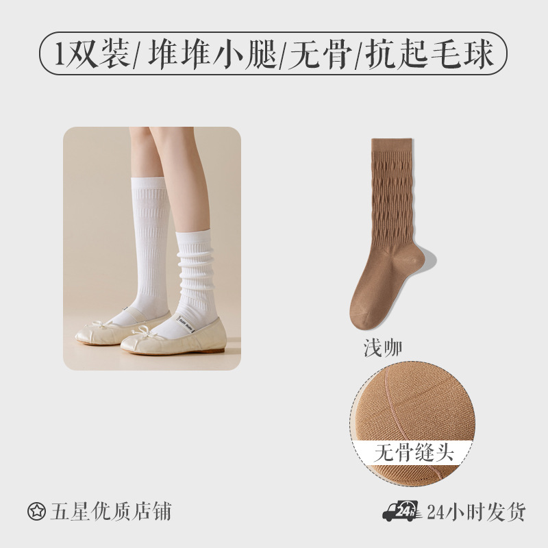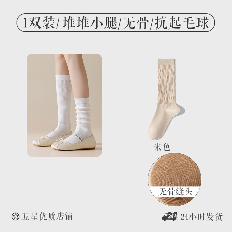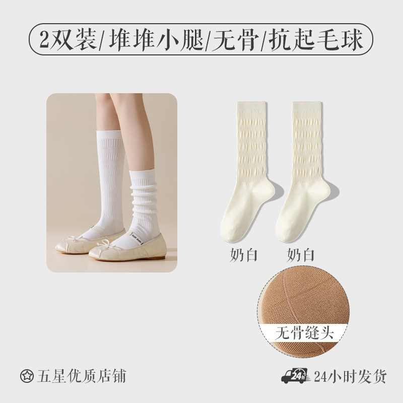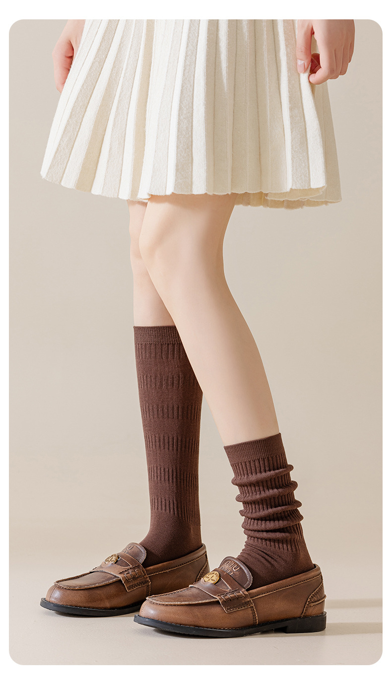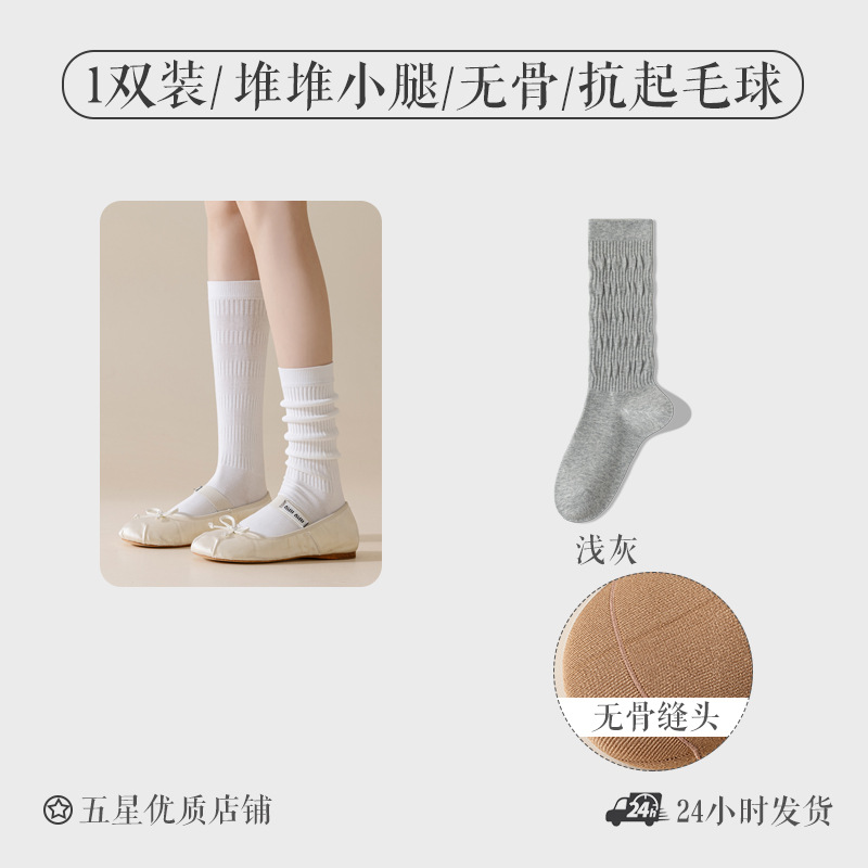 여성용 봄가을 하프삭스, 일본식 무봉제 양말, 화이트 여성 발레 스타일 롱삭스, 가죽신과 함께 착용스토어 가기