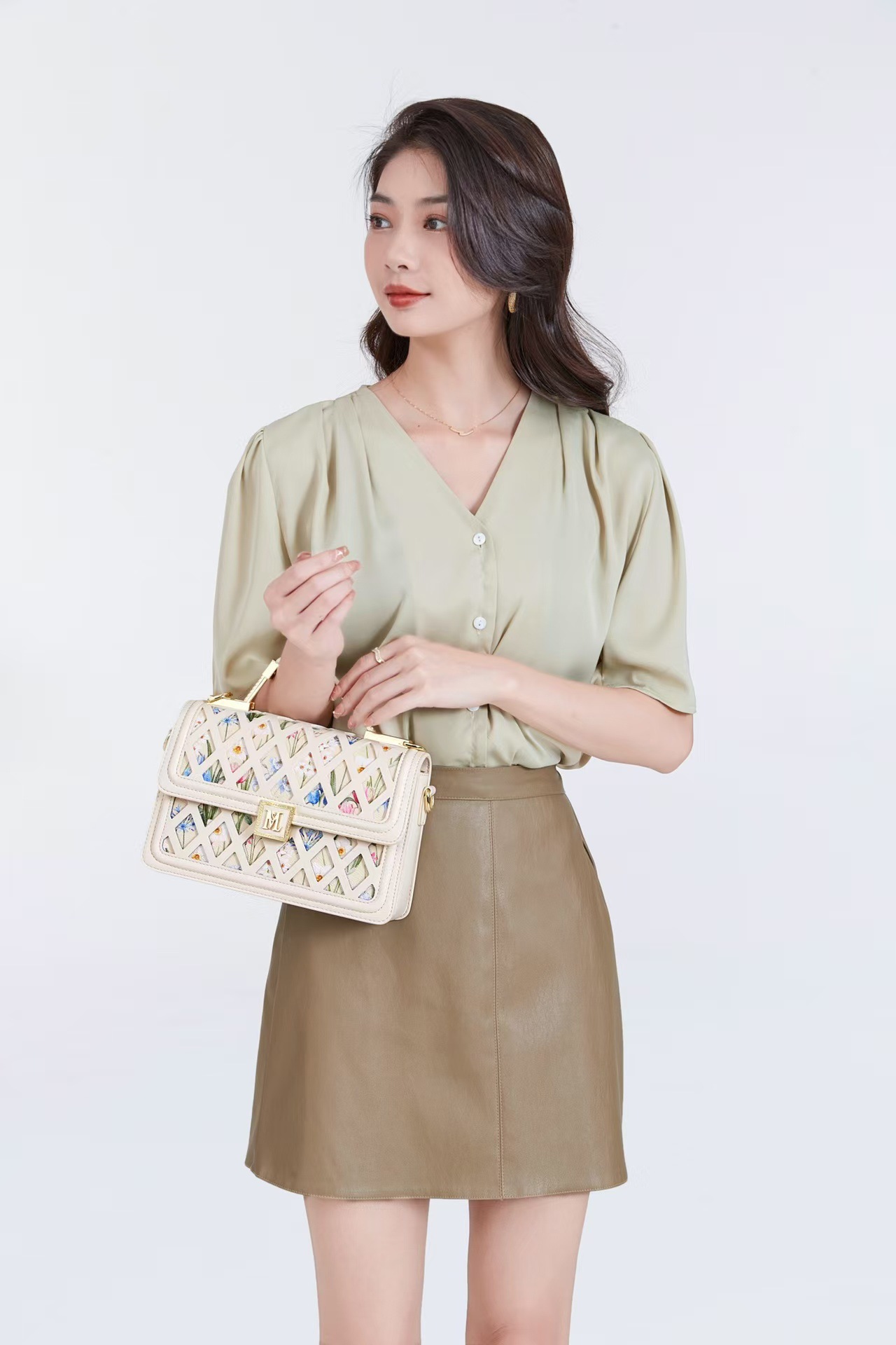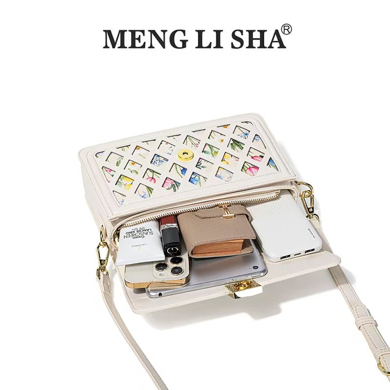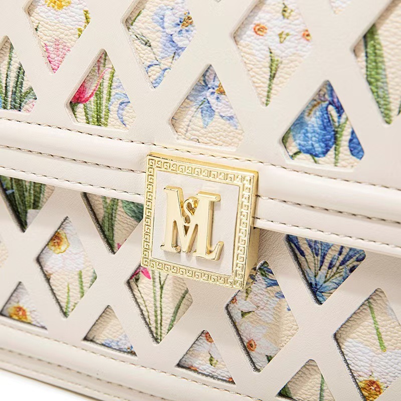 국경 가방 여성의 2024 가을과 겨울 새로운 중공 꽃 작은 광장 가방 유행 올 매치 어깨 크로스 바디 백스토어 가기