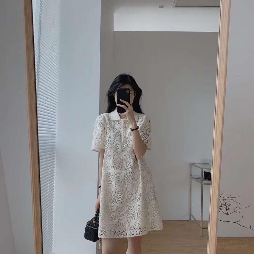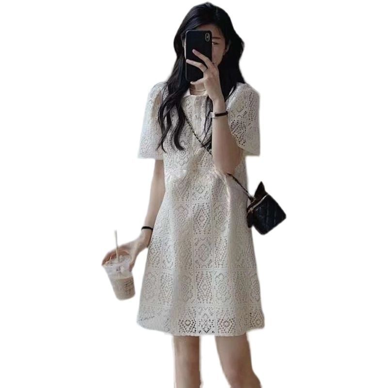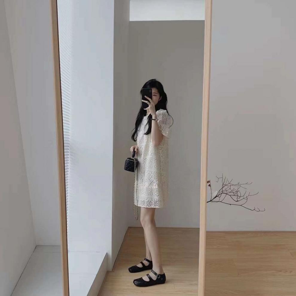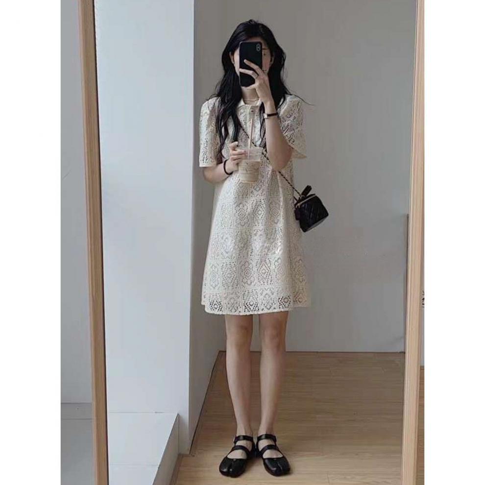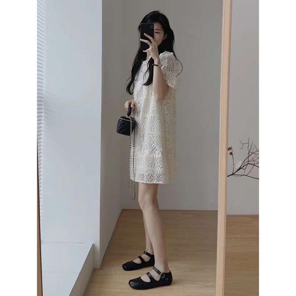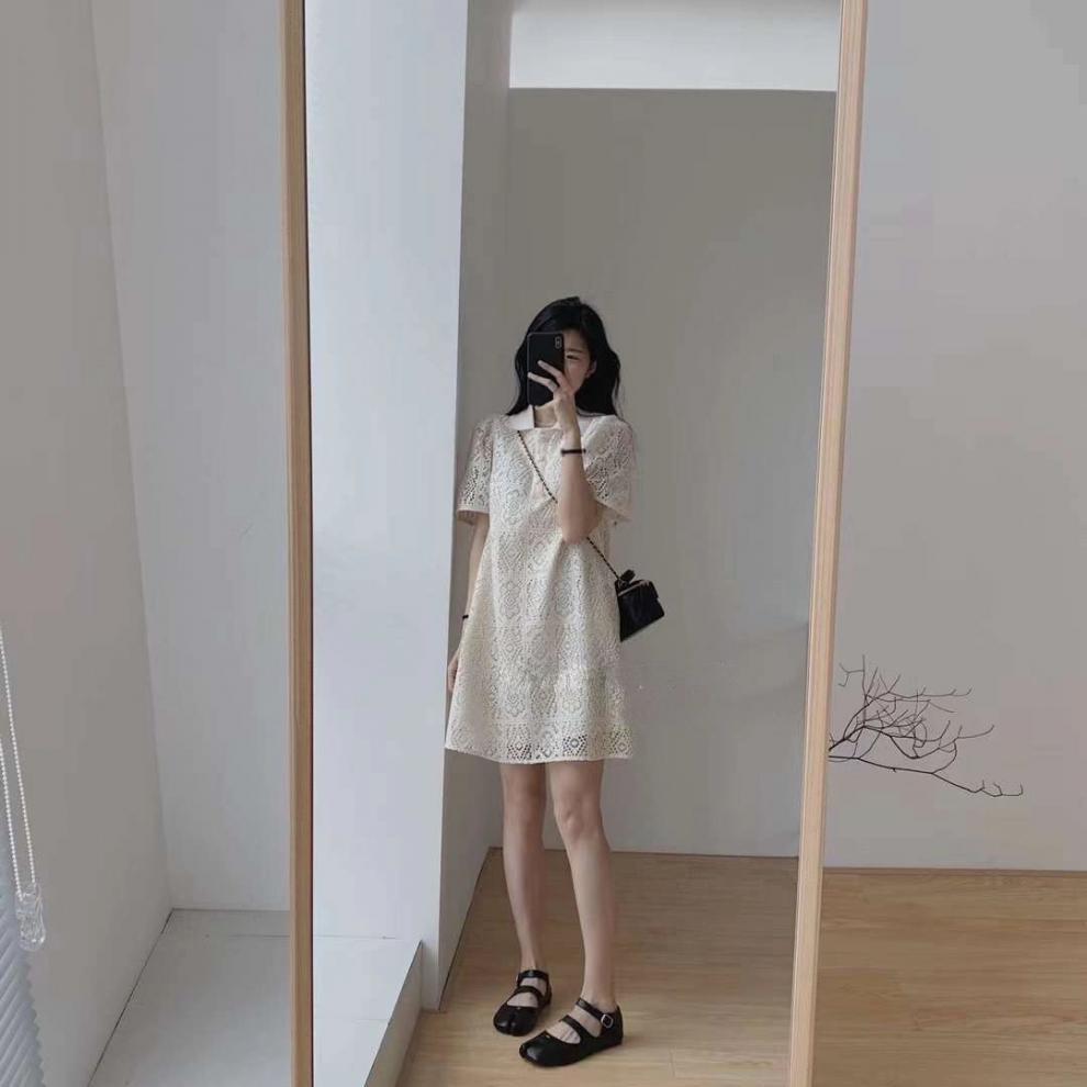 2025 새로운 여름 프랑스 디자인 중공 부드럽고 달콤한 스퀘어 넥 통근 슬리밍 여성용 드레스스토어 가기