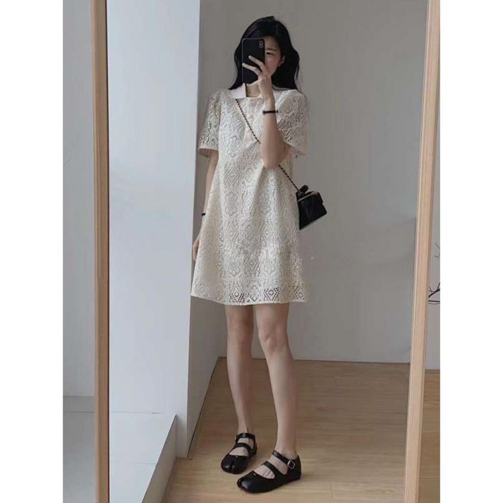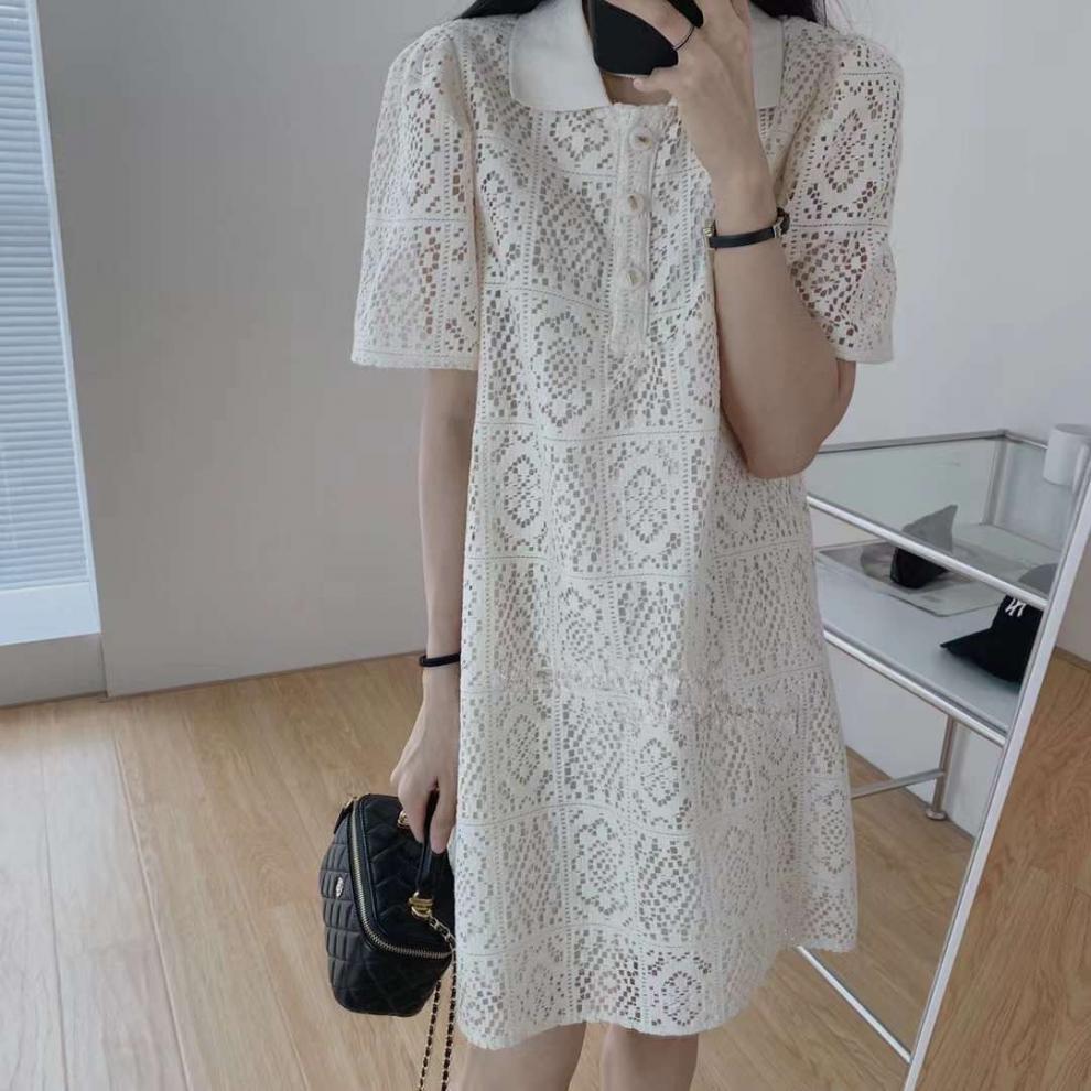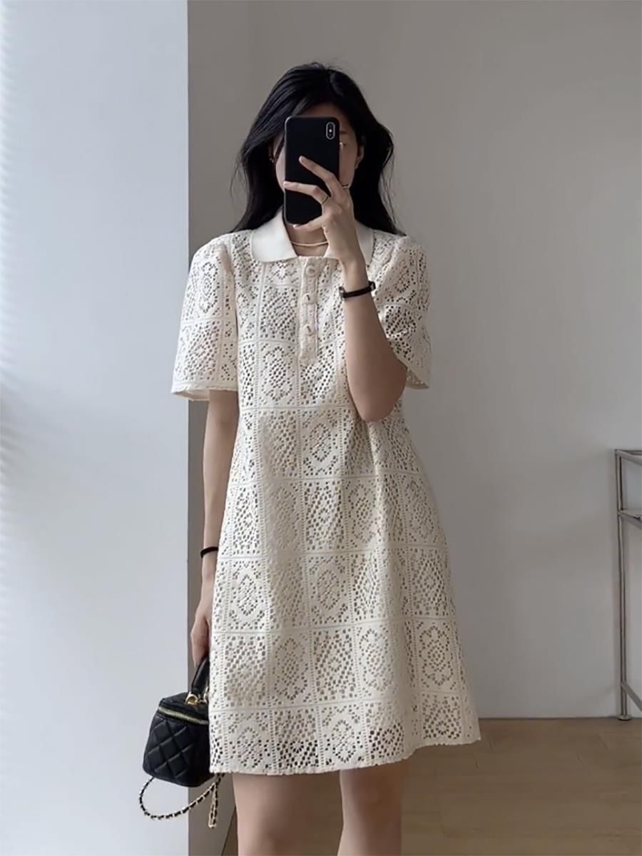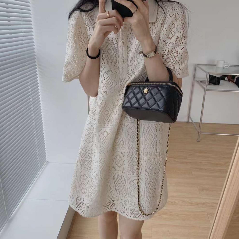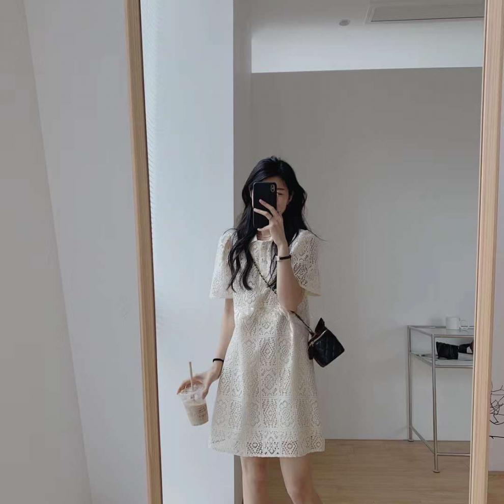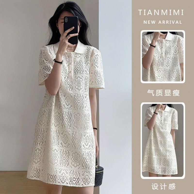 2025 새로운 여름 프랑스 디자인 중공 부드럽고 달콤한 스퀘어 넥 통근 슬리밍 여성용 드레스스토어 가기