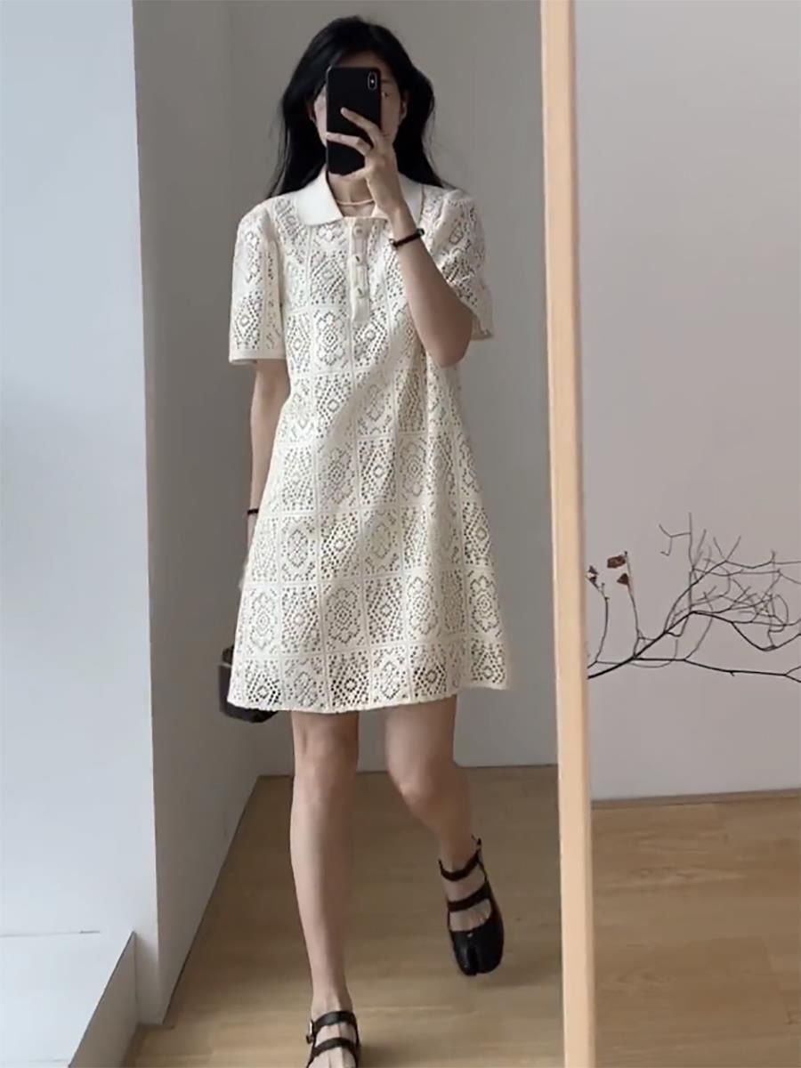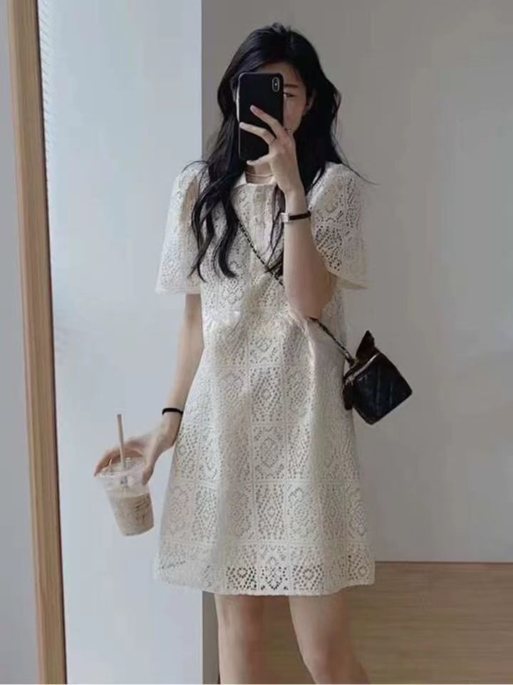 2025 새로운 여름 프랑스 디자인 중공 부드럽고 달콤한 스퀘어 넥 통근 슬리밍 여성용 드레스