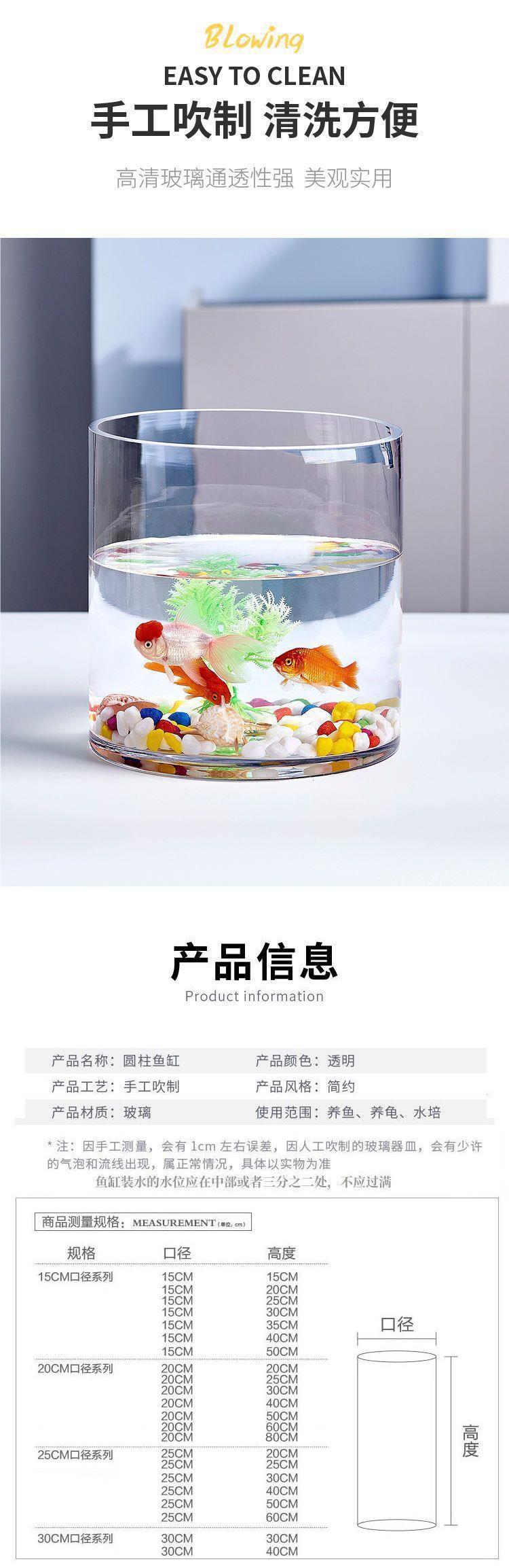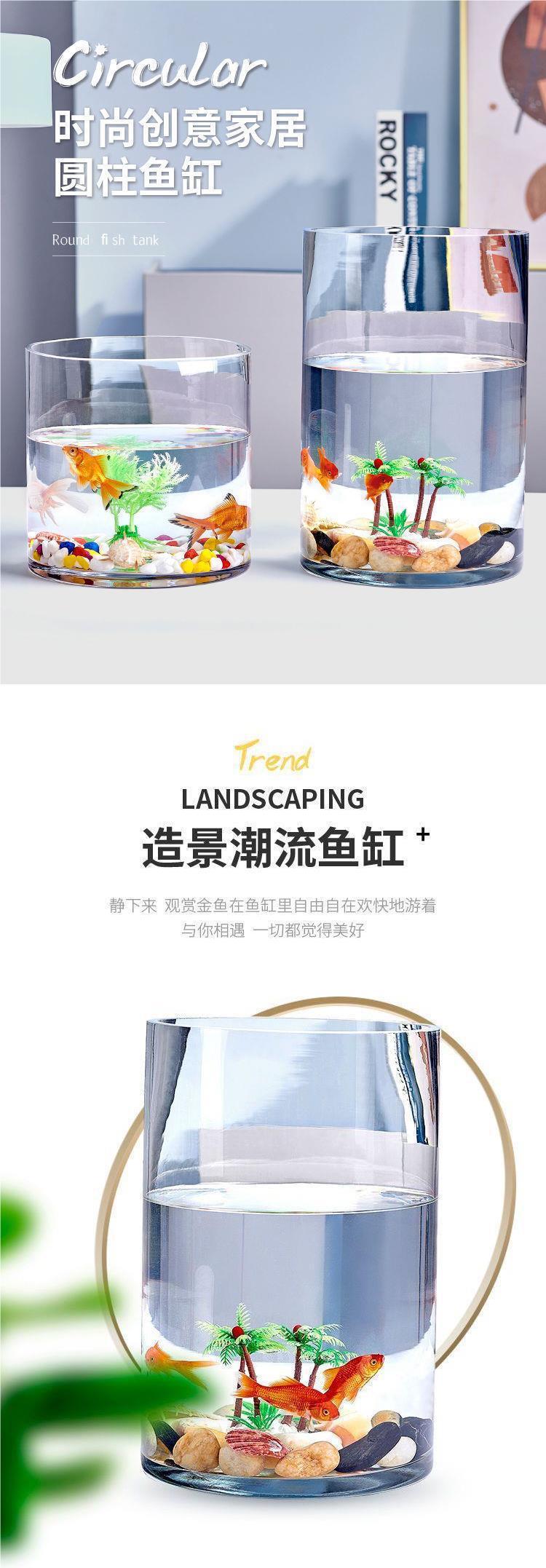 스트레이트 유리 수족관 작은 원형 실린더 투명한 창조적 인 금붕어 탱크 홈 거실 사무실 풍경스토어 가기