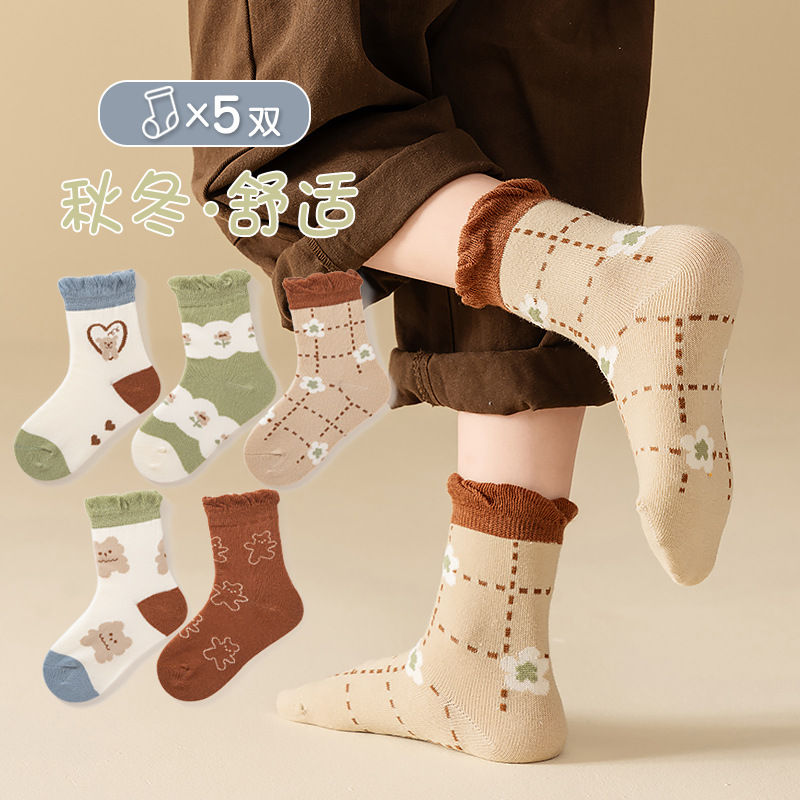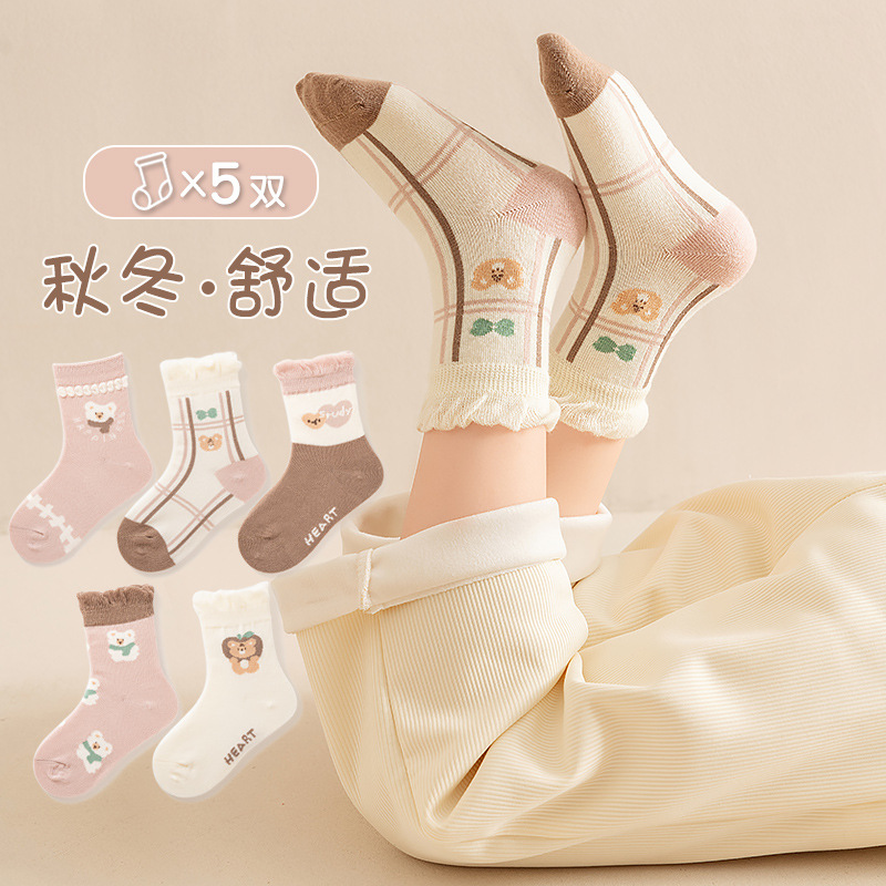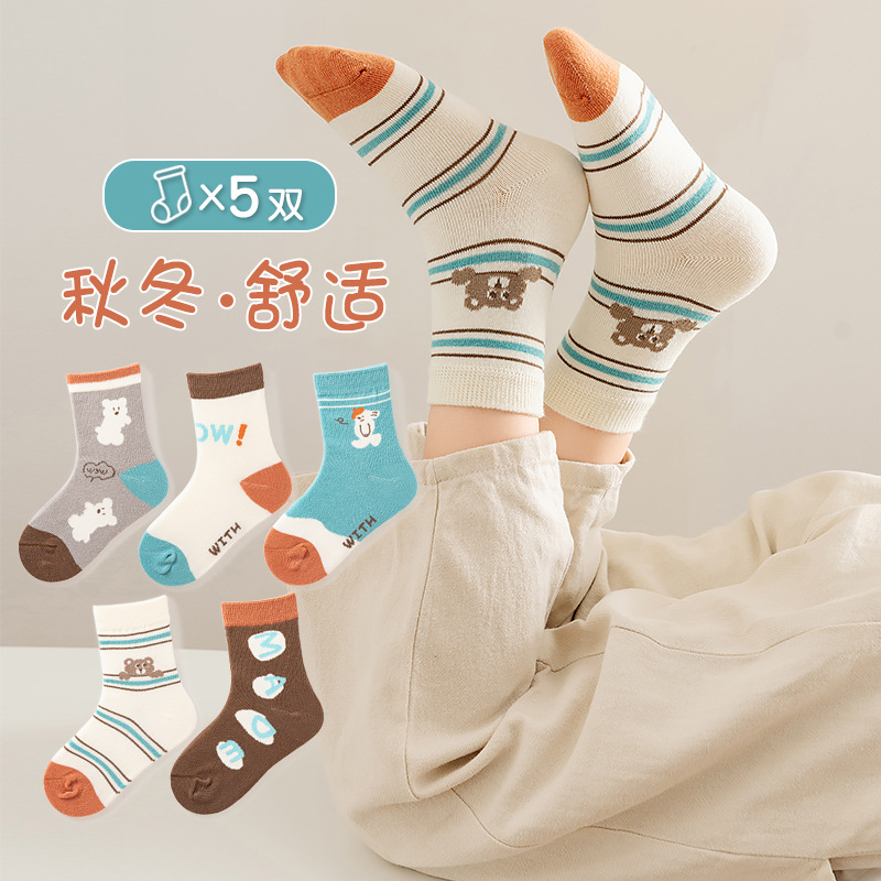 아기 양말 클래스 봄 가을 만화 한국 스타일 면화 양말 아기 겨울 중간 튜브 어린이 양말 소년 소녀