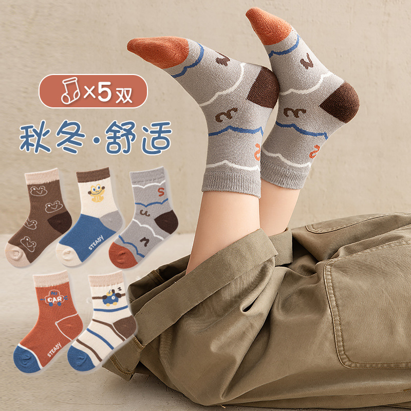 아기 양말 클래스 봄 가을 만화 한국 스타일 면화 양말 아기 겨울 중간 튜브 어린이 양말 소년 소녀스토어 가기