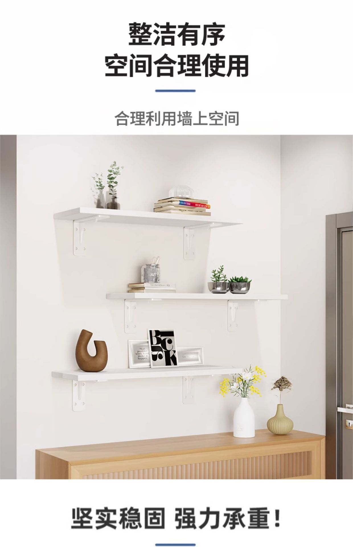 벽 선반 목재 보드 벽걸이 형 파티션 책장 벽 선반 슬립 보드 교수형 브래킷 하중 저장 보드스토어 가기
