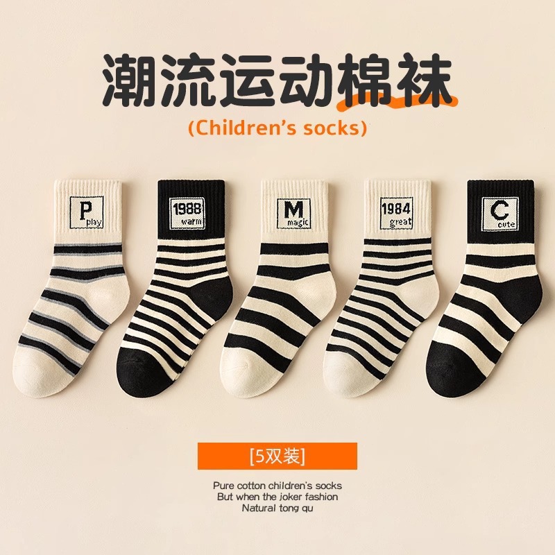 어린이 양말 가을과 겨울 중반 튜브 양말 소년 중 큰 어린이 겨울 어린이 양말 줄무늬 스포츠 유행 양말 아기 양말 제조 업체스토어 가기