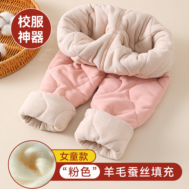 가을과 겨울 어린이 따뜻한 바지 소년과 소녀는 학교 유니폼 아티팩트 대형 아동면 바지 학생 기모 두꺼운 가을 바지 착용스토어 가기