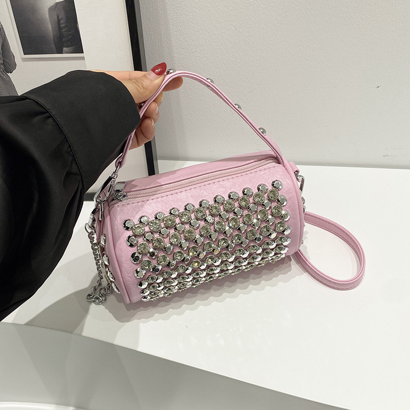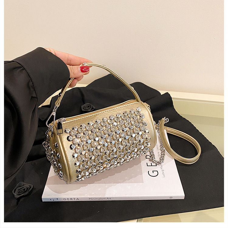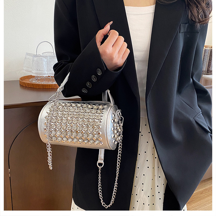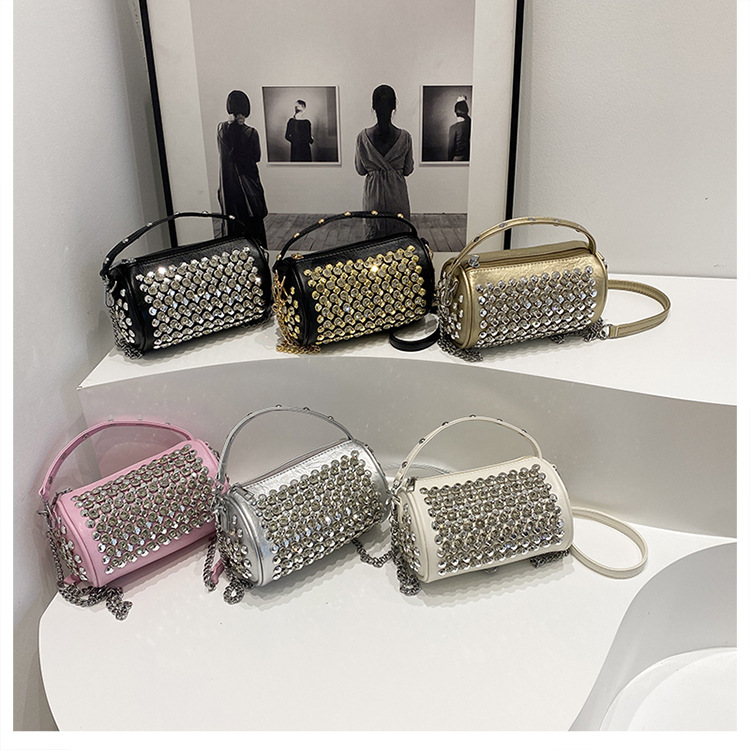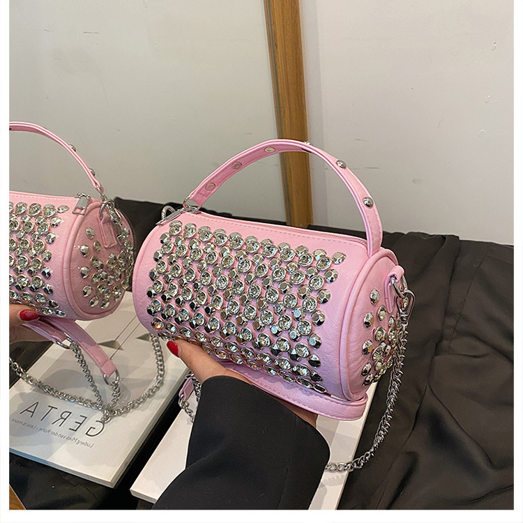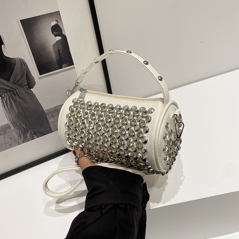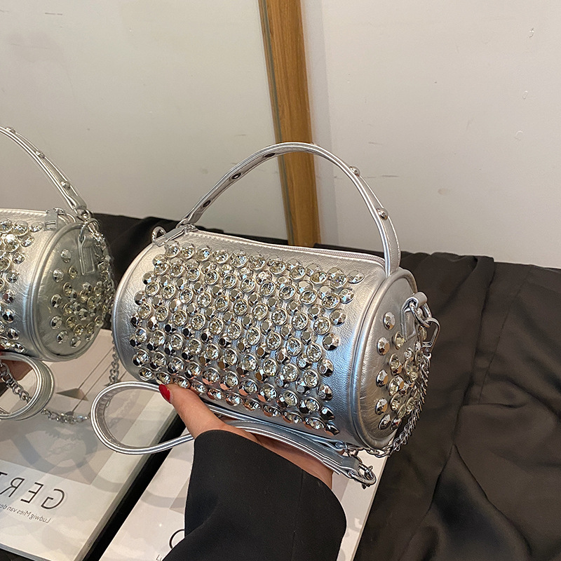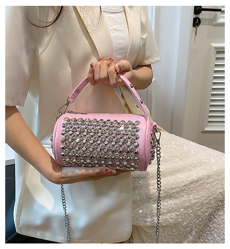 대외 무역 다이아몬드가 박힌 실린더 백 여성의 2024 새로운 틈새 디자인 체인 핸드백 패션 트렌디 한 어깨 크로스 바디 백