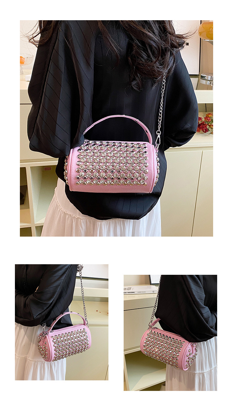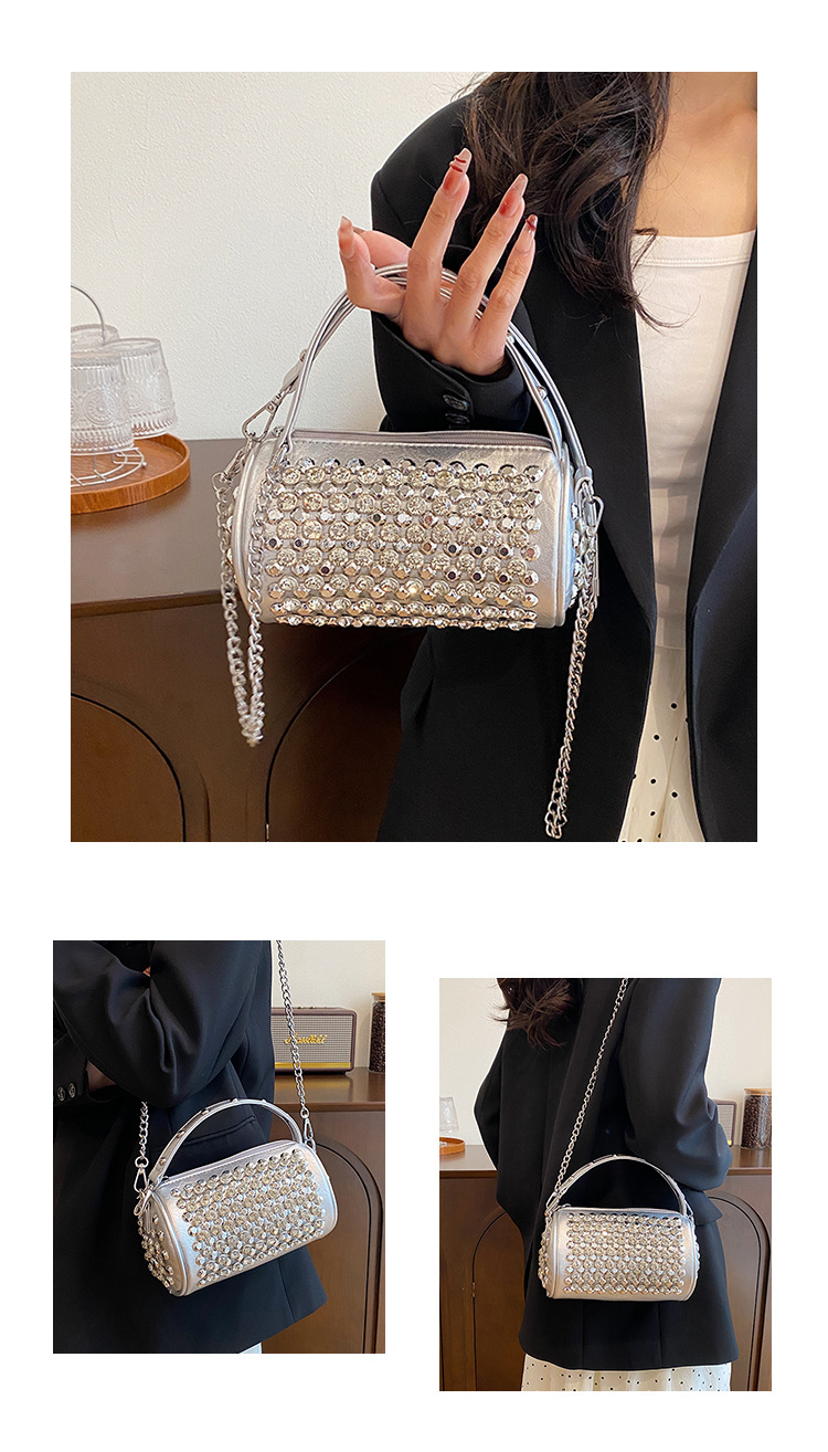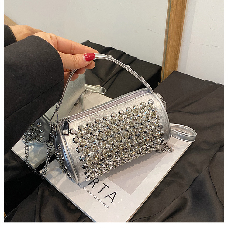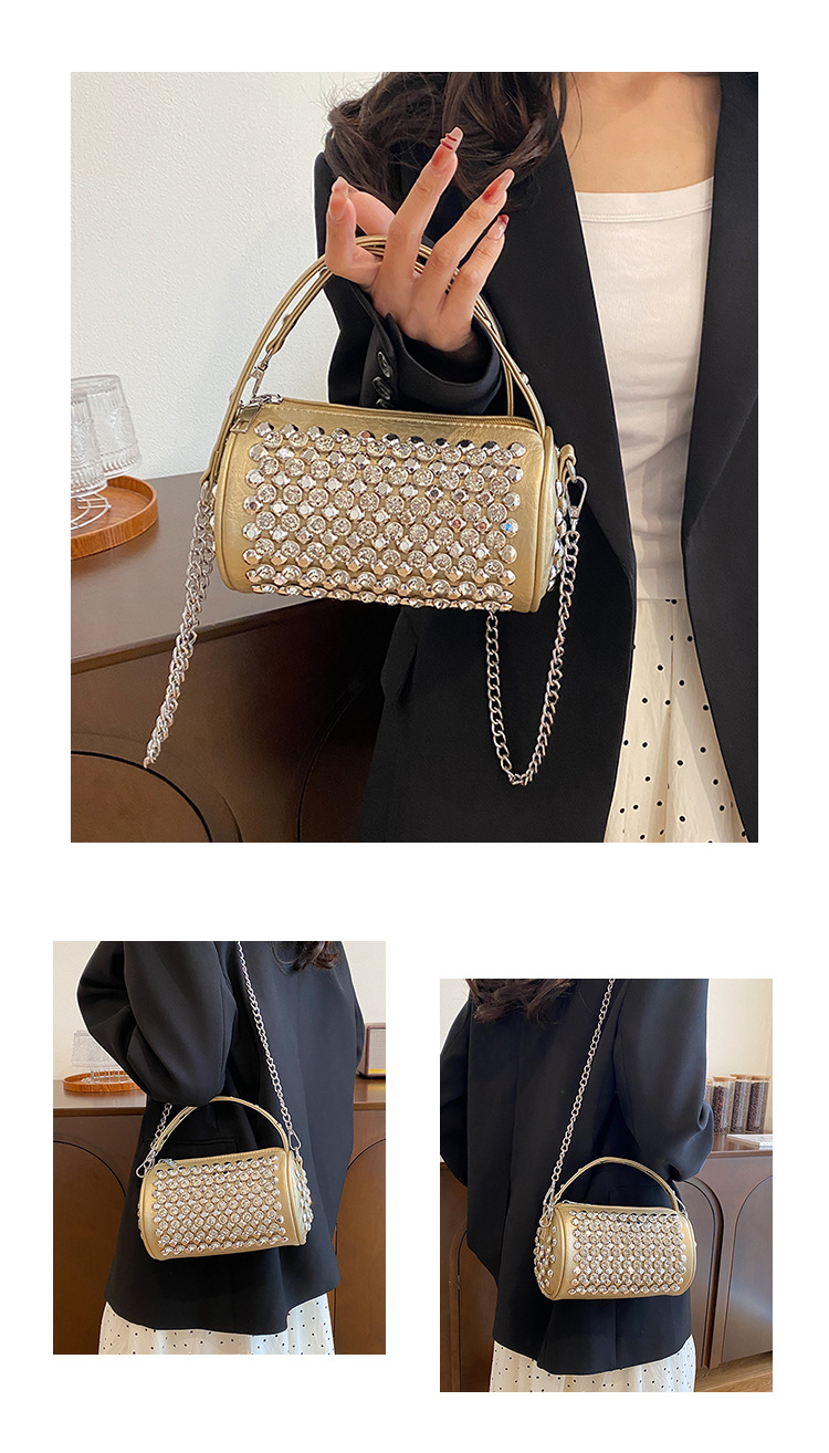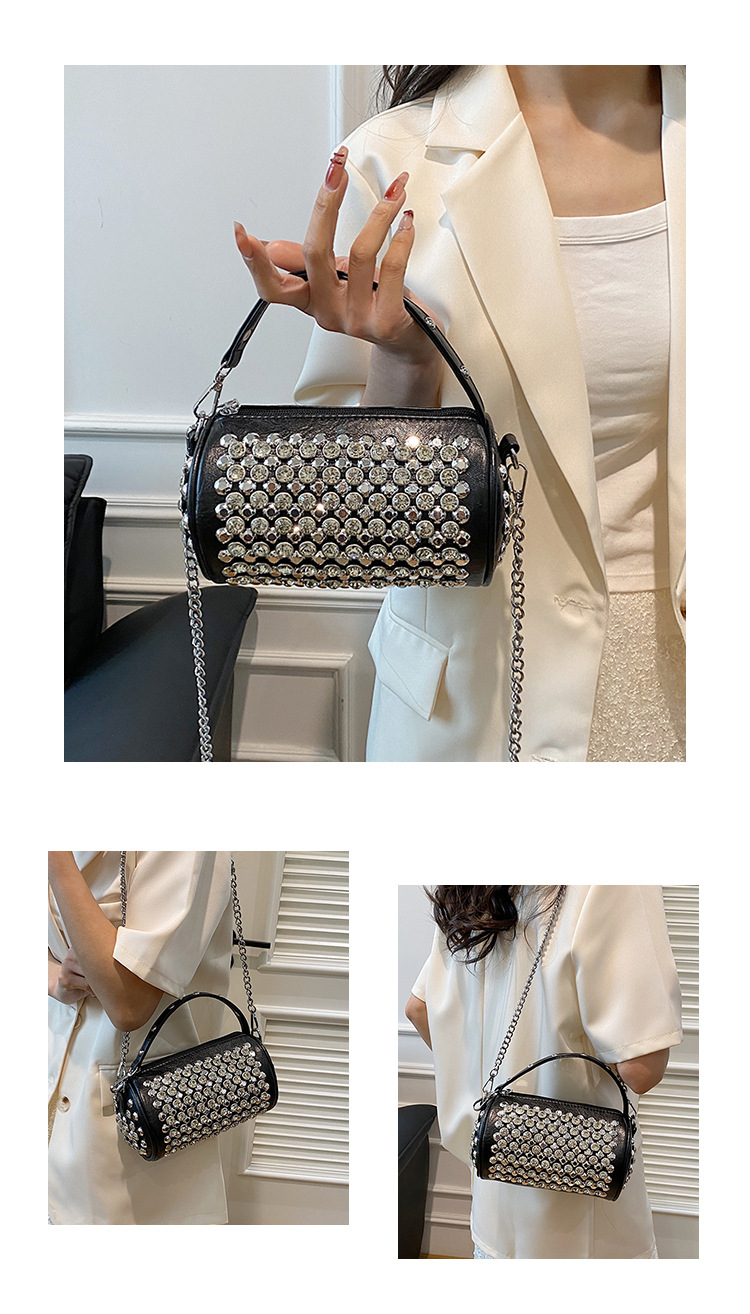 대외 무역 다이아몬드가 박힌 실린더 백 여성의 2024 새로운 틈새 디자인 체인 핸드백 패션 트렌디 한 어깨 크로스 바디 백
