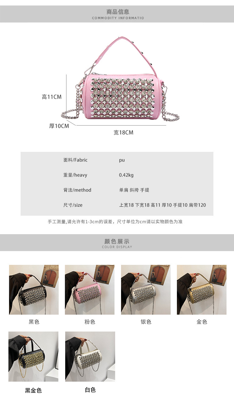 대외 무역 다이아몬드가 박힌 실린더 백 여성의 2024 새로운 틈새 디자인 체인 핸드백 패션 트렌디 한 어깨 크로스 바디 백스토어 가기