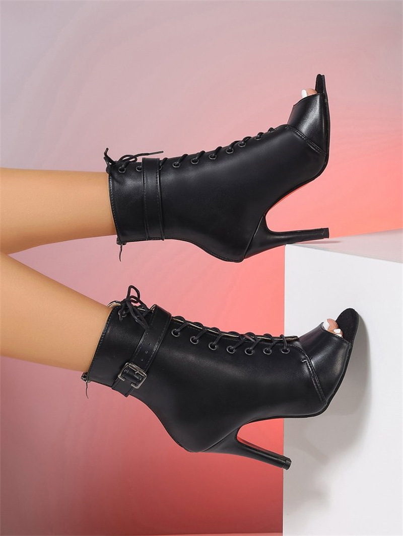 여름 여성용 유럽과 미국의 레이스업 피쉬 입 샌들, 스틸레토 힐, 중공 숏부츠, 재즈 댄스 댄스 하이힐 샌들, 대형 사이즈스토어 가기