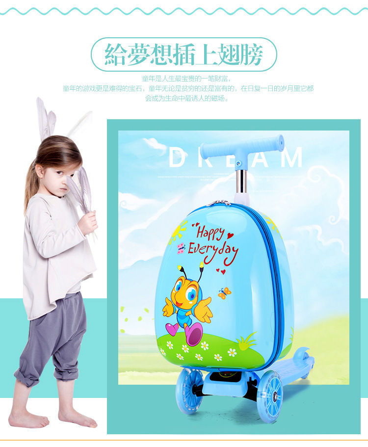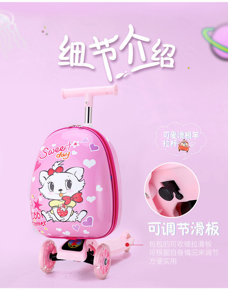 儿童行李箱15寸卡通滑板车发光轮旅行箱可骑可爱拖箱登机箱
