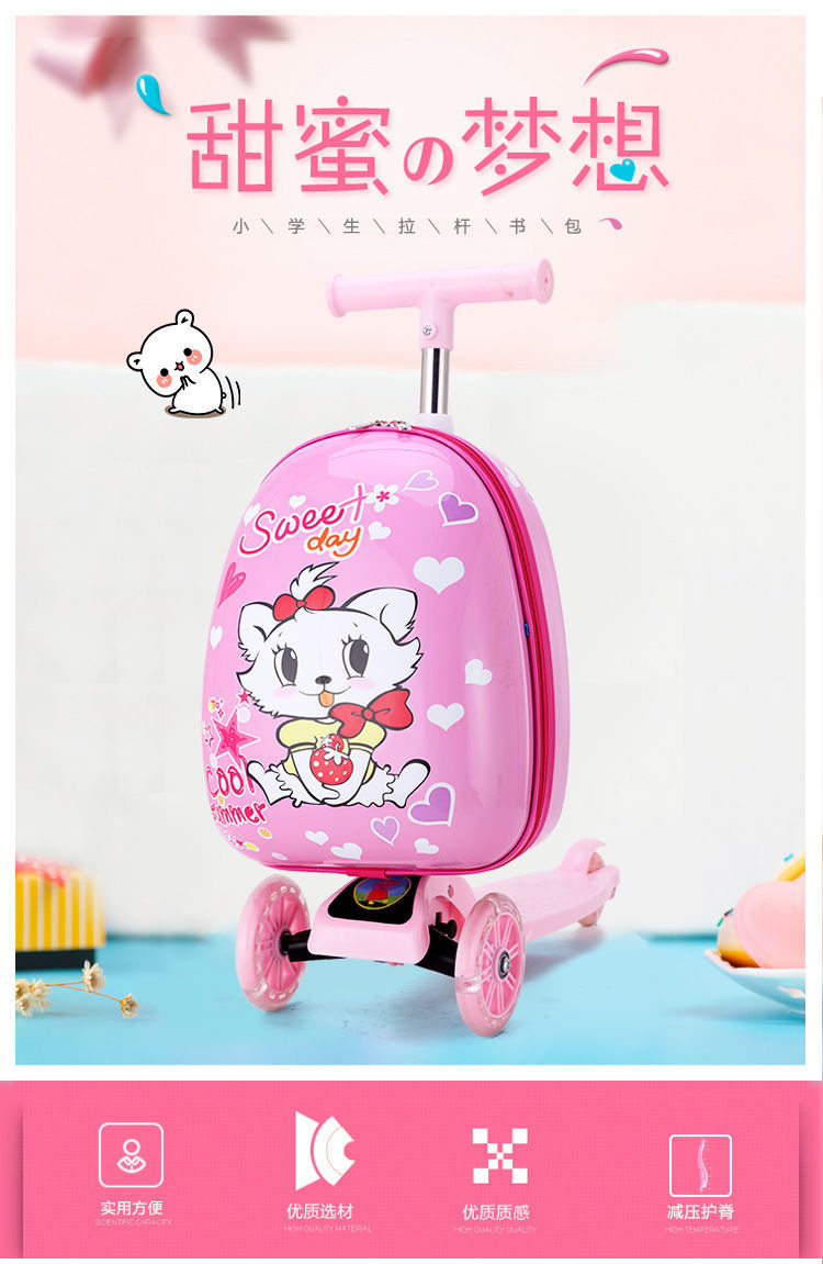 儿童行李箱15寸卡通滑板车发光轮旅行箱可骑可爱拖箱登机箱스토어 가기