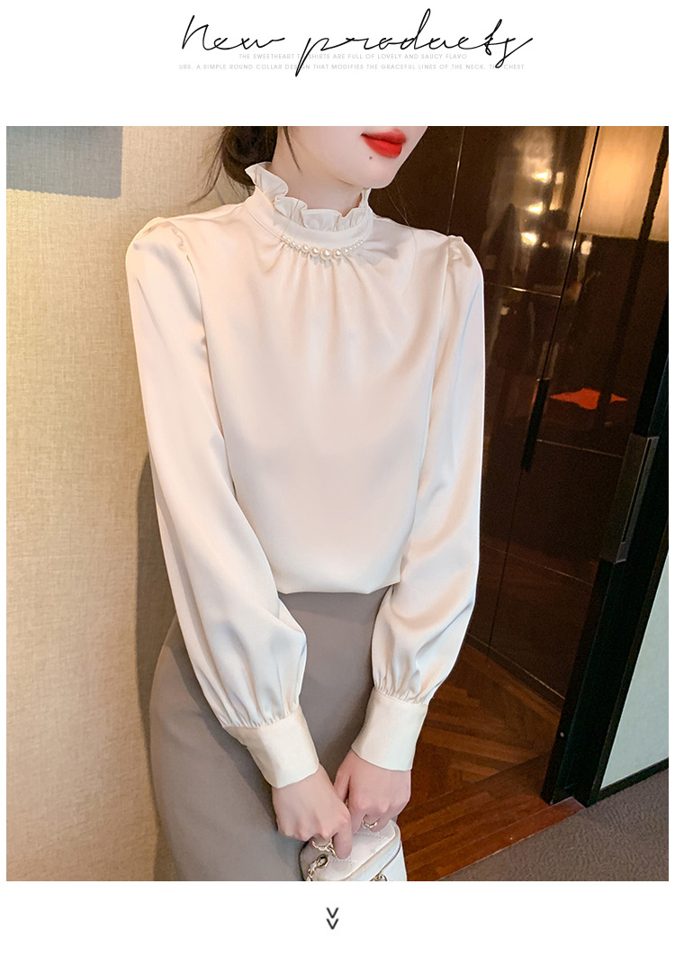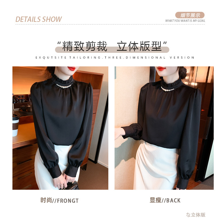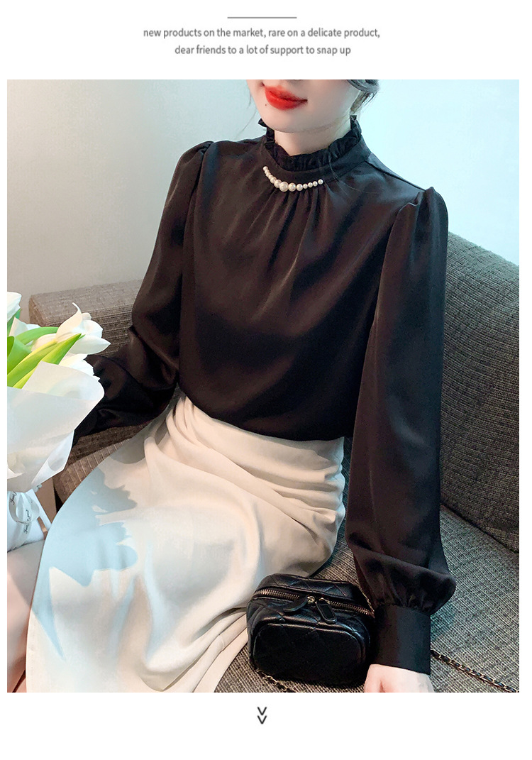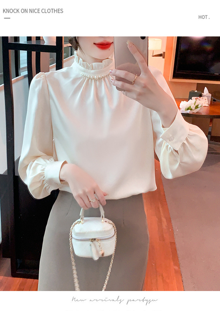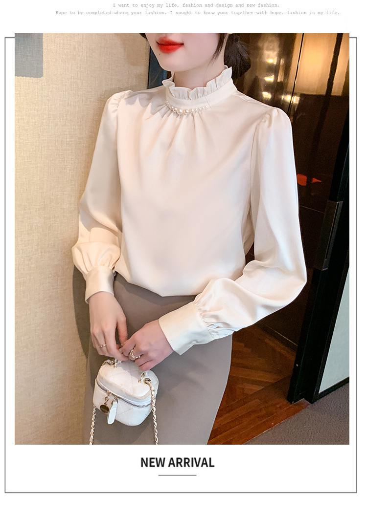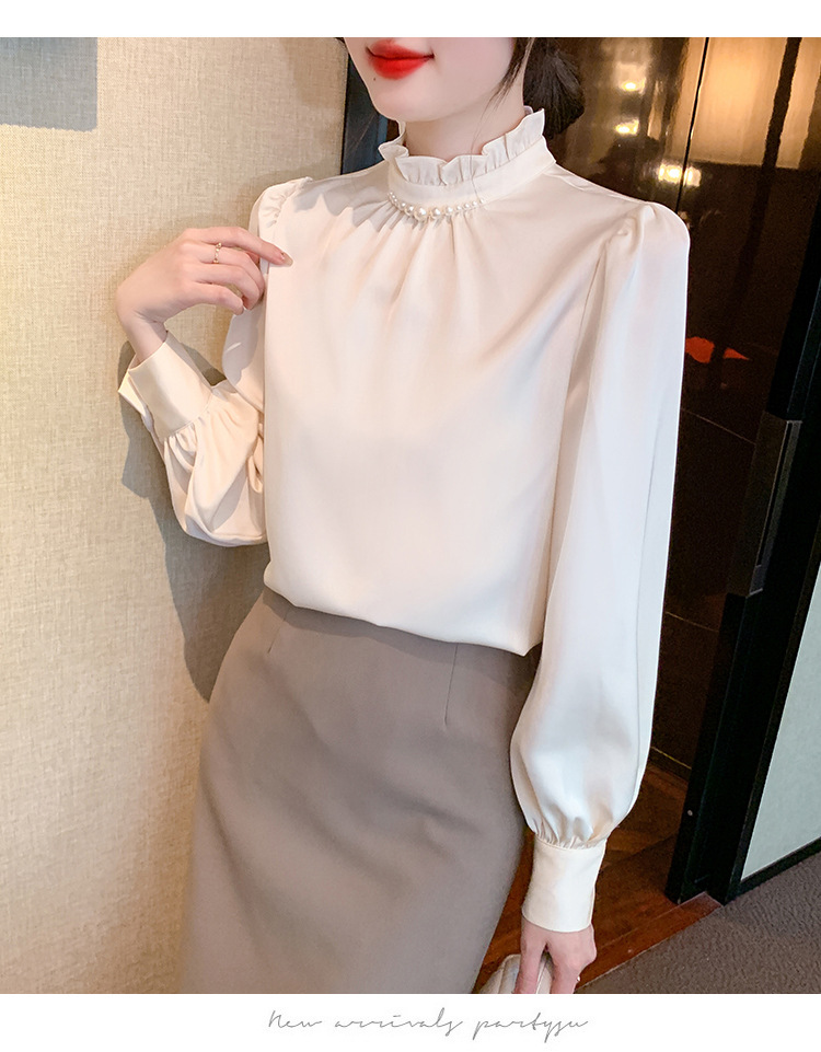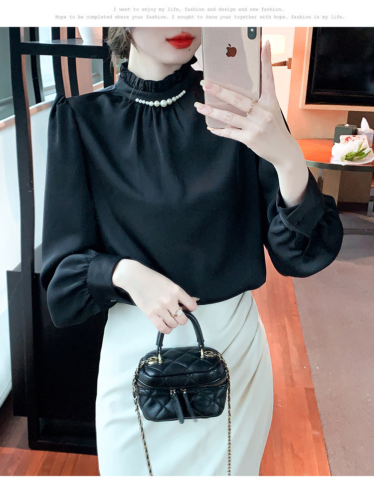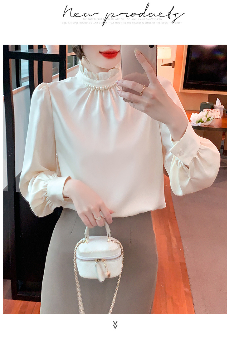 프렌치 스탠드 칼라 비즈 쉬폰 탑 2025 봄, 가을 새로운 스타일 서양식 셔츠 여성을위한 슈퍼 요정 달콤한 곰팡이 셔츠스토어 가기