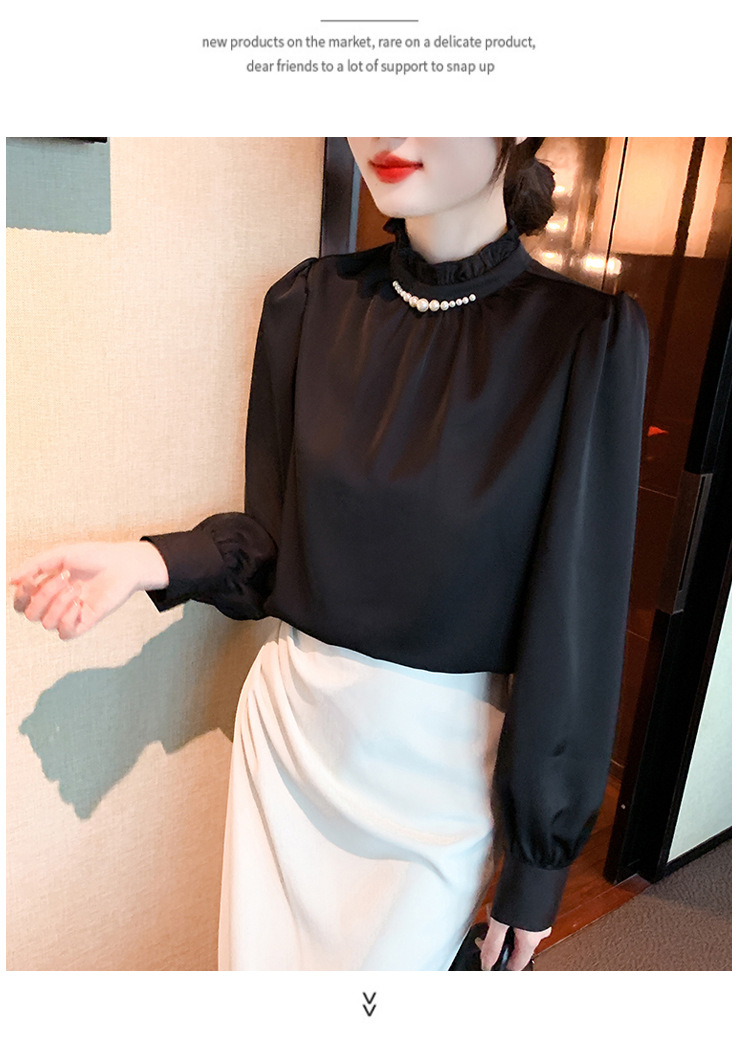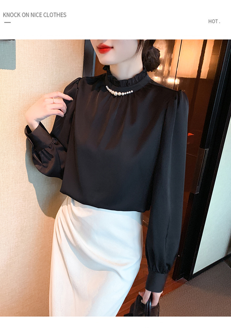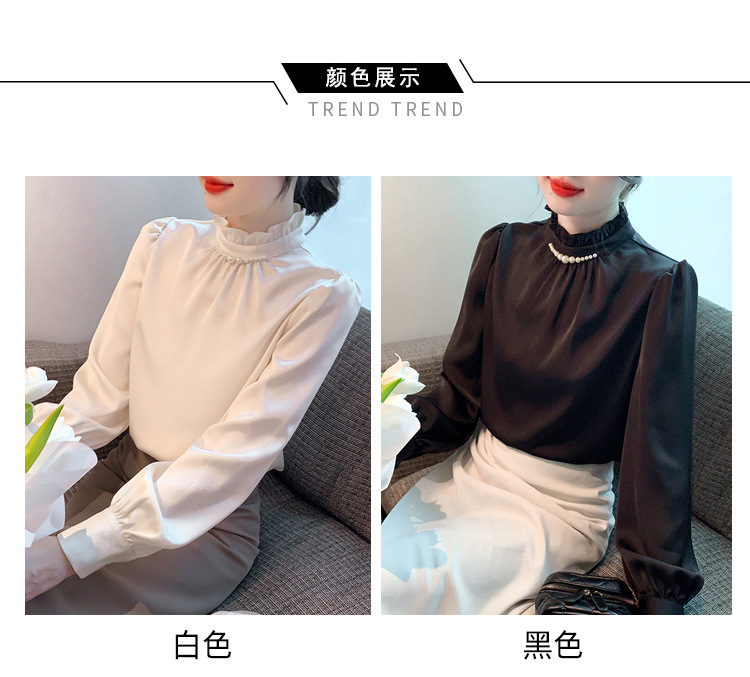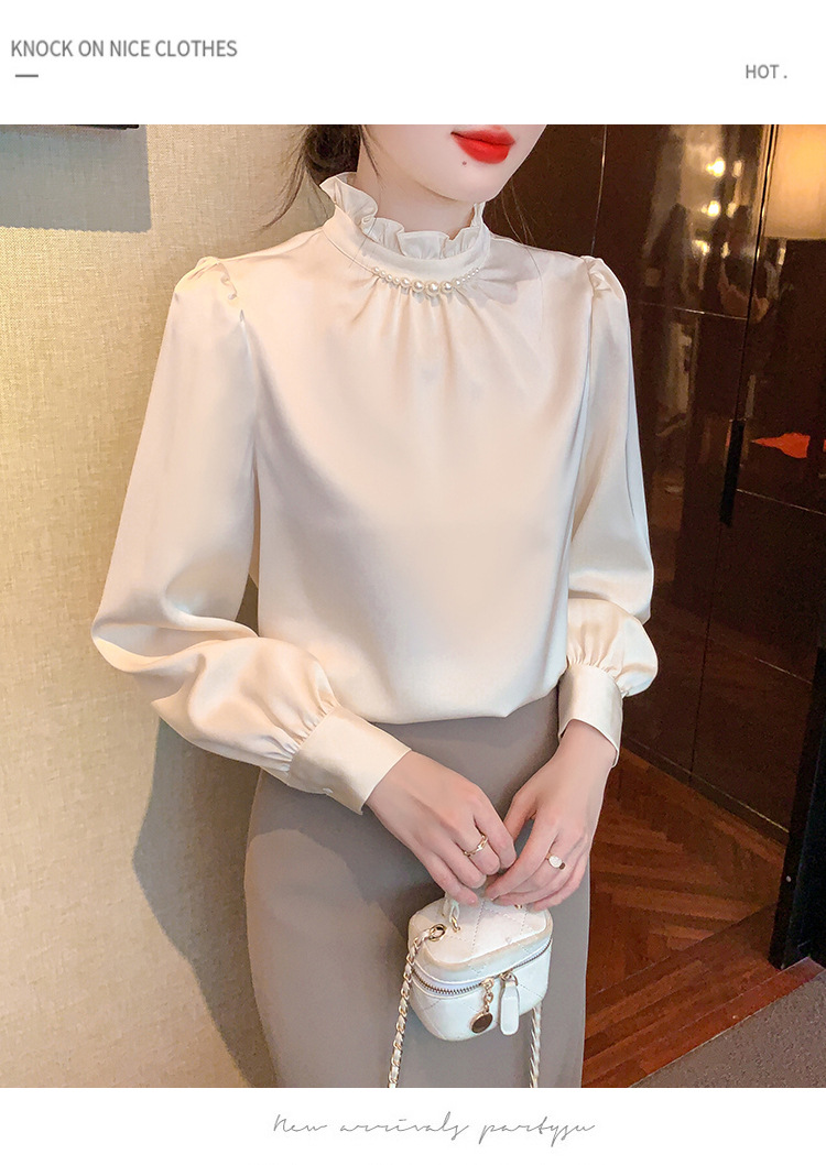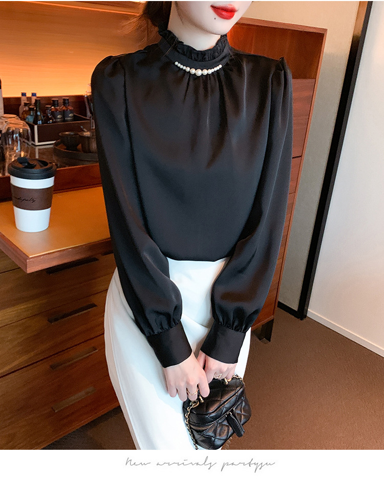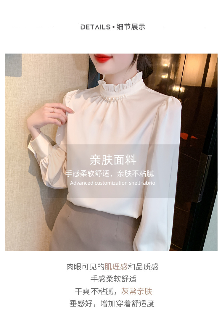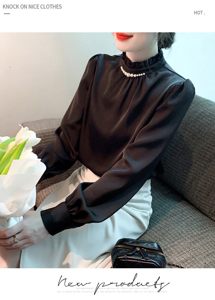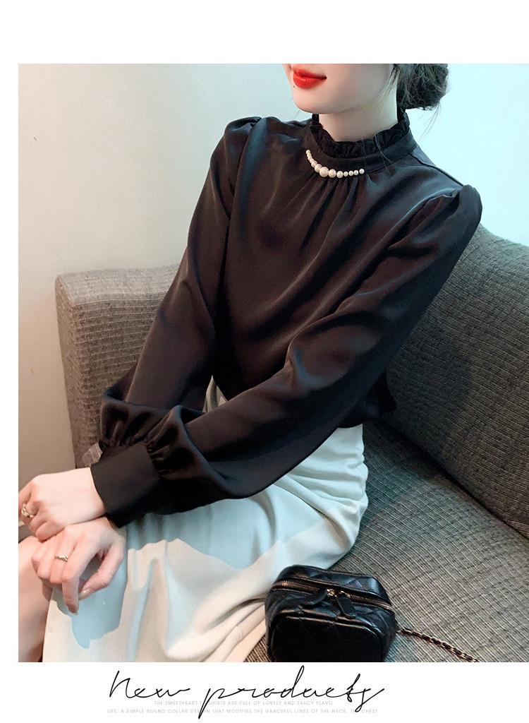 프렌치 스탠드 칼라 비즈 쉬폰 탑 2025 봄, 가을 새로운 스타일 서양식 셔츠 여성을위한 슈퍼 요정 달콤한 곰팡이 셔츠스토어 가기