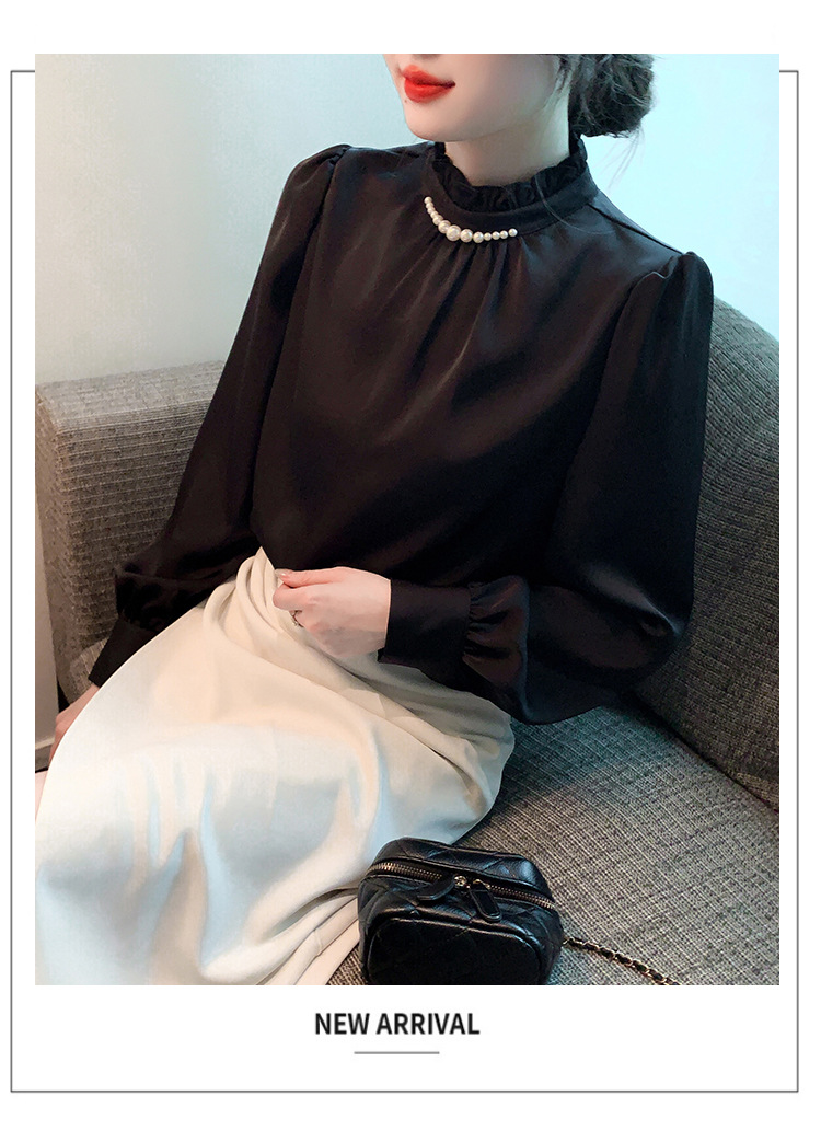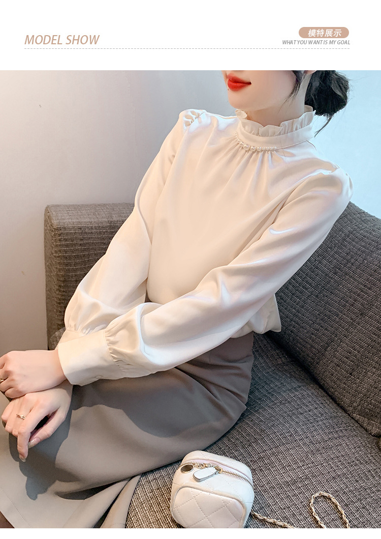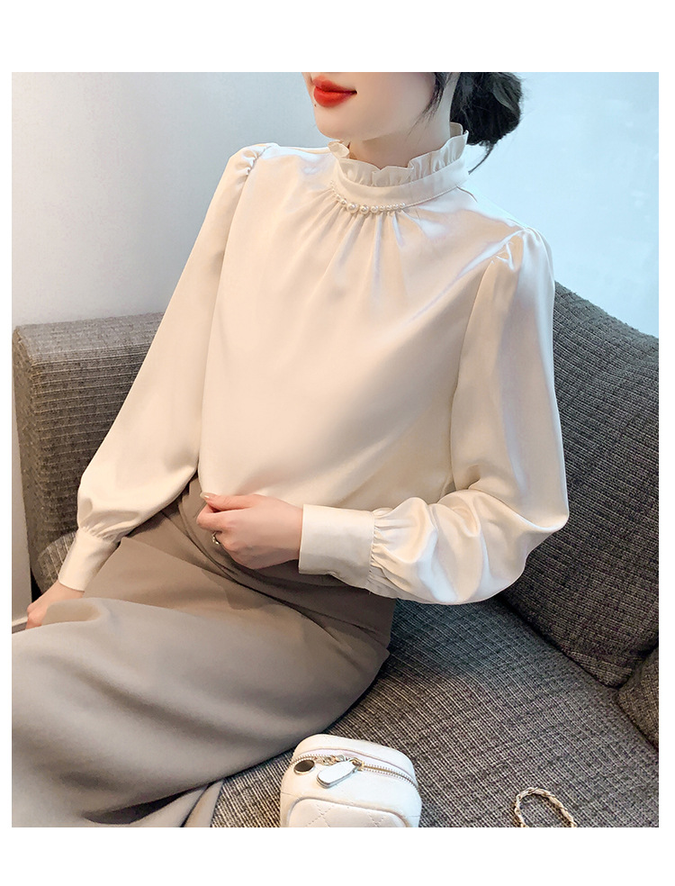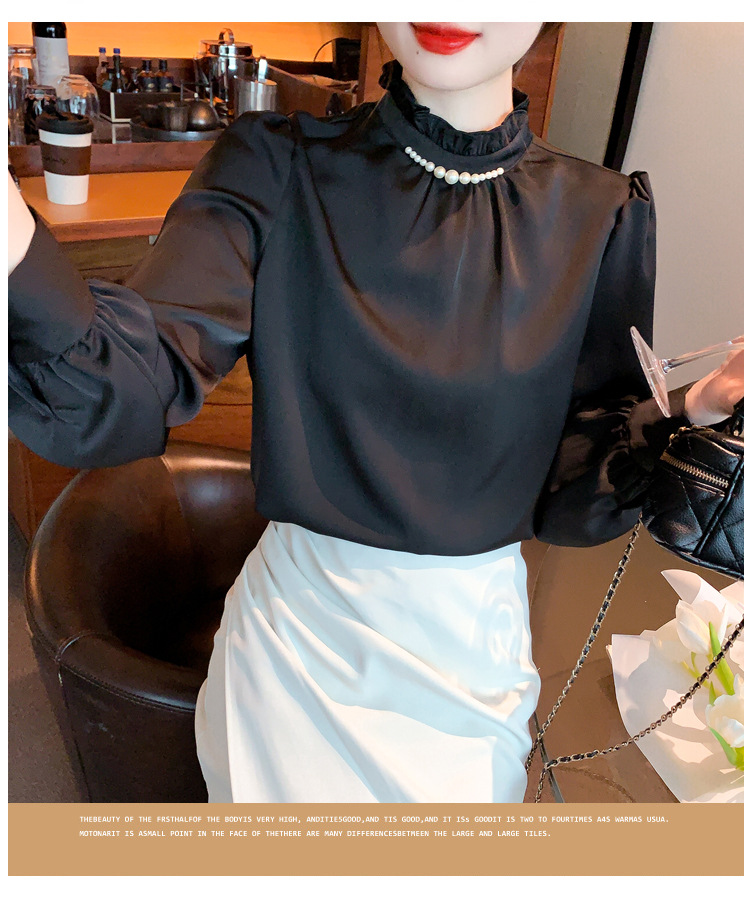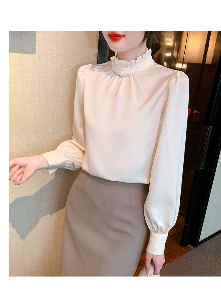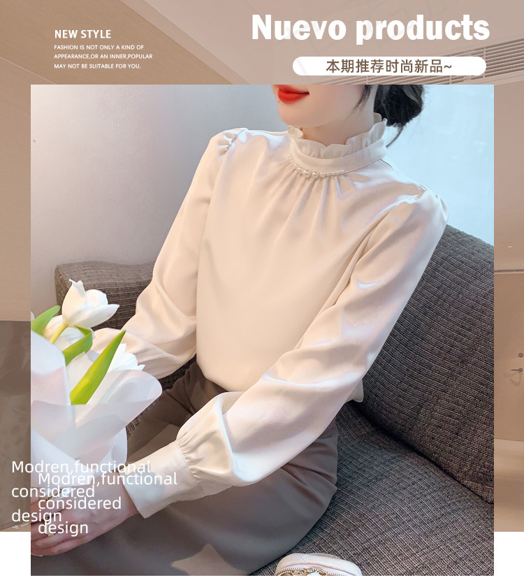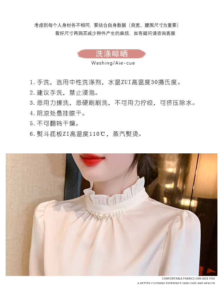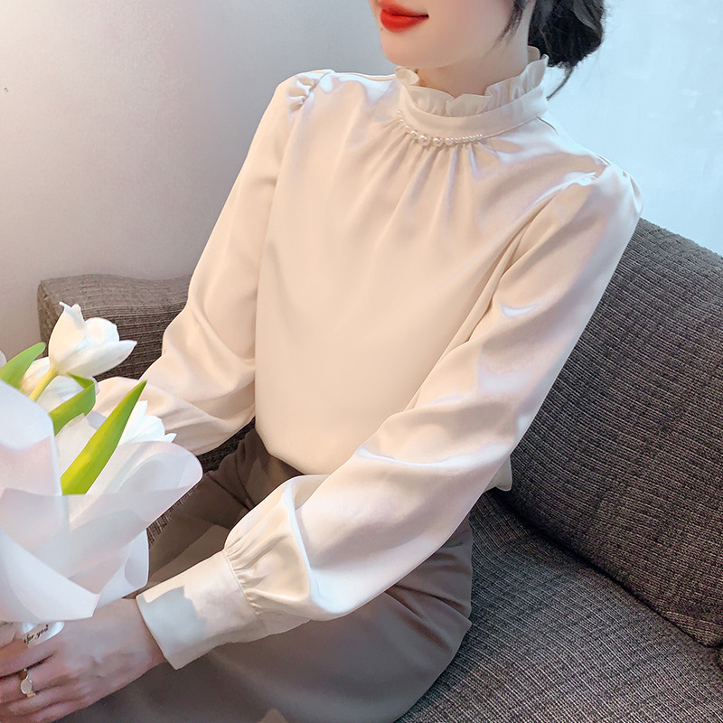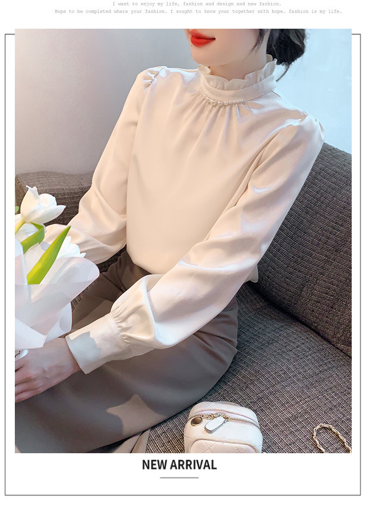프렌치 스탠드 칼라 비즈 쉬폰 탑 2025 봄, 가을 새로운 스타일 서양식 셔츠 여성을위한 슈퍼 요정 달콤한 곰팡이 셔츠스토어 가기