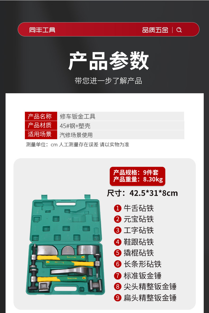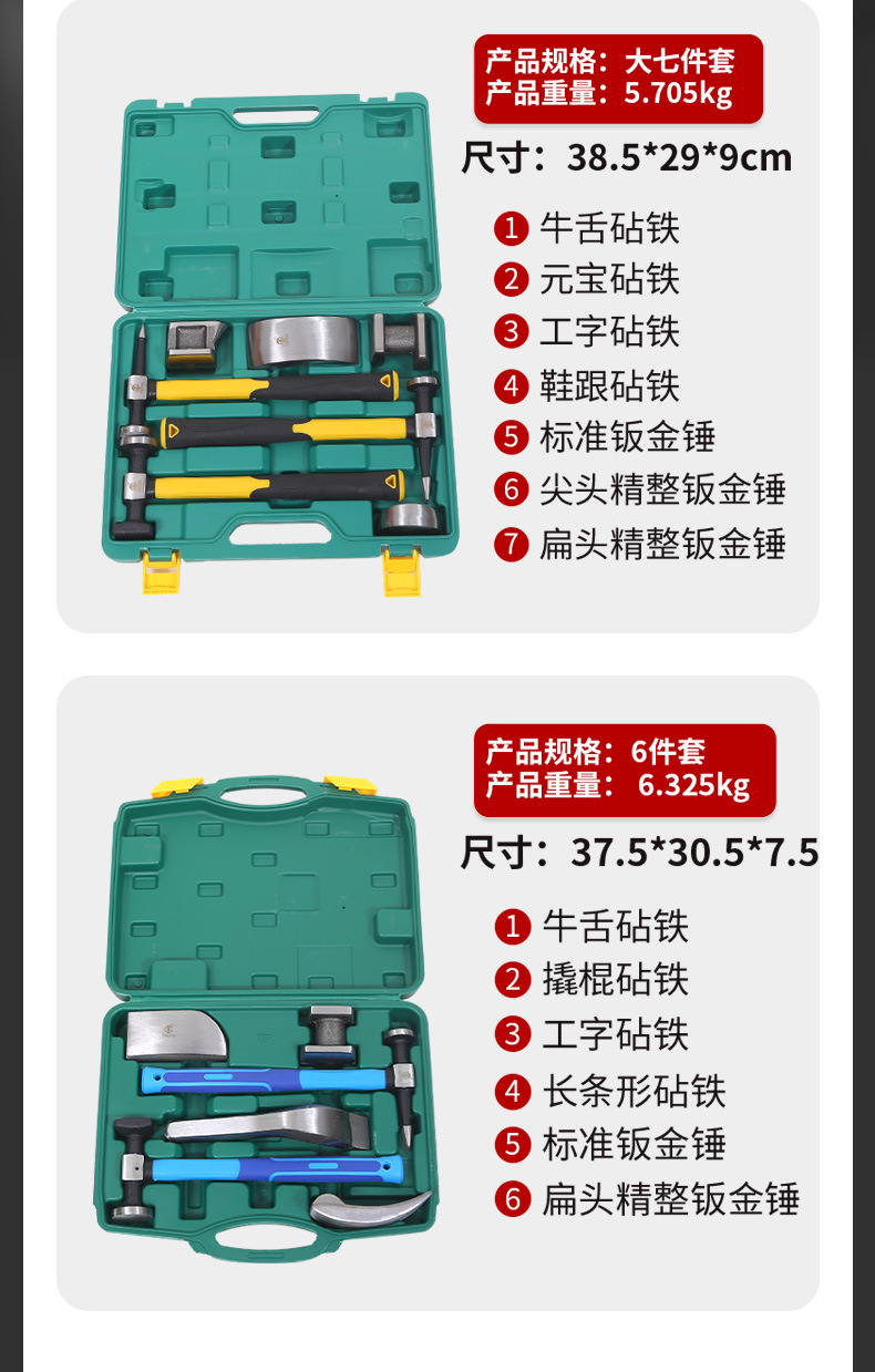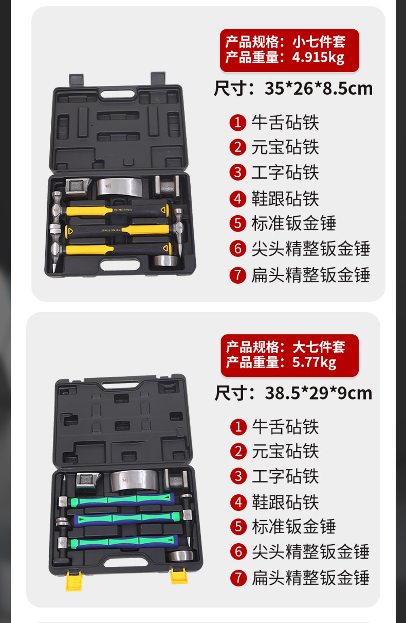 공장 도매 자동차 수리 판금 망치 세트 도구 전문 자동차 수리 세트 중량급 판금 망치