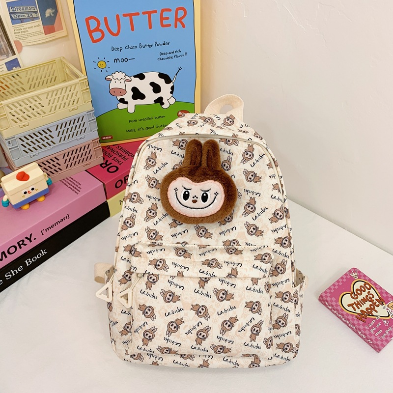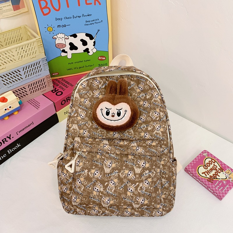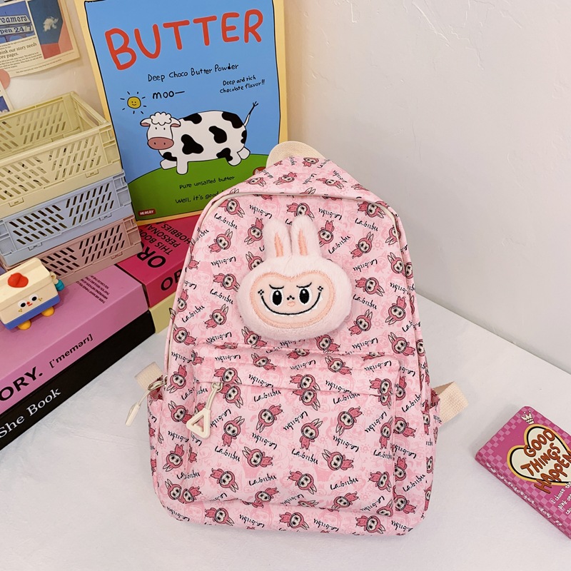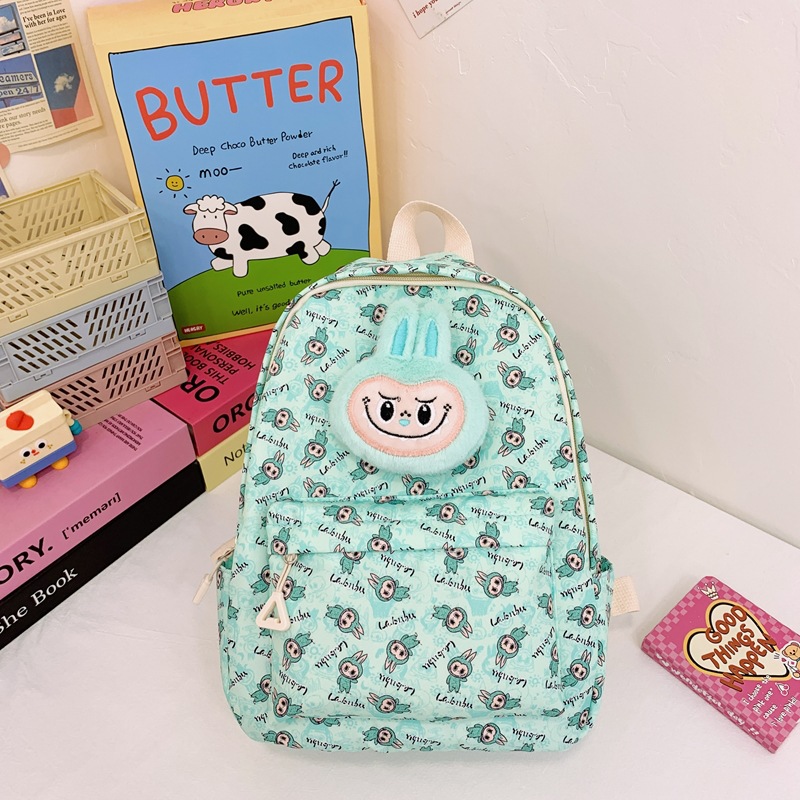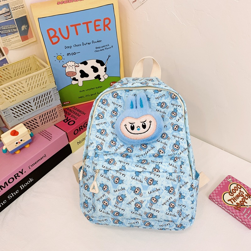 새로운 어린이 책가방 학생 만화 귀여운 초등학교 트렌디하고 멋진 라부부 대용량 유행 유치원 배낭