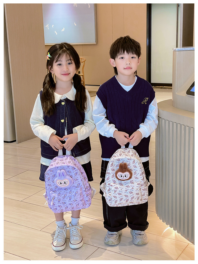 새로운 어린이 책가방 학생 만화 귀여운 초등학교 트렌디하고 멋진 라부부 대용량 유행 유치원 배낭스토어 가기