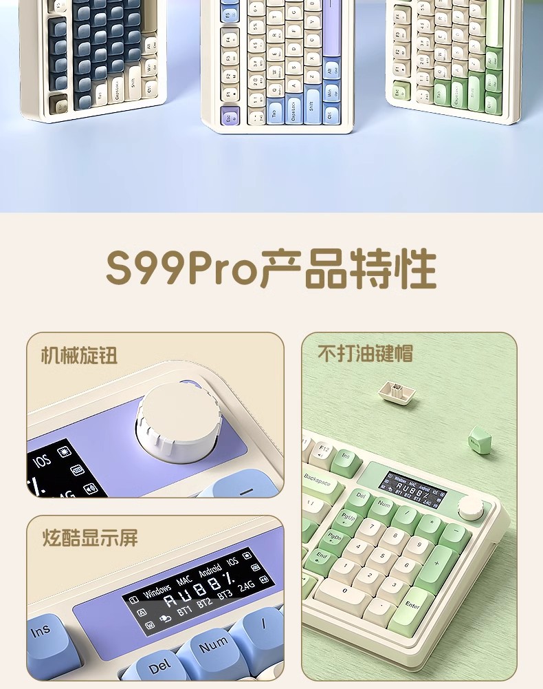 Tarantula S99pro 3 모드 기계식 터치 키보드 휴대용 충전 컬러 매칭 소년과 소녀 사무실 게임 디스플레이