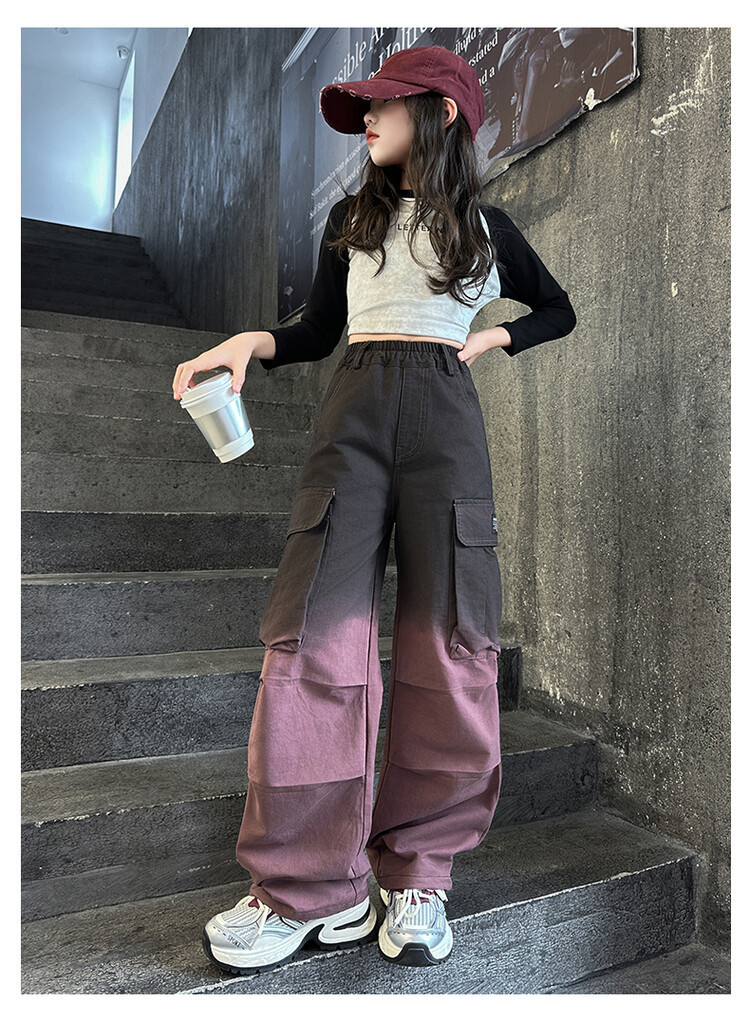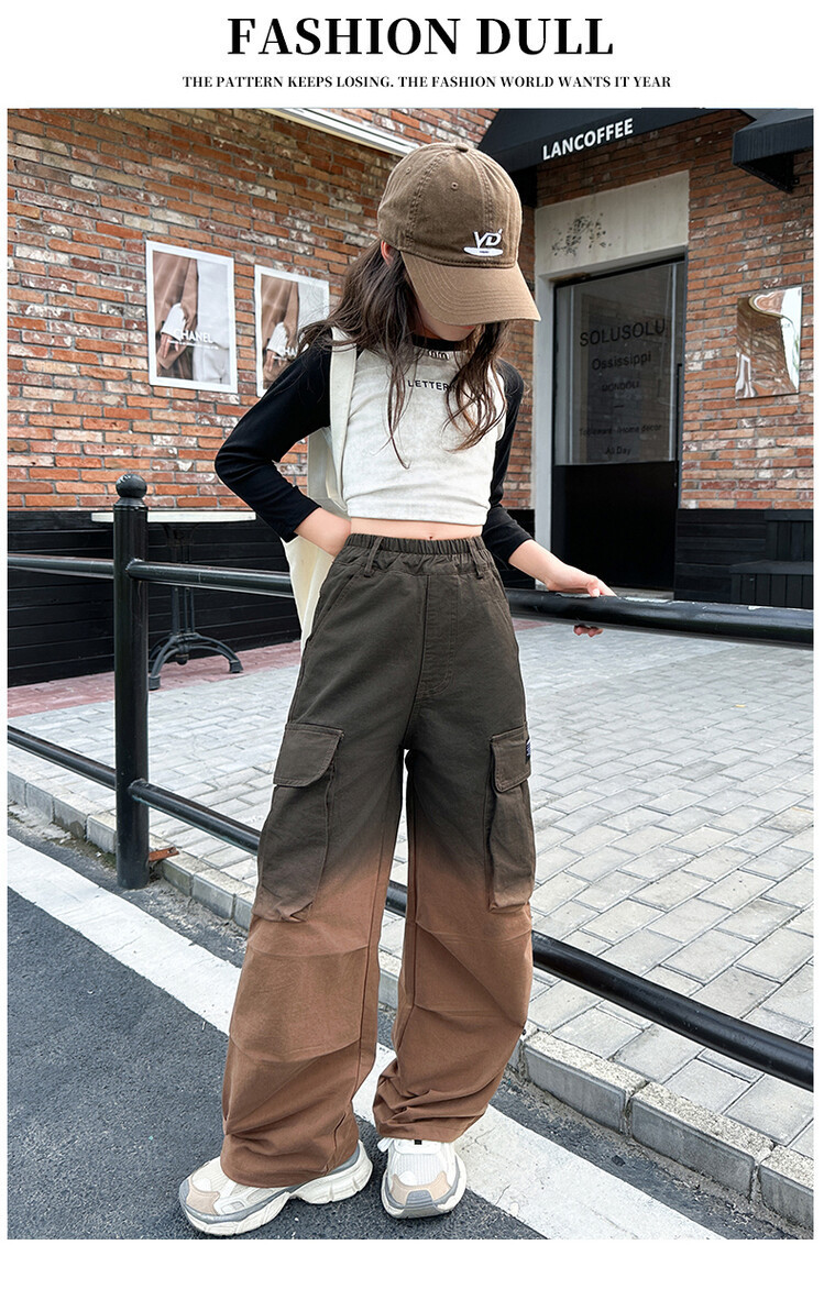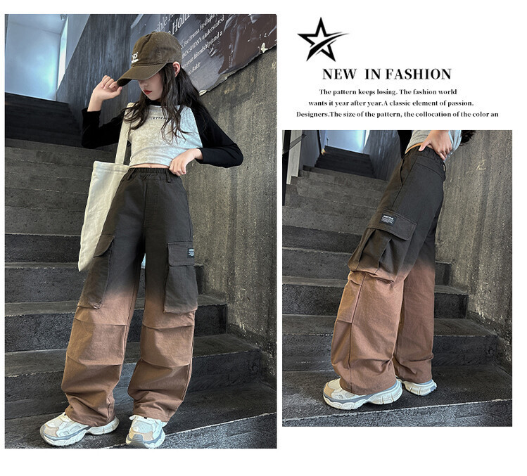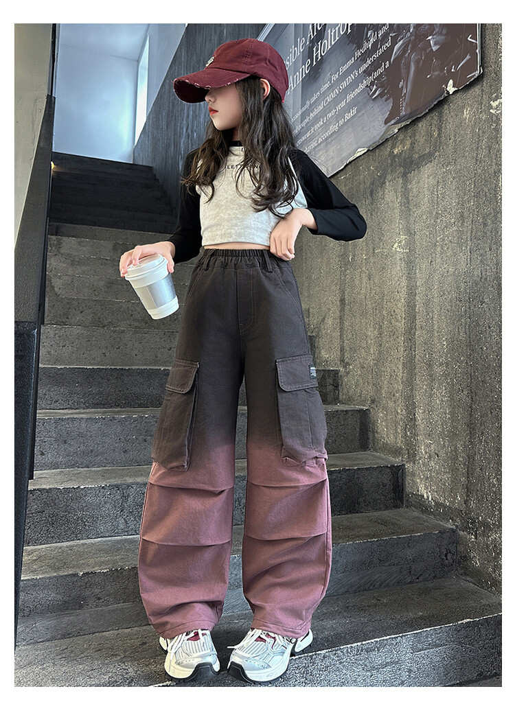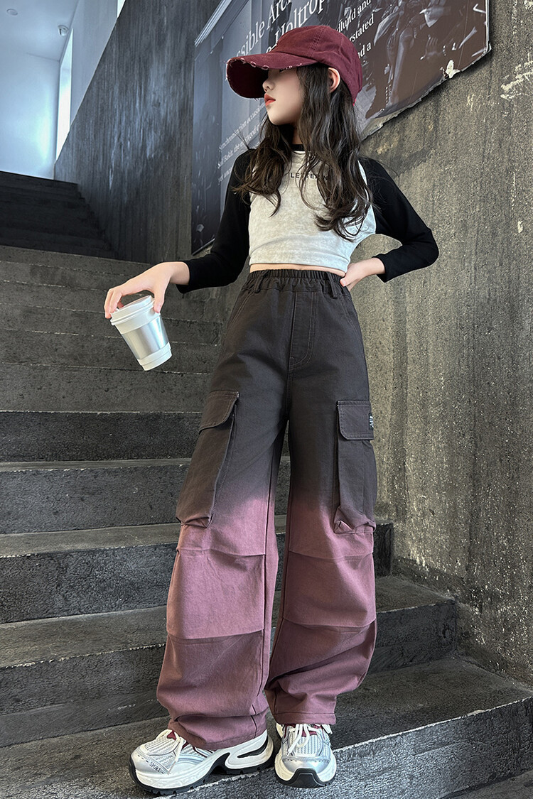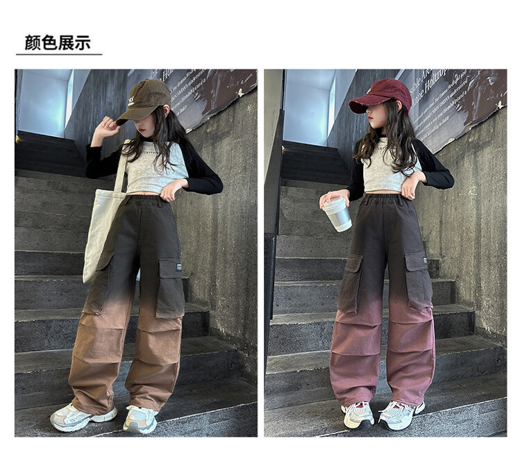 2024 새로운 봄과 가을 소녀 바지 서양식 그라디언트 컬러 쿠션 바지 한국 스타일 대형 어린이 와이드 다리 바지 AliExpress스토어 가기