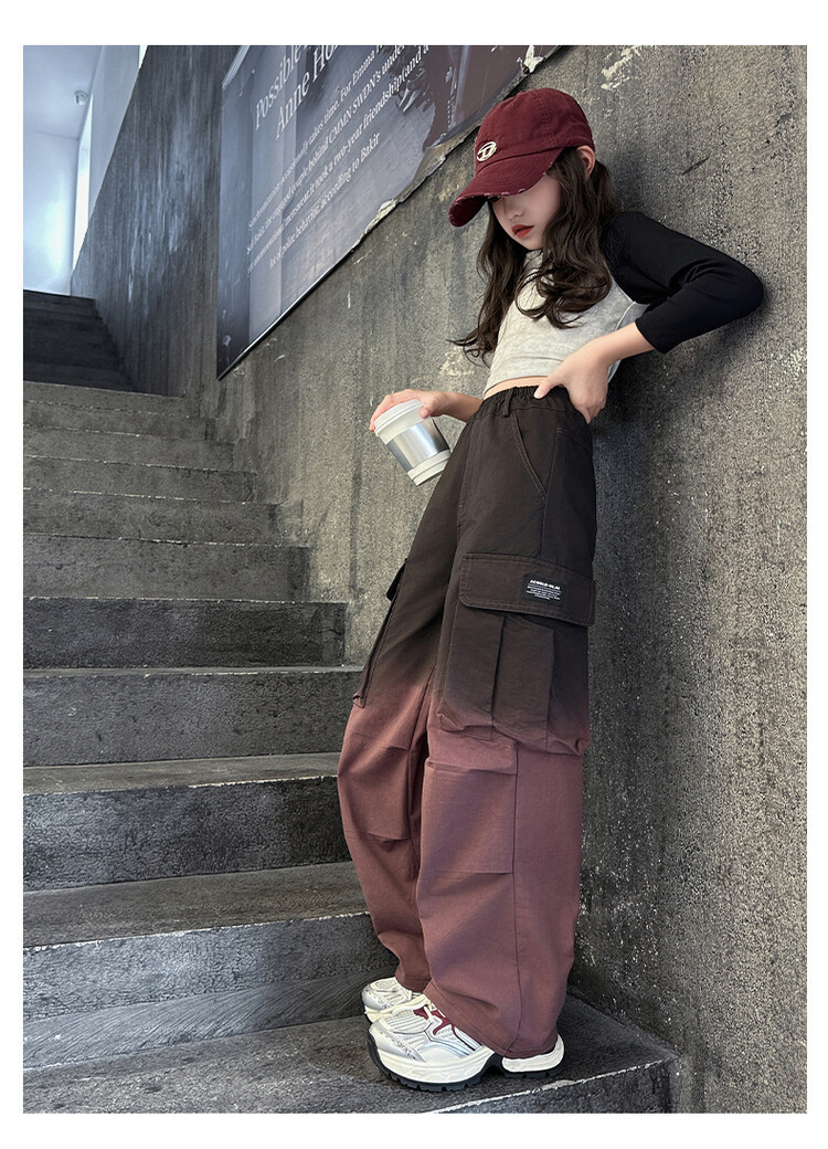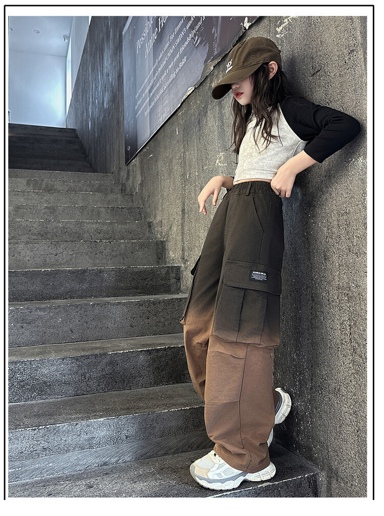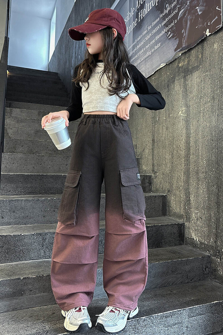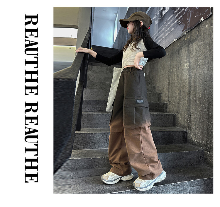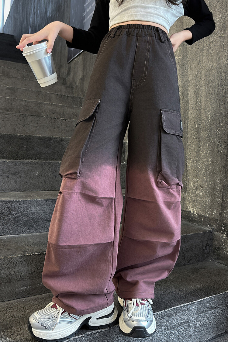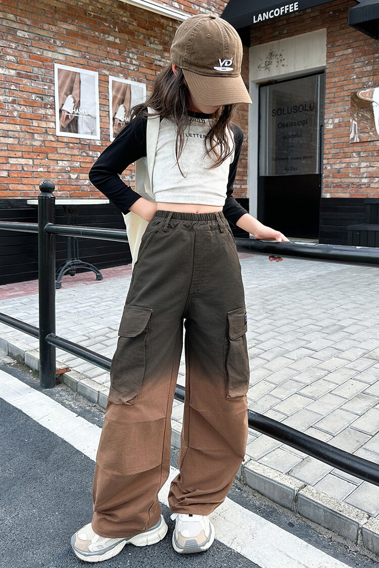 2024 새로운 봄과 가을 소녀 바지 서양식 그라디언트 컬러 쿠션 바지 한국 스타일 대형 어린이 와이드 다리 바지 AliExpress스토어 가기