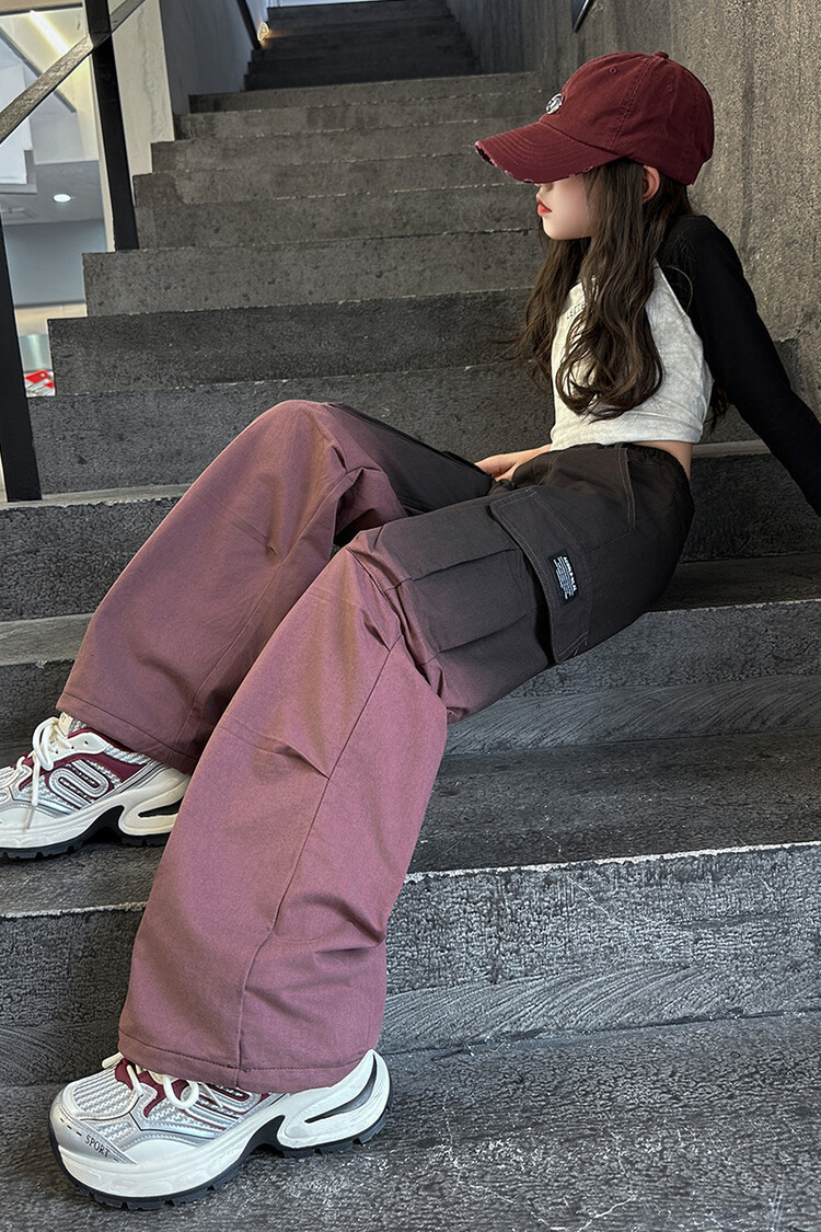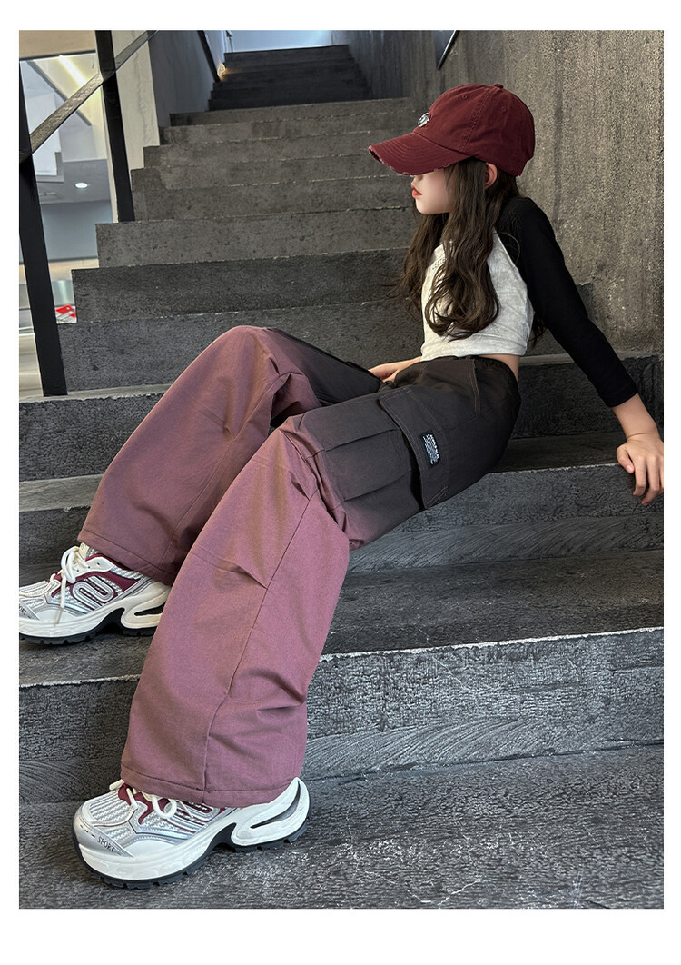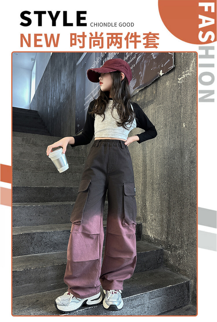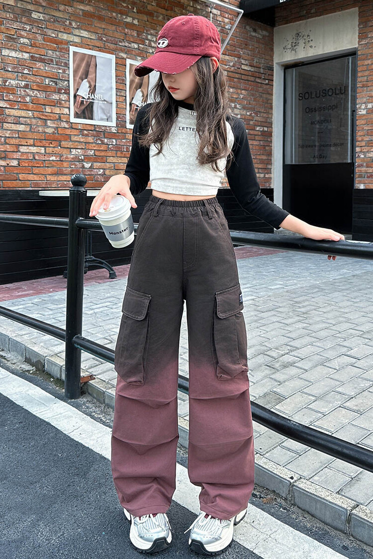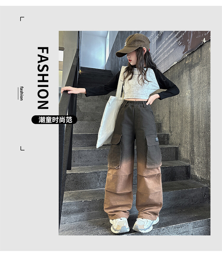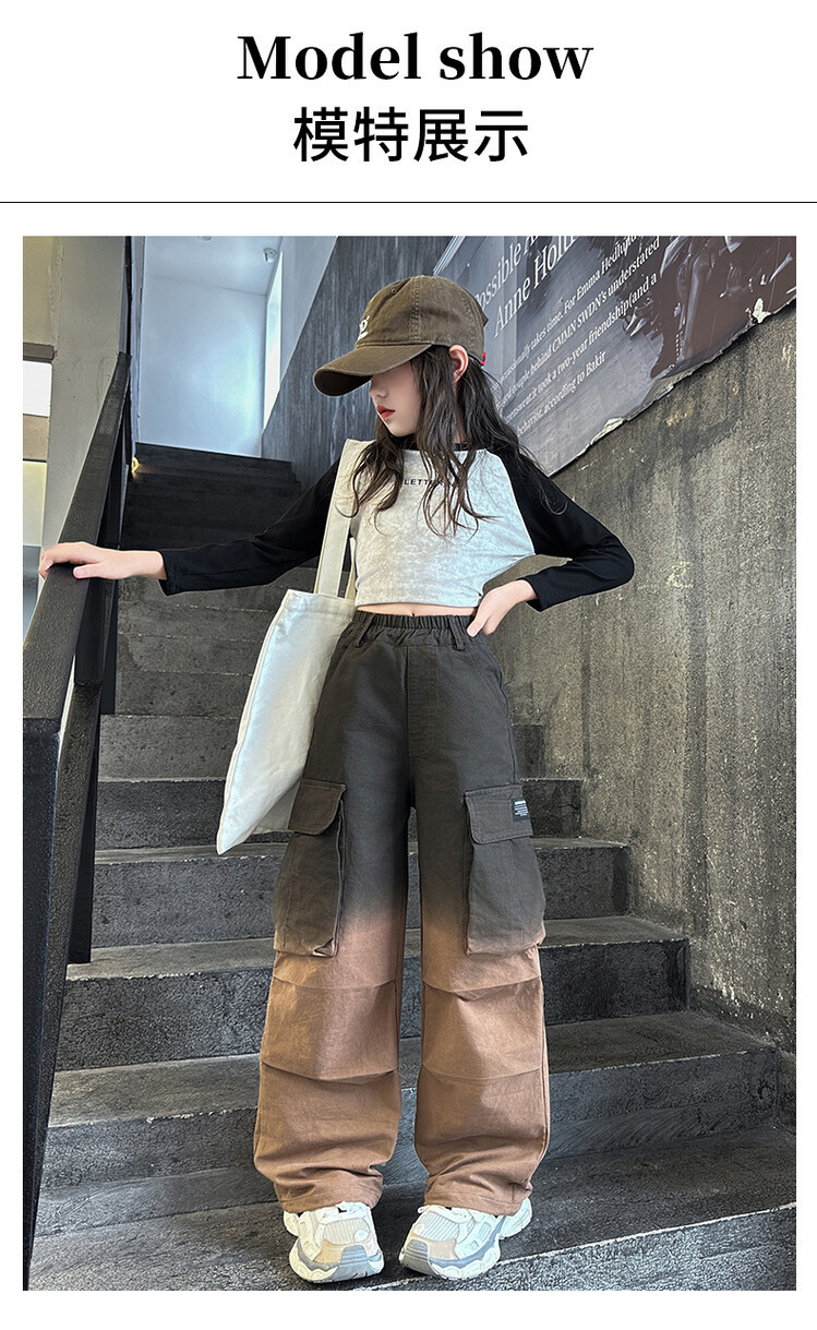2024 새로운 봄과 가을 소녀 바지 서양식 그라디언트 컬러 쿠션 바지 한국 스타일 대형 어린이 와이드 다리 바지 AliExpress스토어 가기