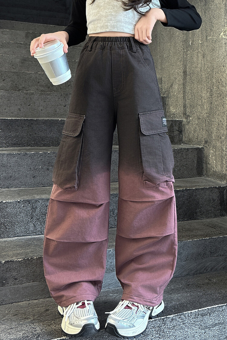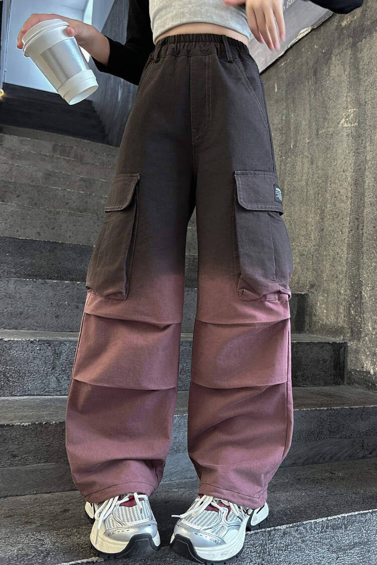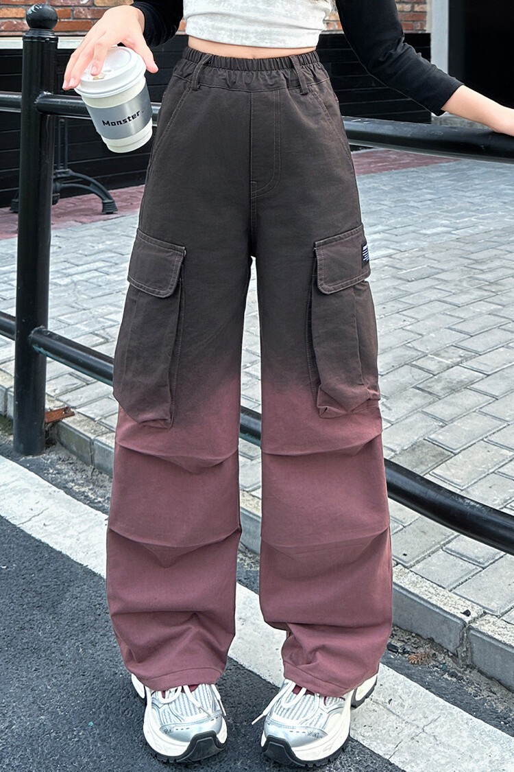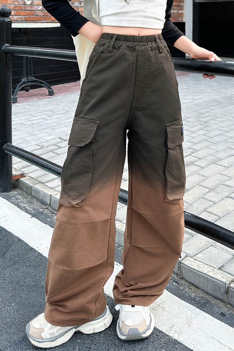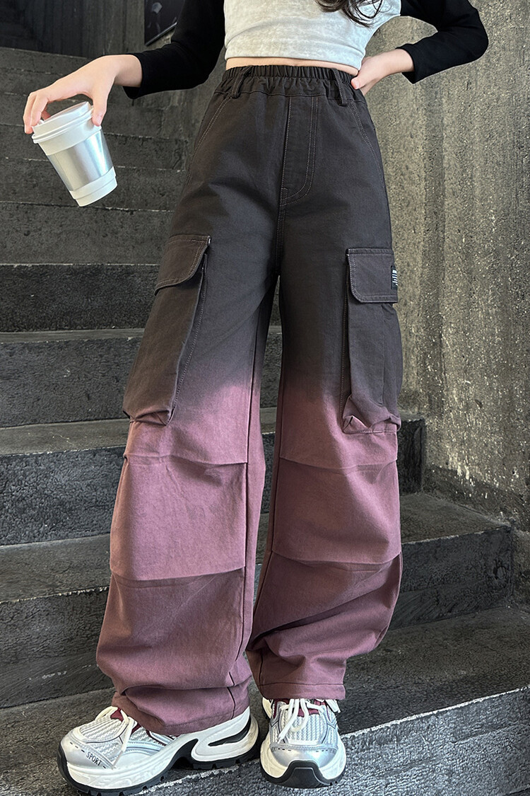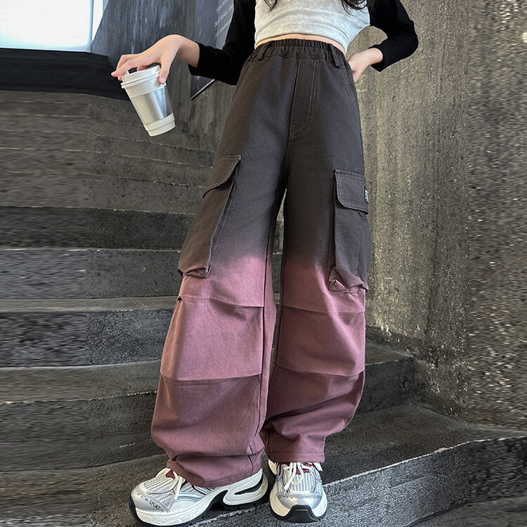 2024 새로운 봄과 가을 소녀 바지 서양식 그라디언트 컬러 쿠션 바지 한국 스타일 대형 어린이 와이드 다리 바지 AliExpress