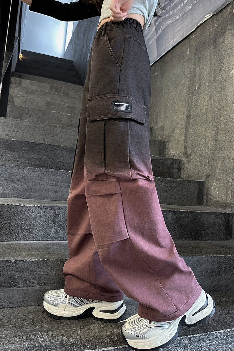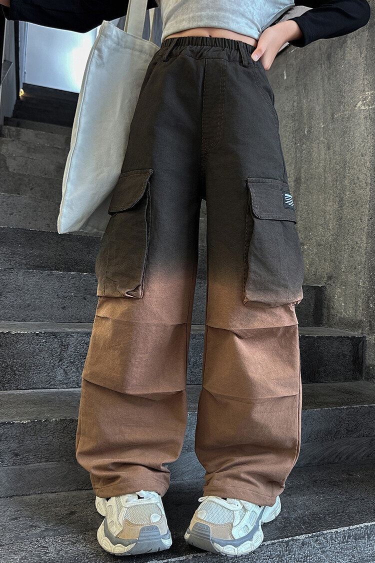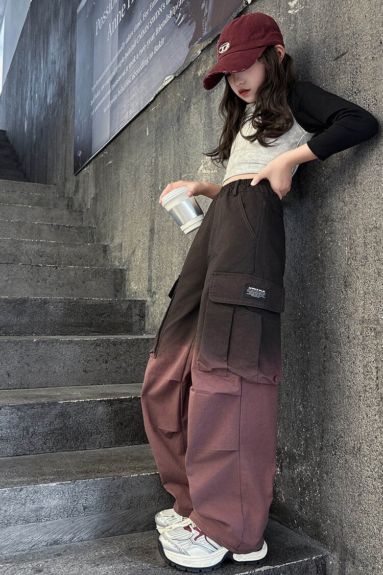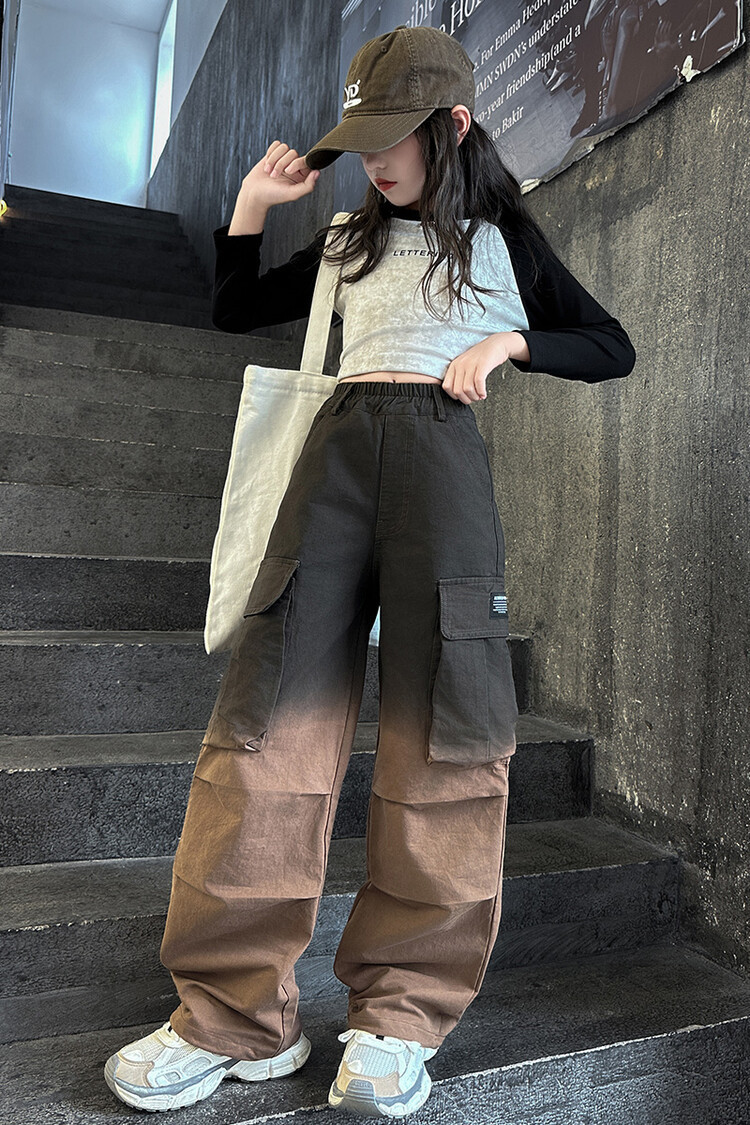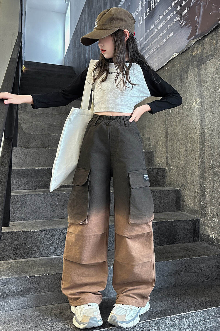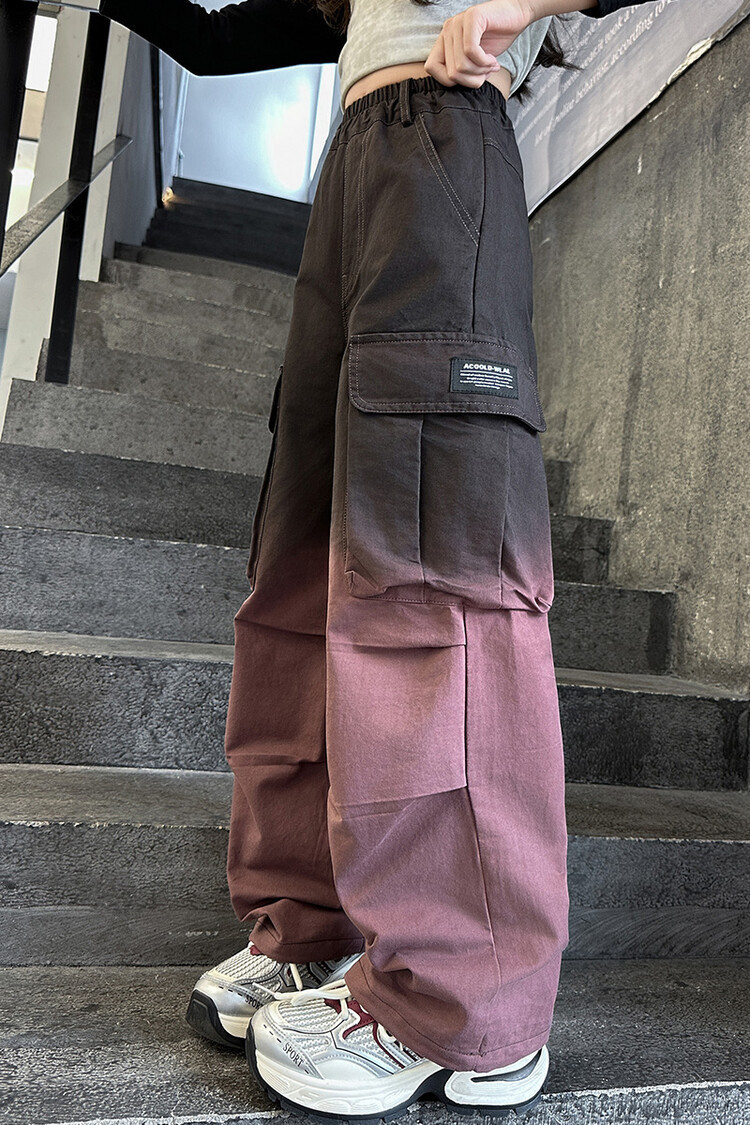 2024 새로운 봄과 가을 소녀 바지 서양식 그라디언트 컬러 쿠션 바지 한국 스타일 대형 어린이 와이드 다리 바지 AliExpress