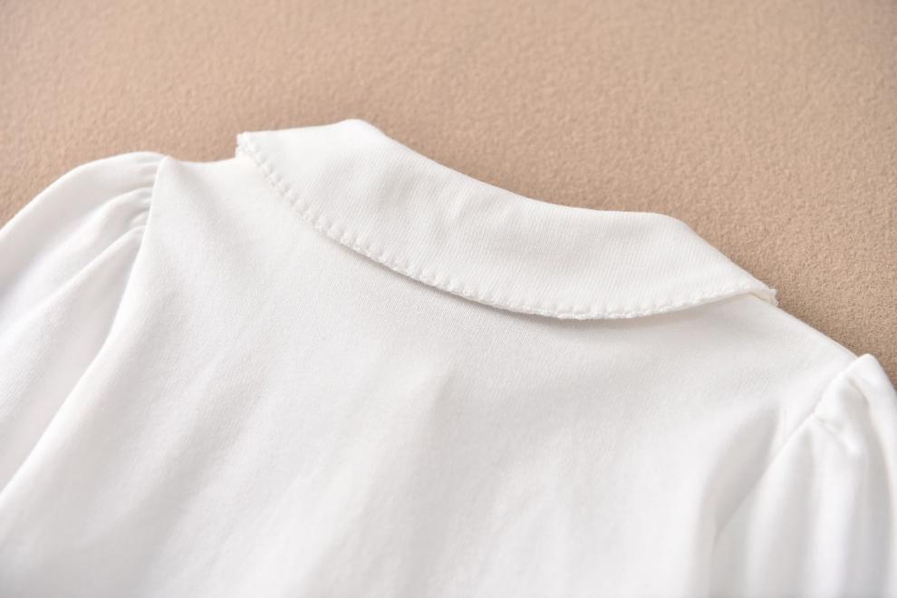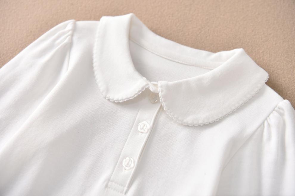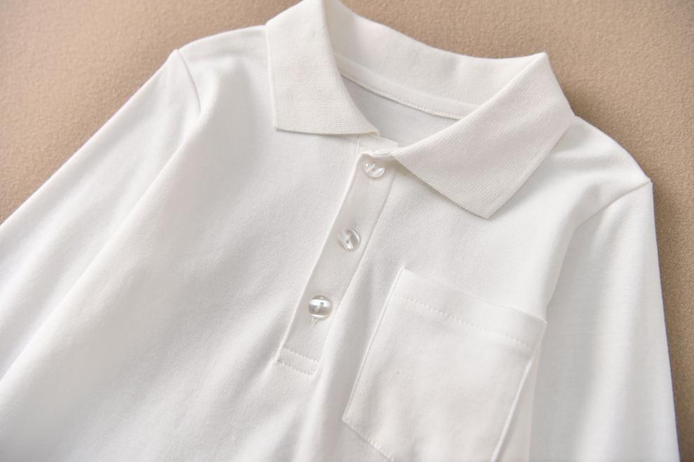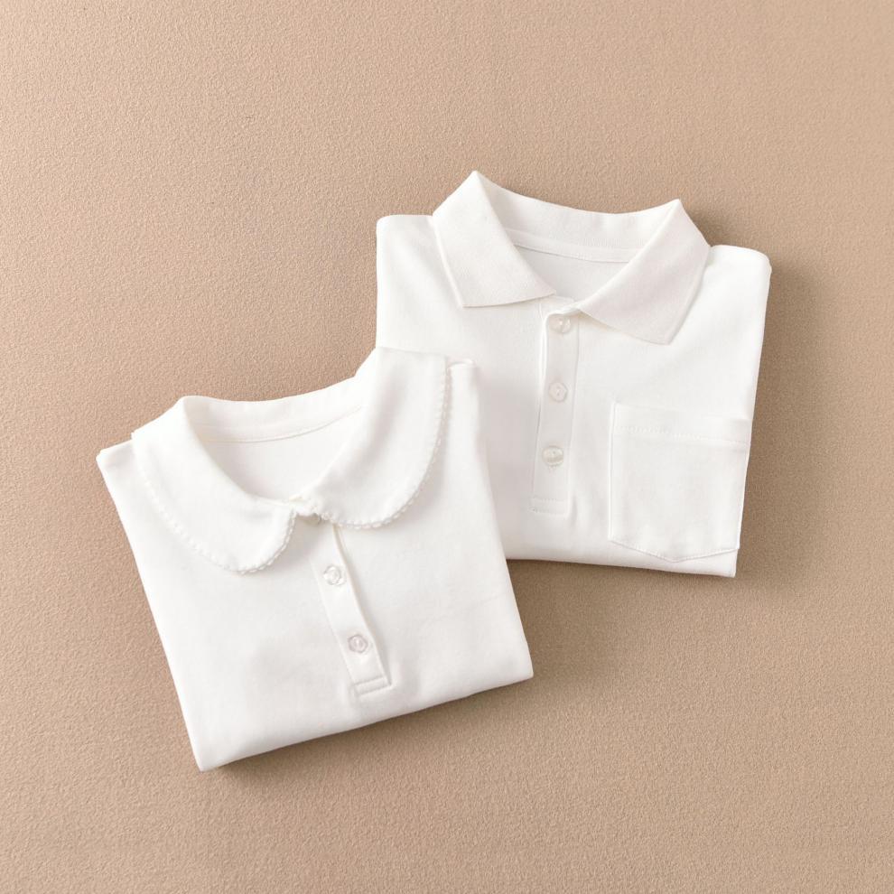 男孩POLO衫 女孩娃娃领设计 袖口做了造型工艺 白色学生装 打底神奇 校服 百搭实用 吸汗透气 快干镇店面料 合适打底 单穿 家居 外穿