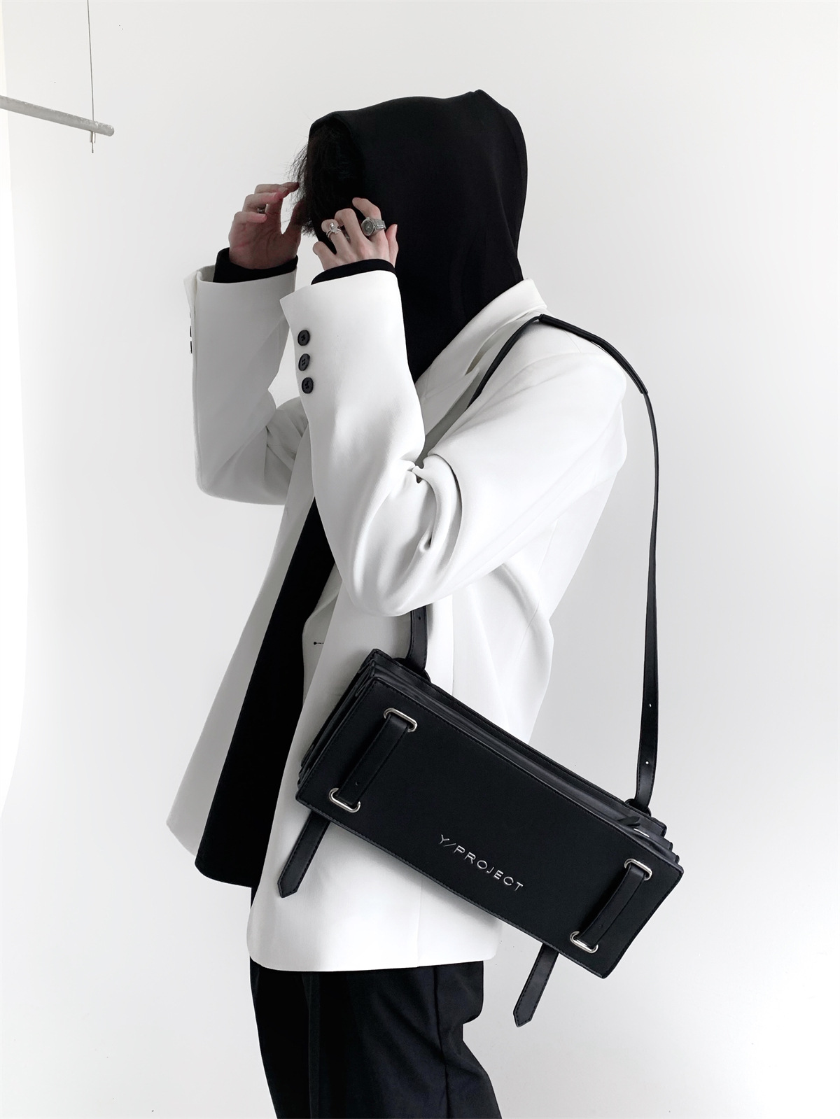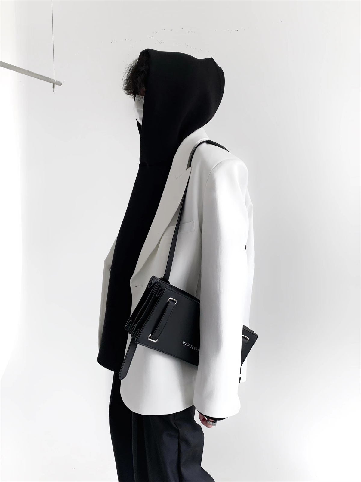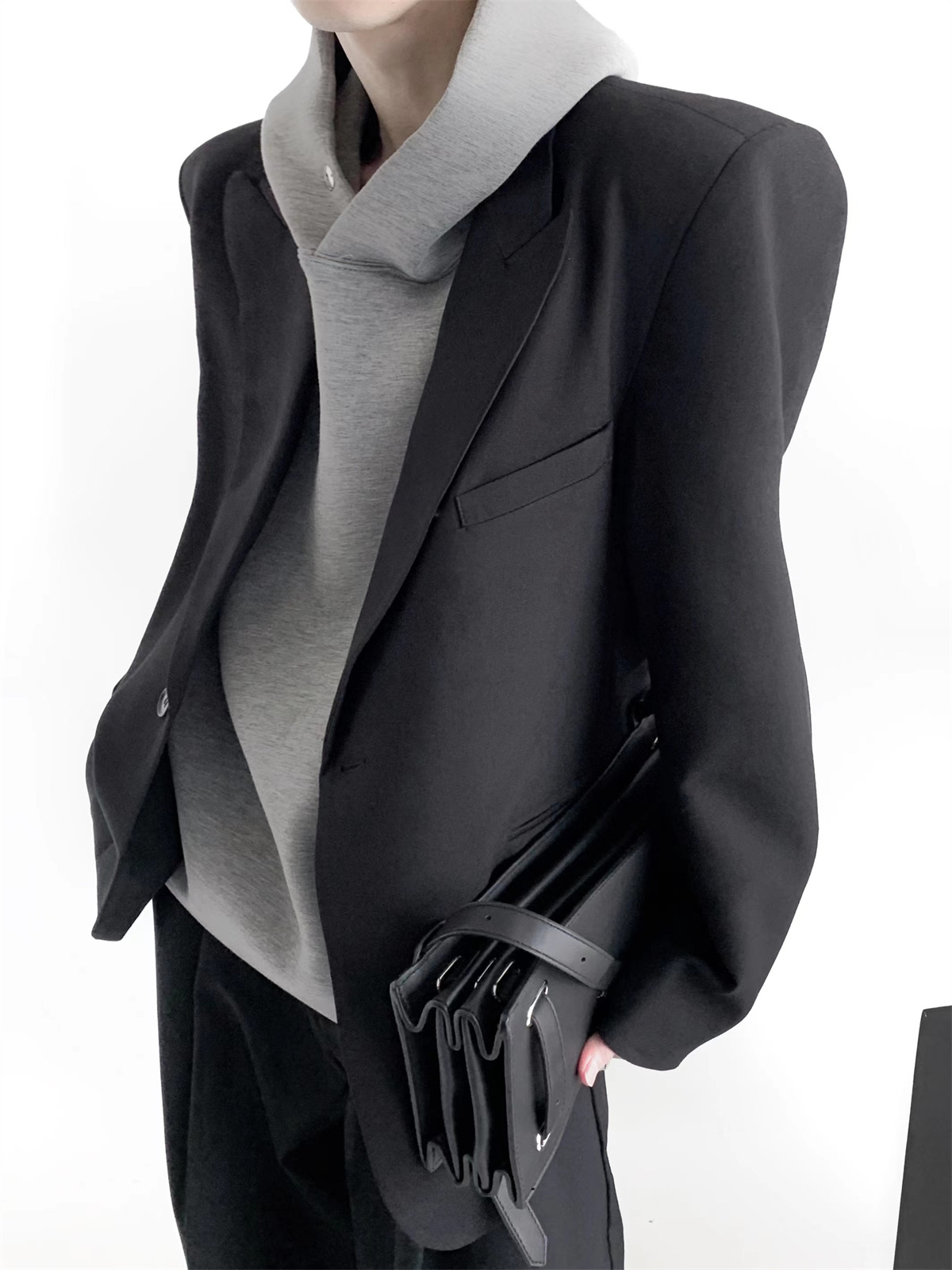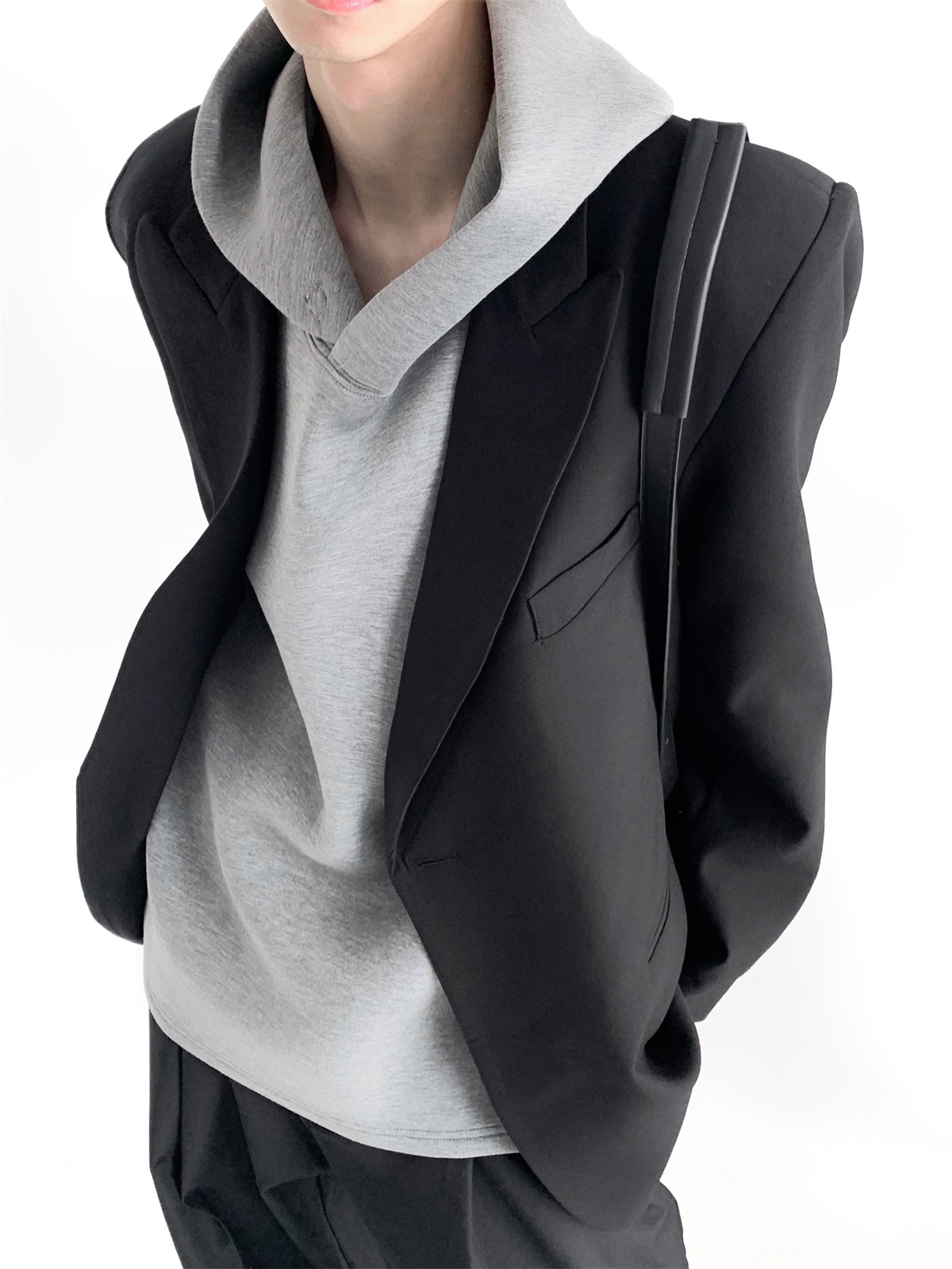 하이 엔드 느낌 ruffian 잘 생긴 거북 칼라 화이트 패딩 숄더패드 세트 재킷 남자 한국 트렌드 캐주얼 편안한 드레이프 싱글 세트