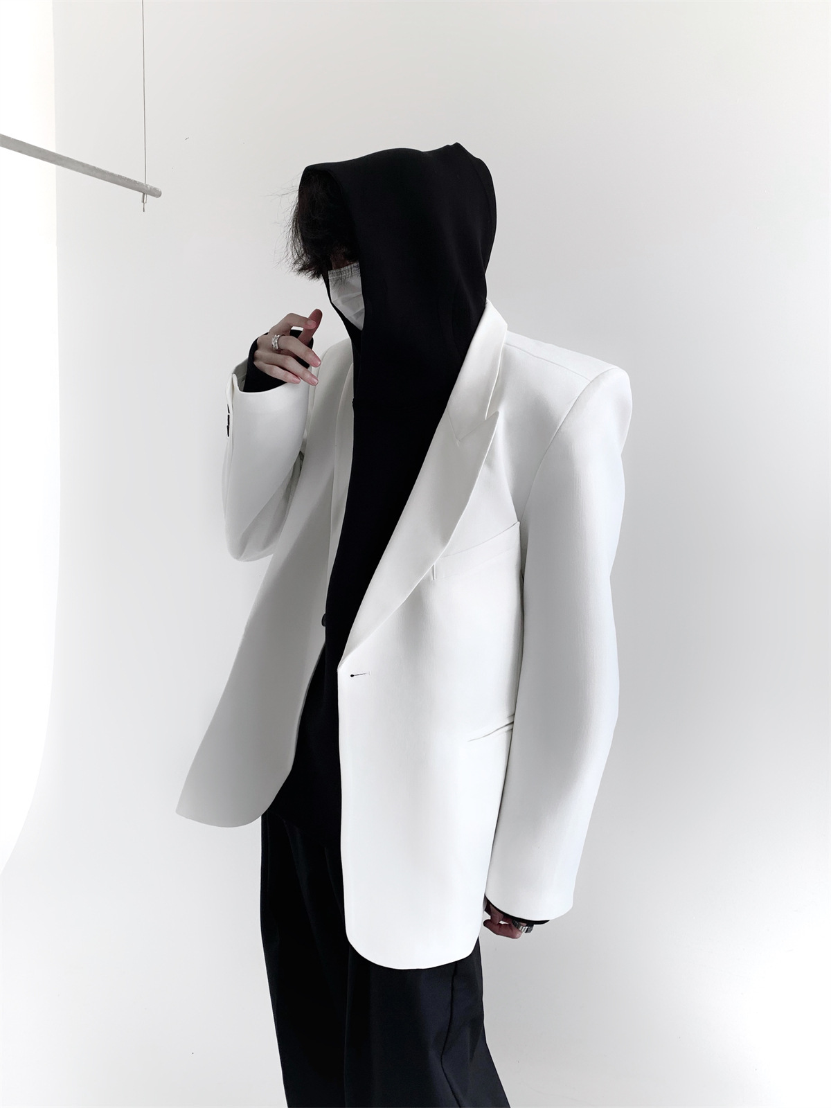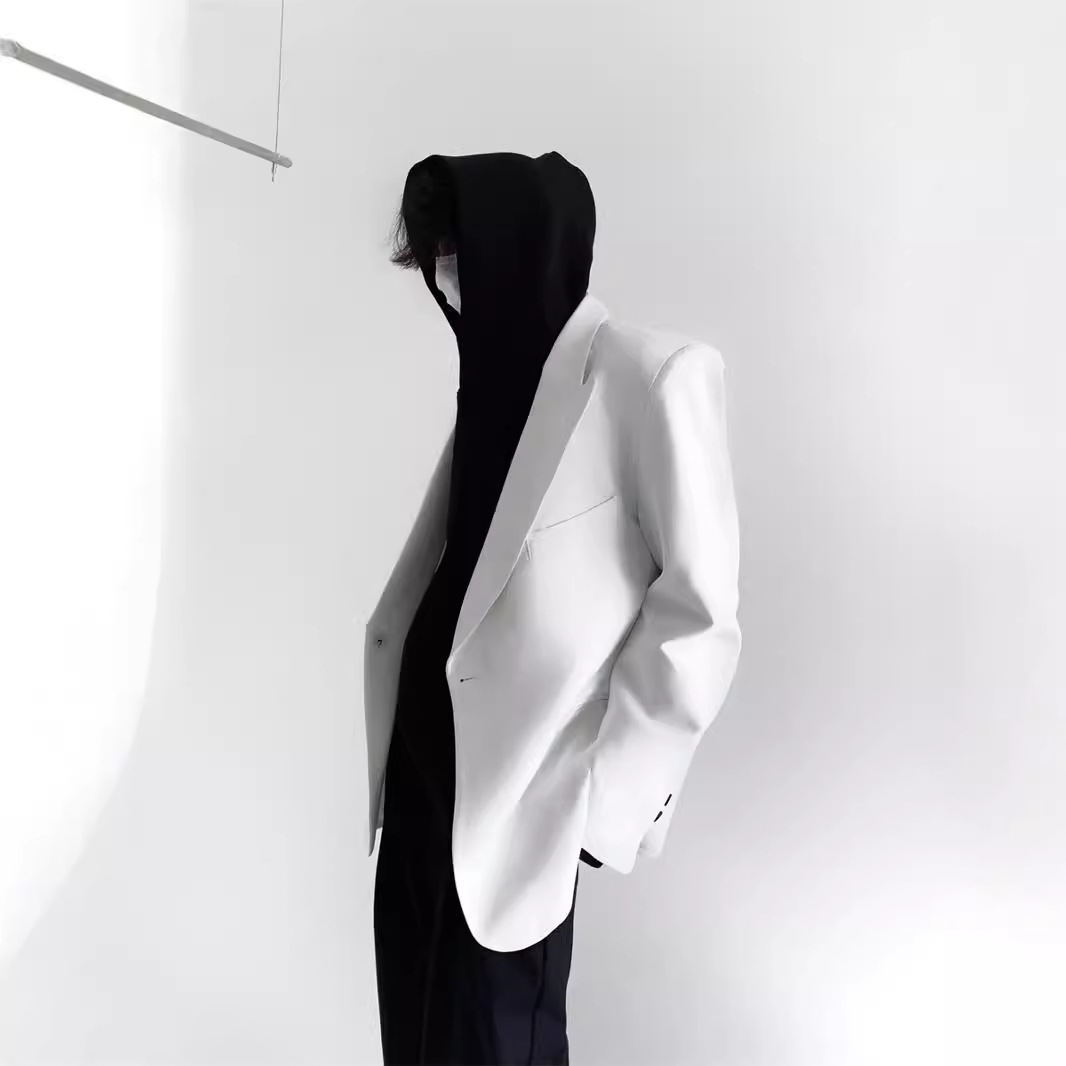 하이 엔드 느낌 ruffian 잘 생긴 거북 칼라 화이트 패딩 숄더패드 세트 재킷 남자 한국 트렌드 캐주얼 편안한 드레이프 싱글 세트스토어 가기
