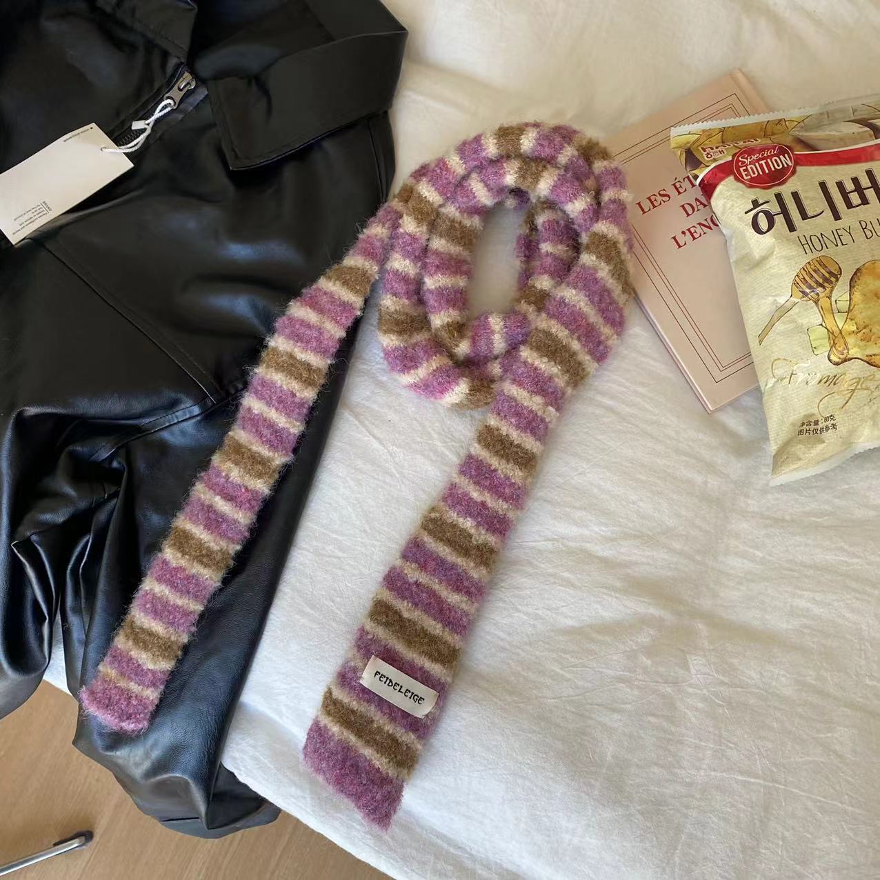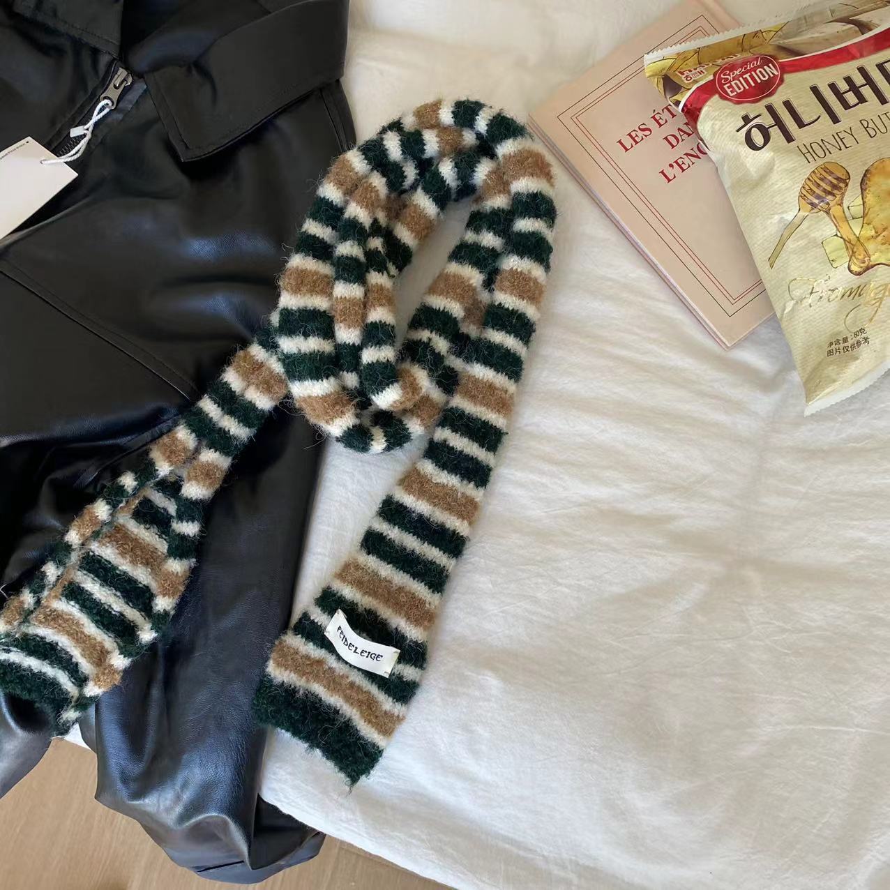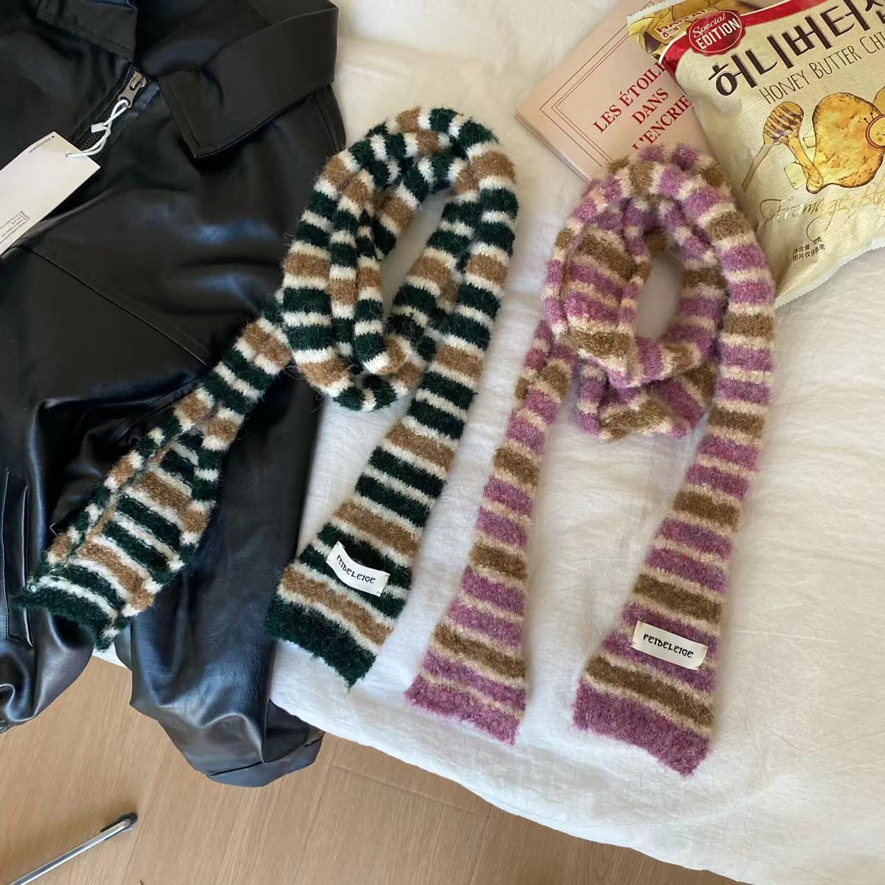 한국 틈새 디자인 마이크로 컬링 모헤어 컬러 매칭 얇은 스카프 뜨거운 소녀 패션 긴 좁은 스카프