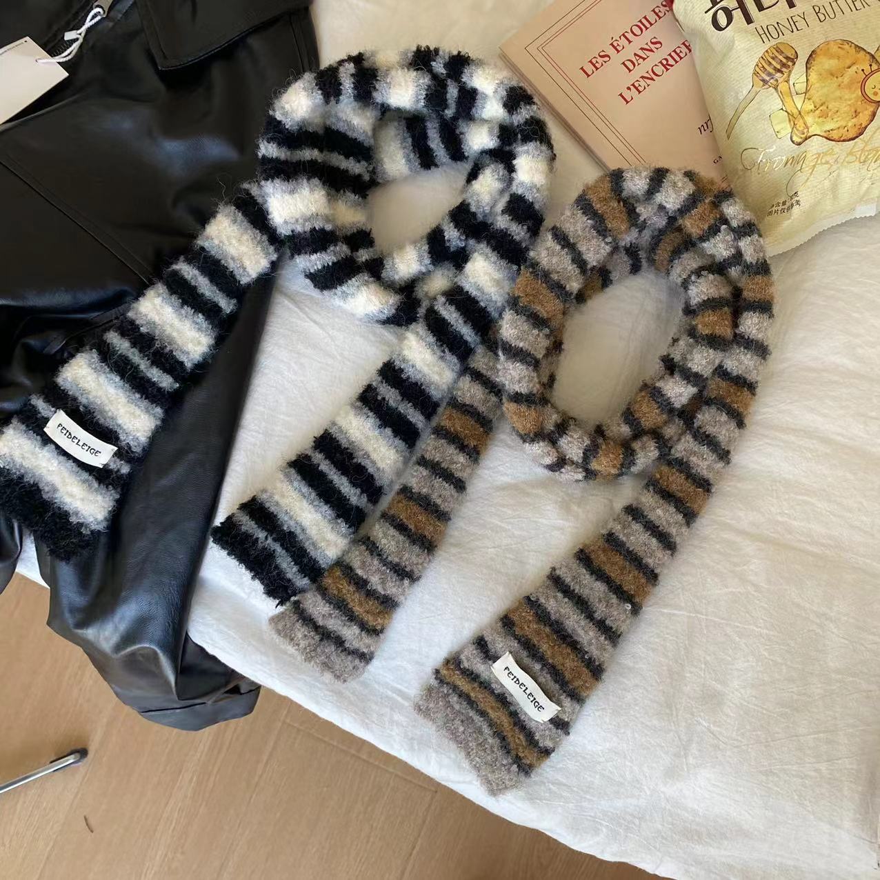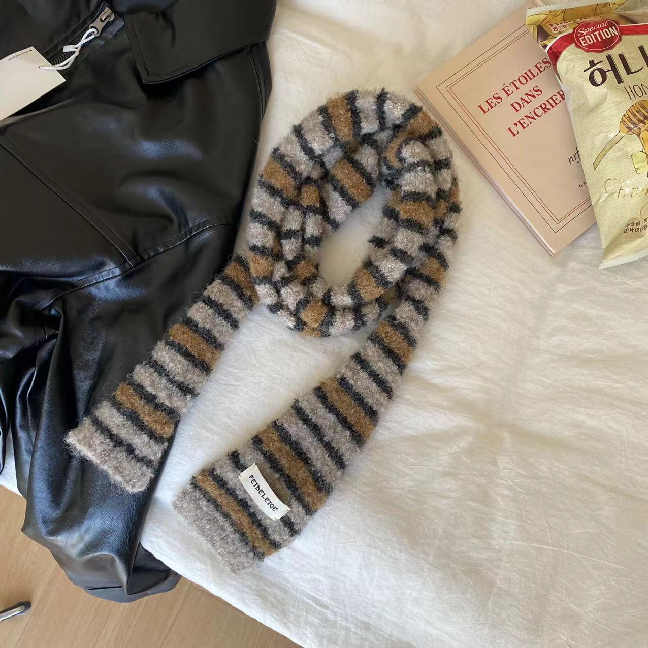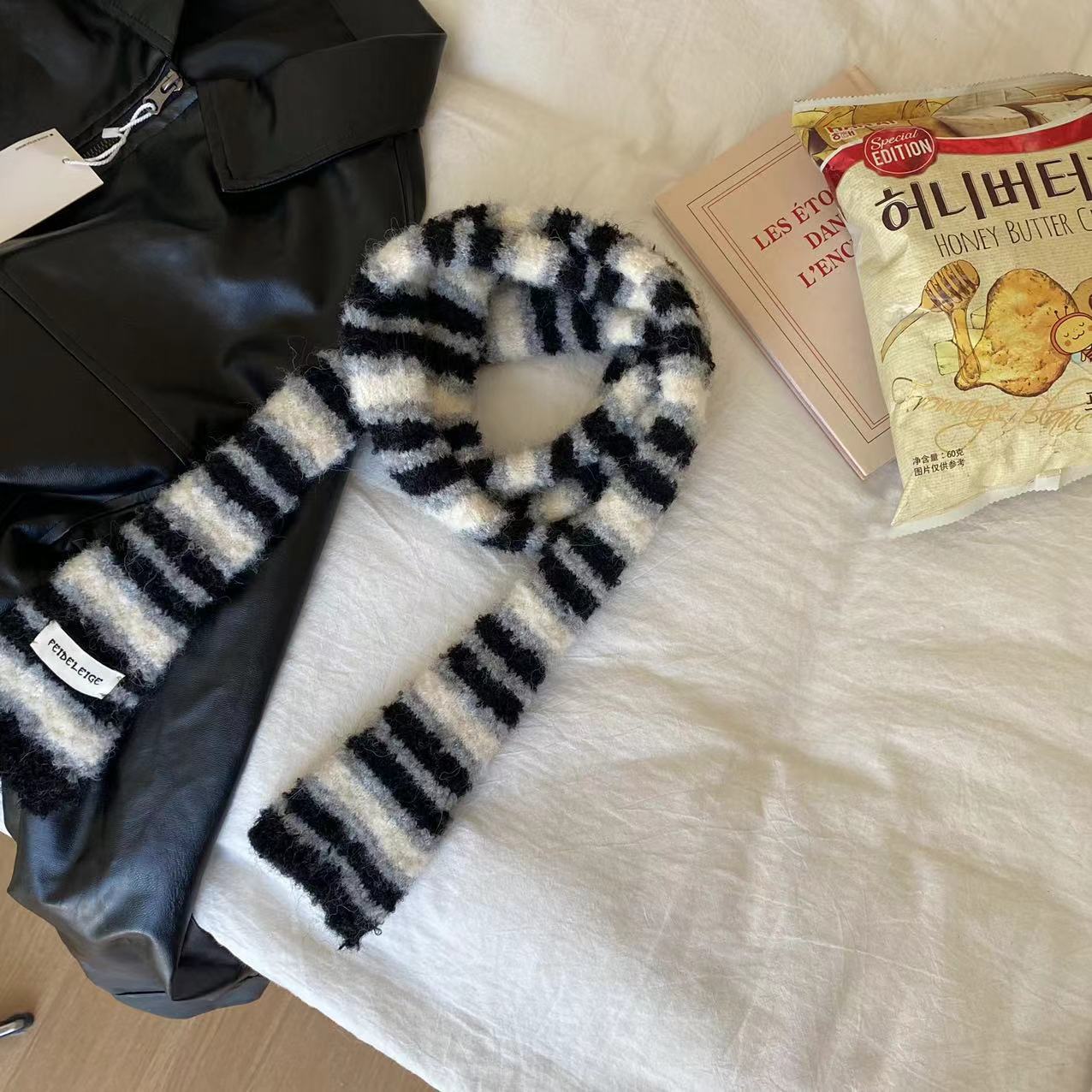 한국 틈새 디자인 마이크로 컬링 모헤어 컬러 매칭 얇은 스카프 뜨거운 소녀 패션 긴 좁은 스카프