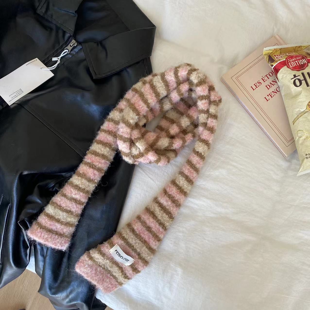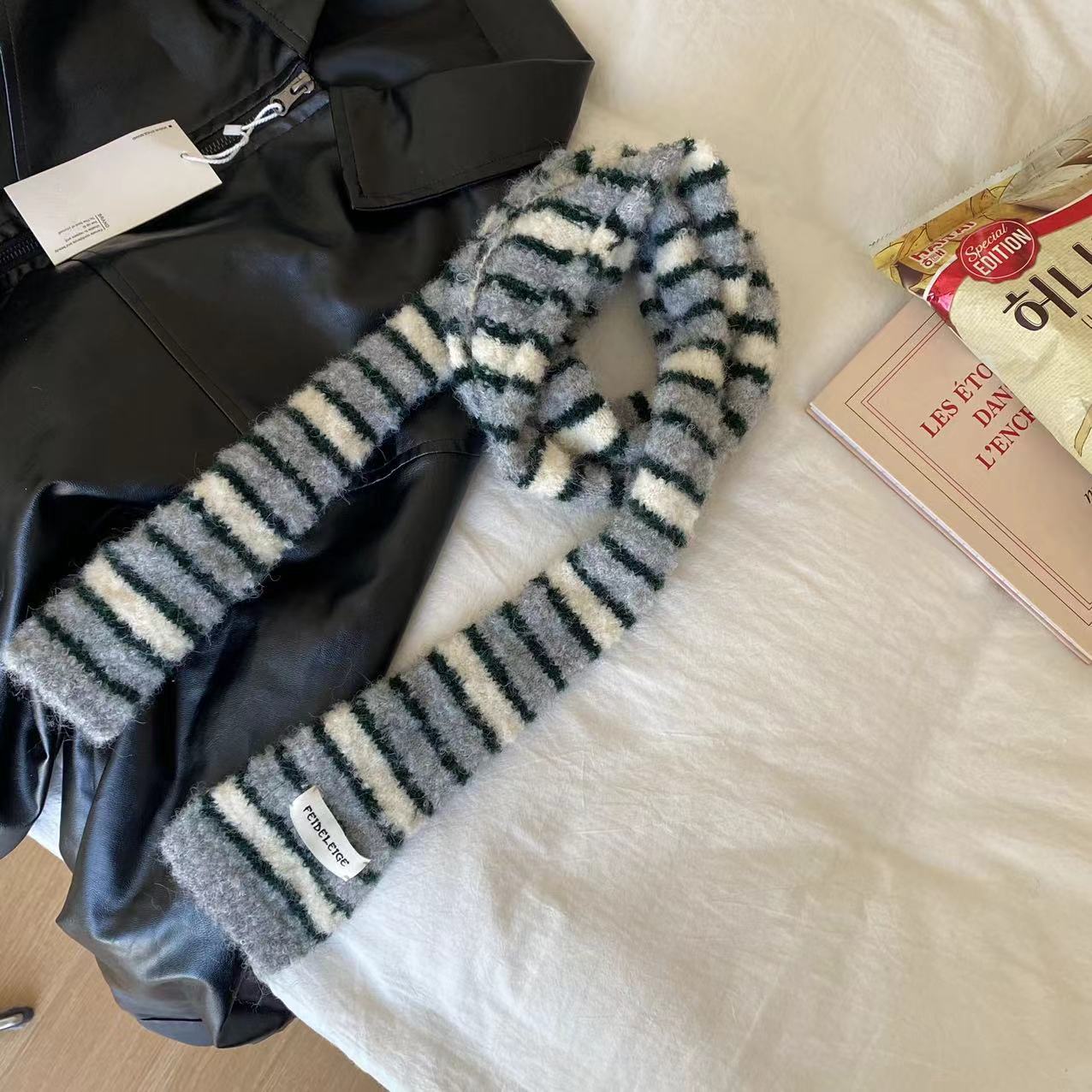 한국 틈새 디자인 마이크로 컬링 모헤어 컬러 매칭 얇은 스카프 뜨거운 소녀 패션 긴 좁은 스카프스토어 가기