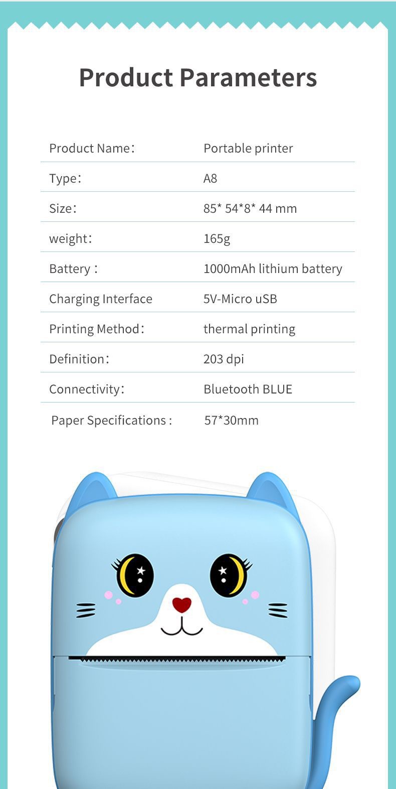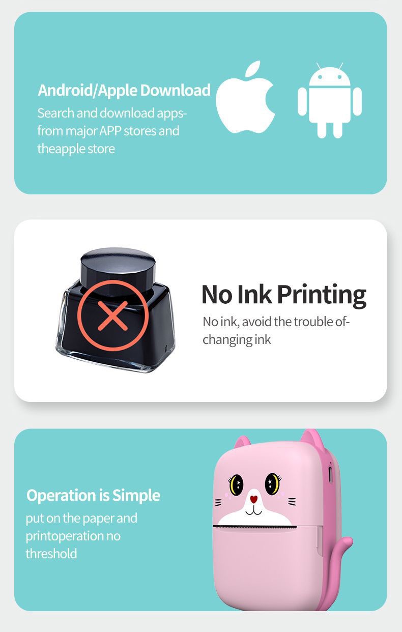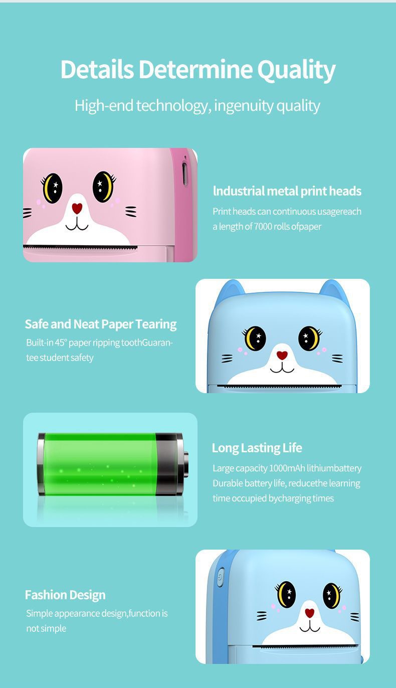 국경 새로운 사진 프린터 잉크없는 스마트 휴대용 작은 가정용 라벨 접착 열 프린터
